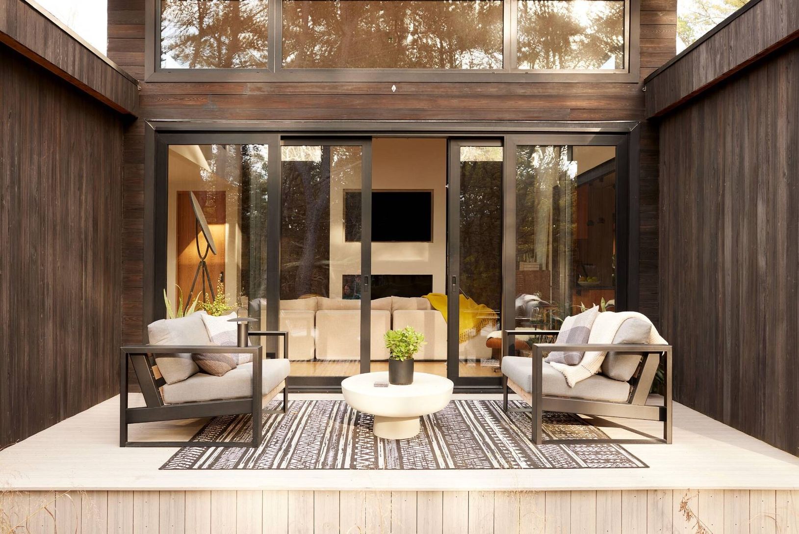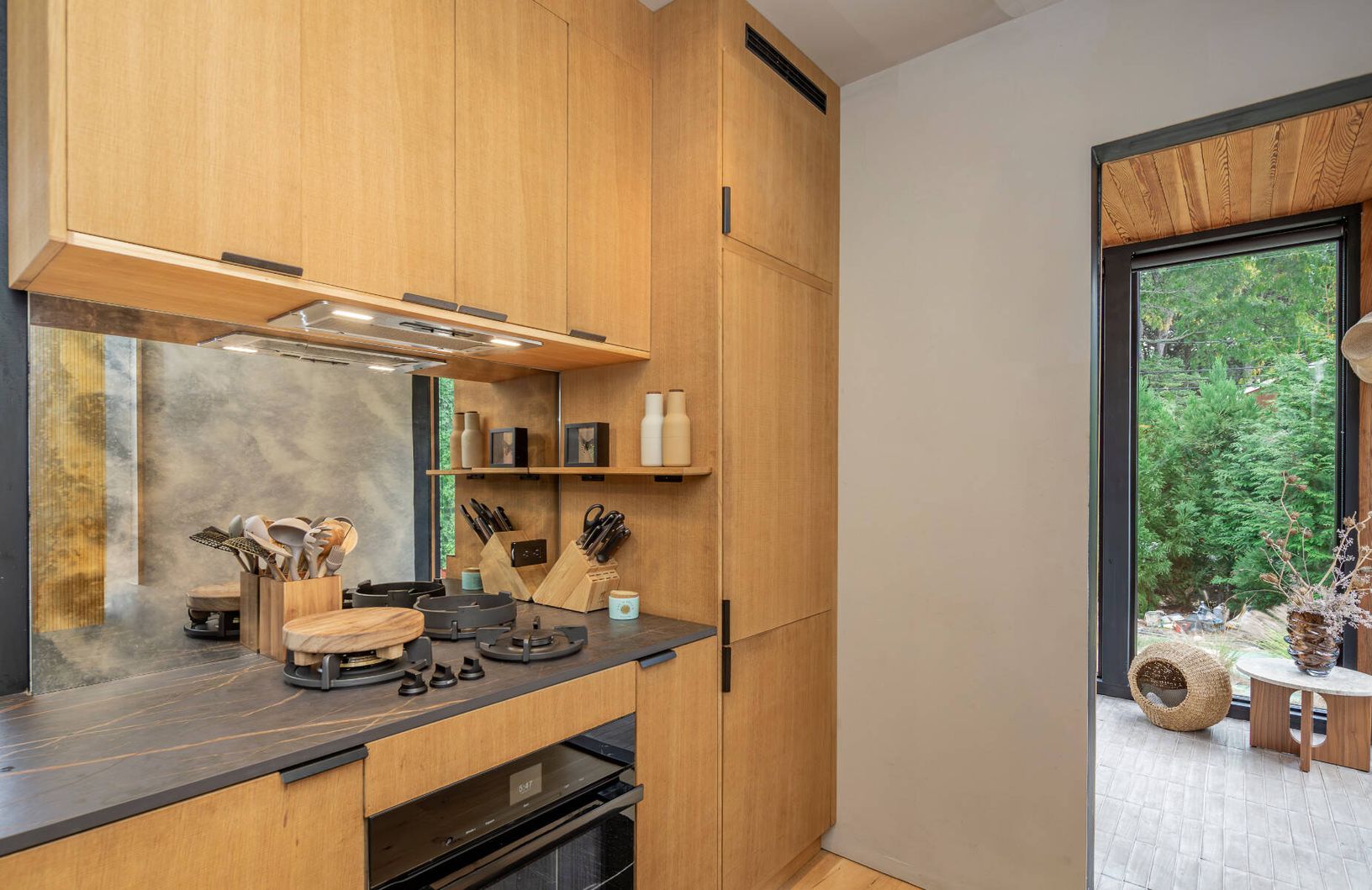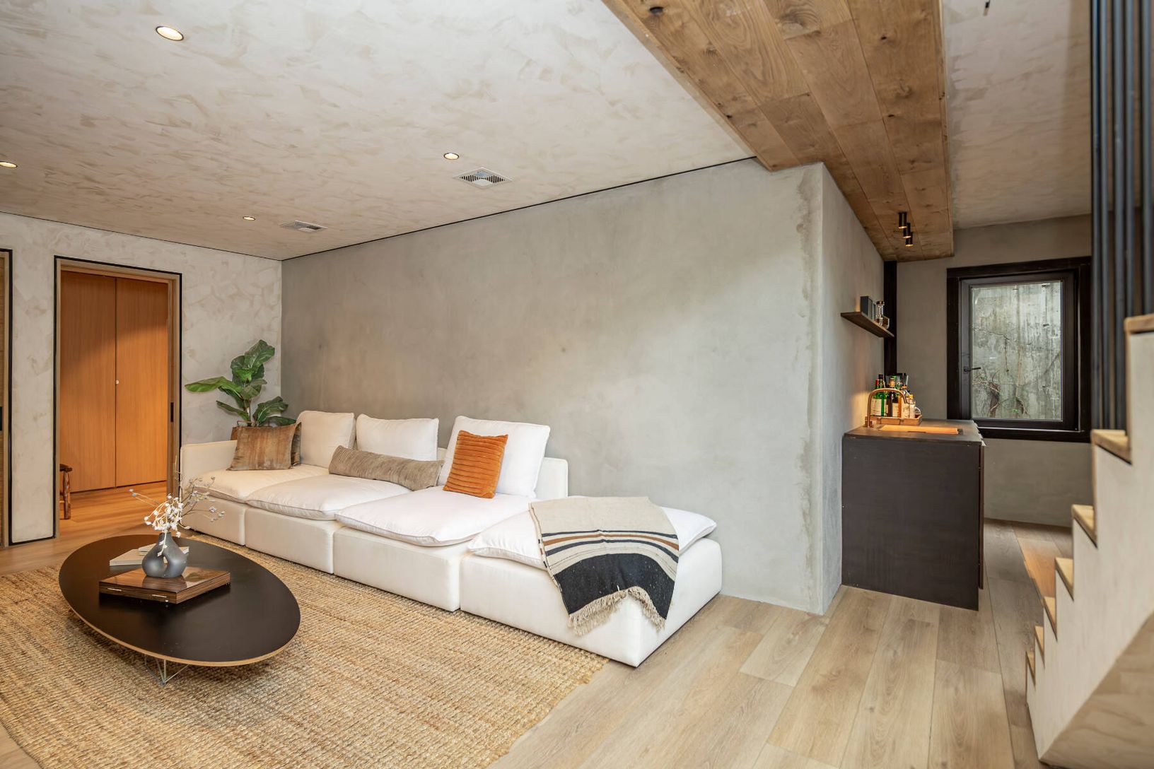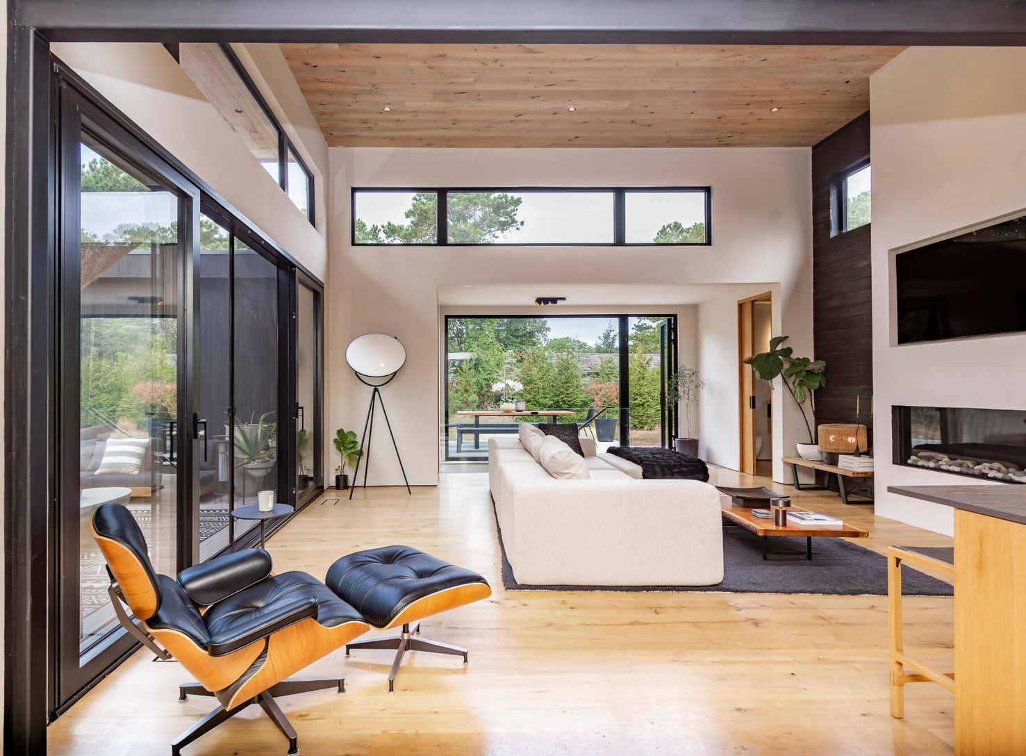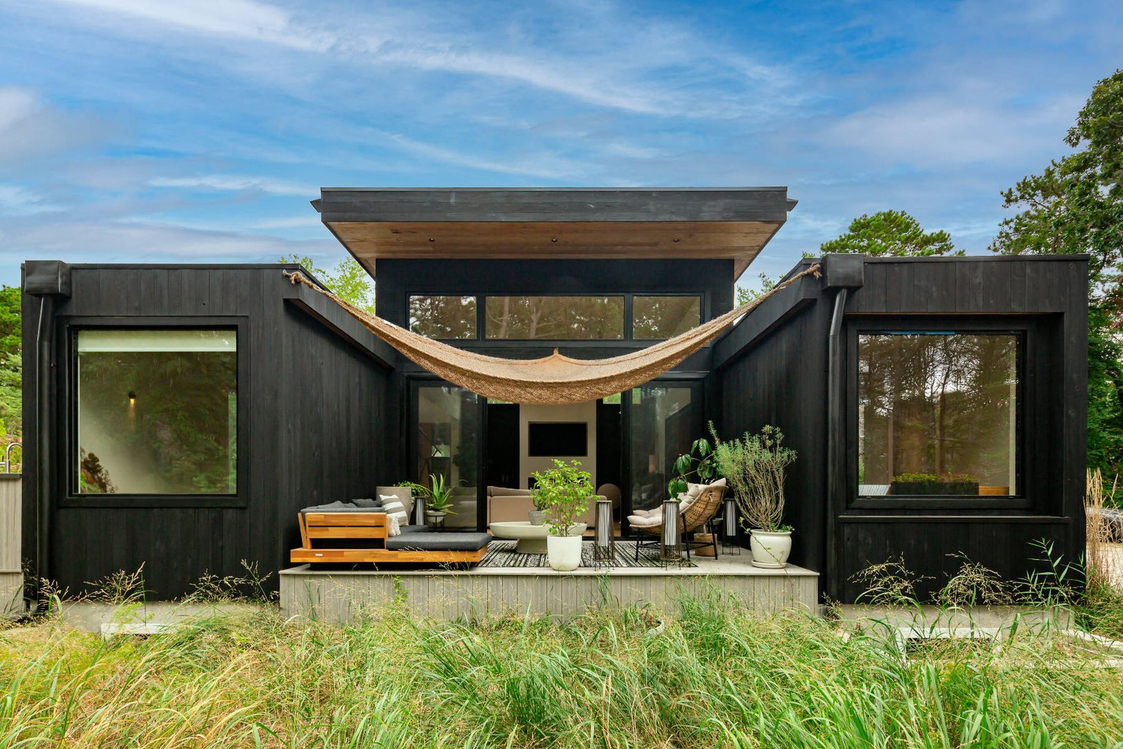 This tastefully designed, custom-built modern home in Amagansett epitomizes thoughtful architecture, blending nature with minimalist interiors and flooding the space with natural light. Expansive windows and a retractable sliding glass wall provide a seamless mix of privacy and openness, while custom woodworking and high-end finishes elevate every detail. Enter through a floor-to-ceiling teak door into a zen-like oasis. The main living area, w