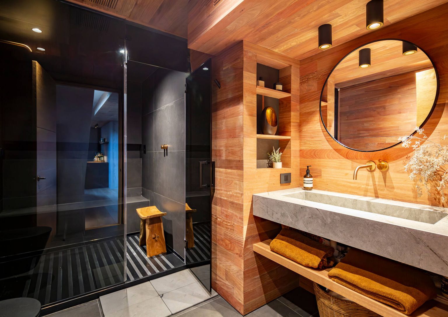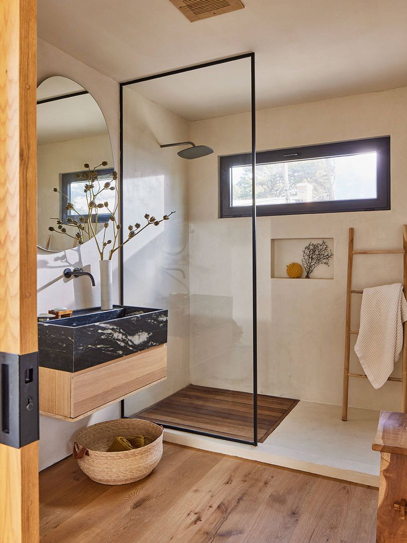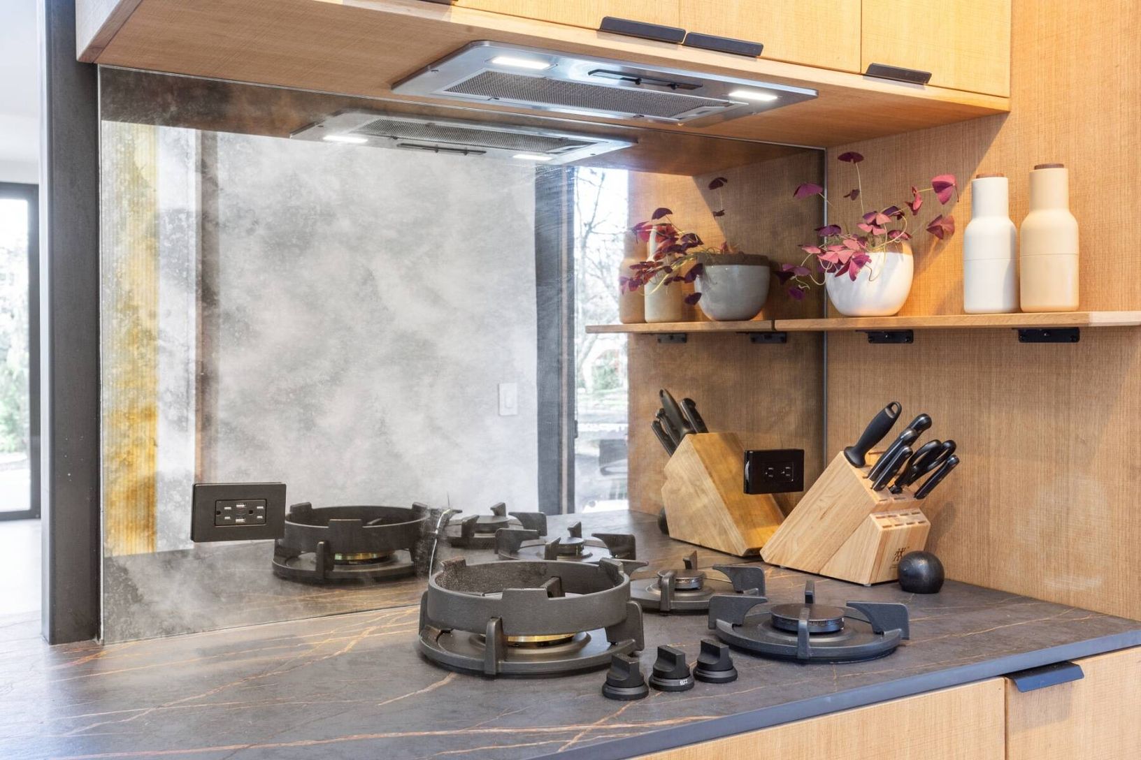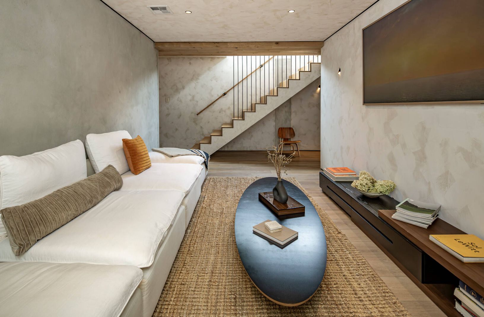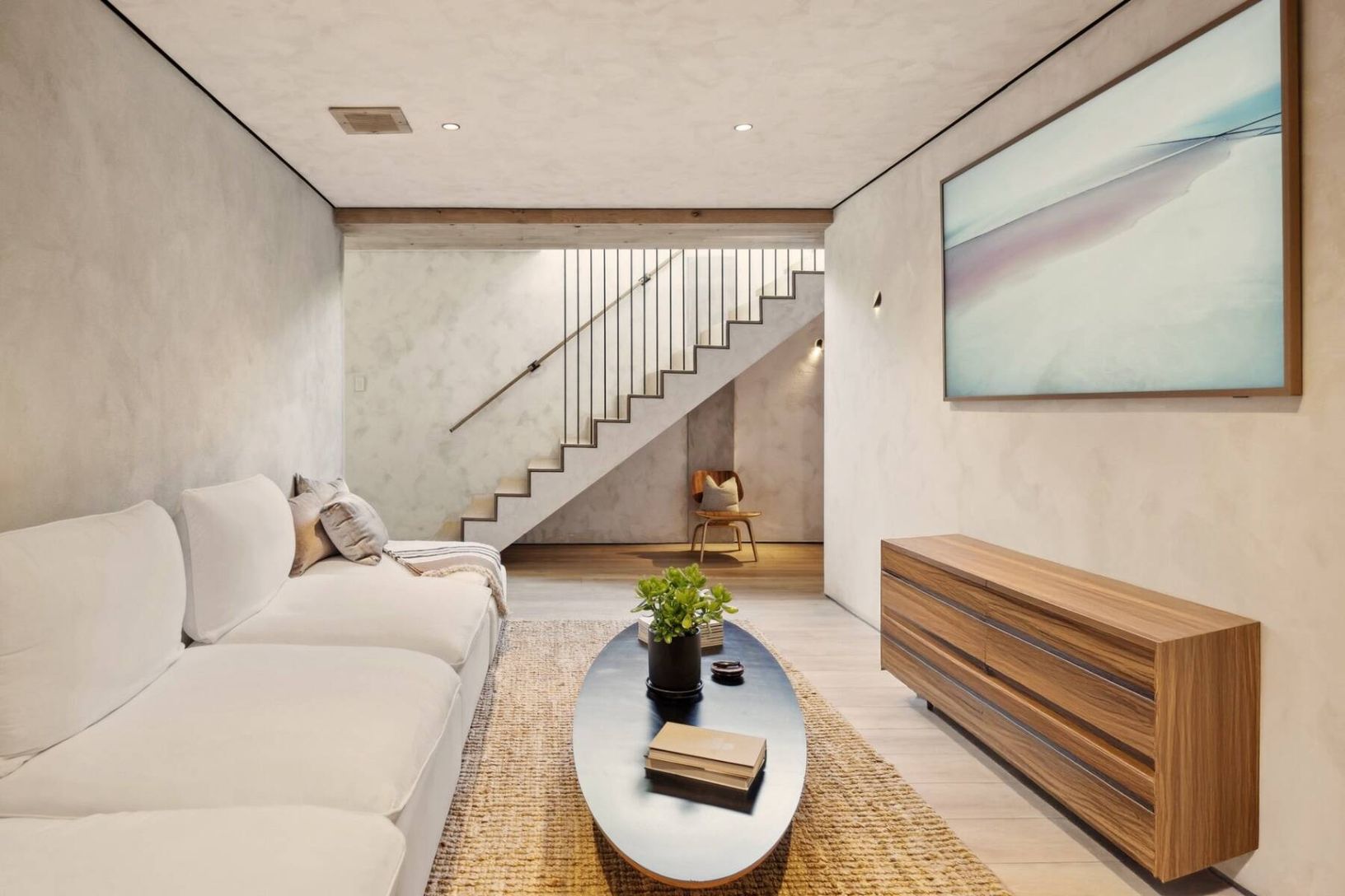 This tastefully designed, custom-built modern home in Amagansett epitomizes thoughtful architecture, blending nature with minimalist interiors and flooding the space with natural light. Expansive windows and a retractable sliding glass wall provide a seamless mix of privacy and openness, while custom woodworking and high-end finishes elevate every detail. Enter through a floor-to-ceiling teak door into a zen-like oasis. The main living area, w