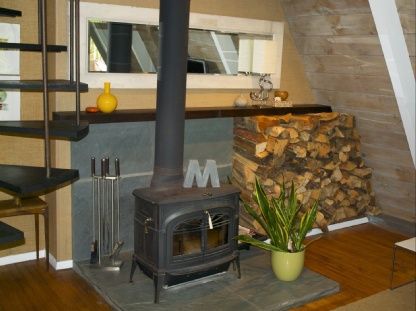 A feeling of tranquility arises the moment you step inside this unique and light filled 3 bedroom, 2 bath Contemporary. The home is beautifully appointed and boasts custom built in storage spaces. The open floor-planned living room/ dining area has glass doors that lead out to a spacious deck and hottub for relaxation and easy entertaining. A wood burning stove provides both comfort and efficiency. Each room is a special treat for the senses a