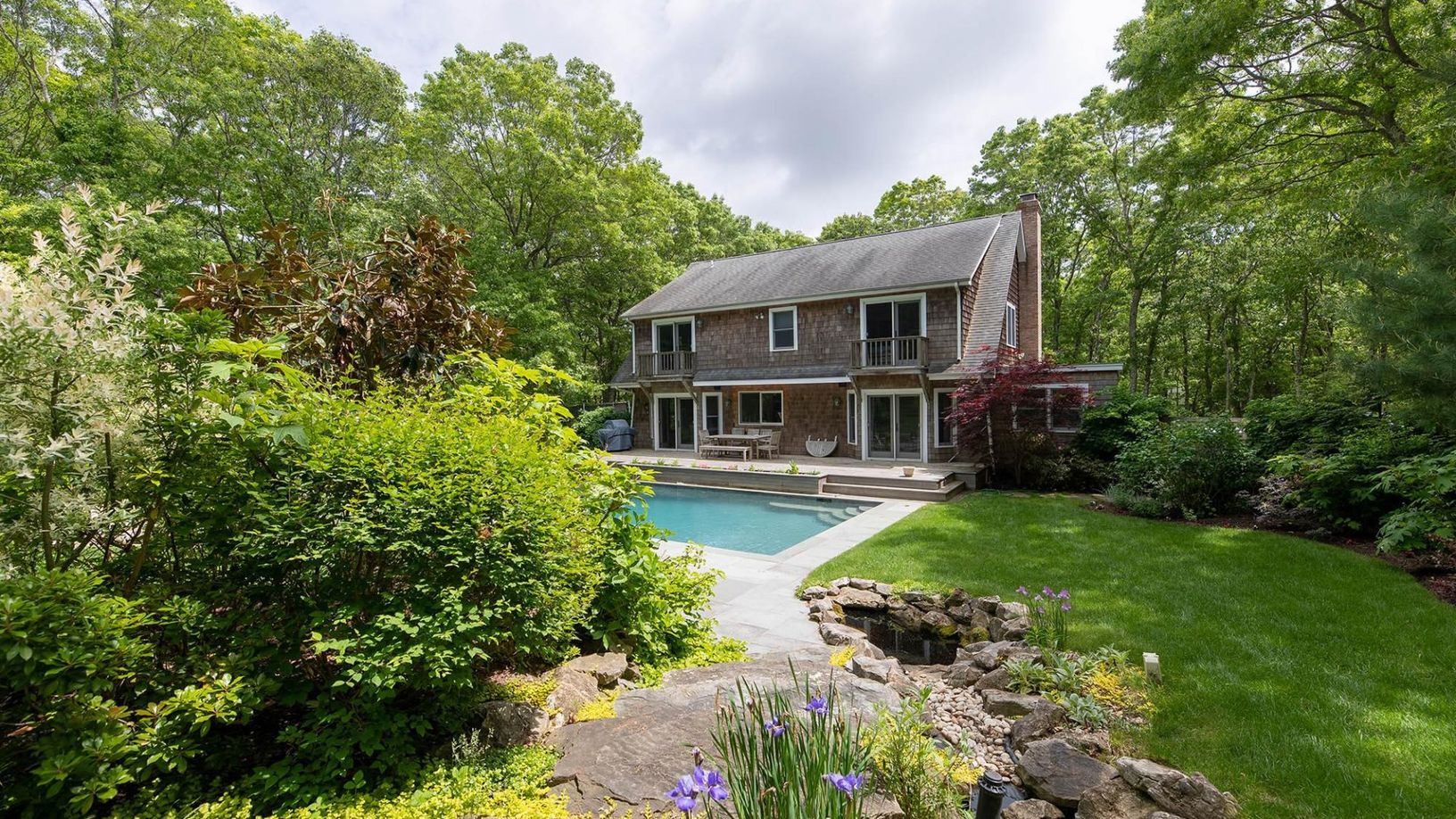 Peacefully situated on nearly two acres of land, this classic shingled vacation rental is a secluded escape in Southampton. With a beautifully manicured yard and a heated gunite pool, Deer Trail promises r