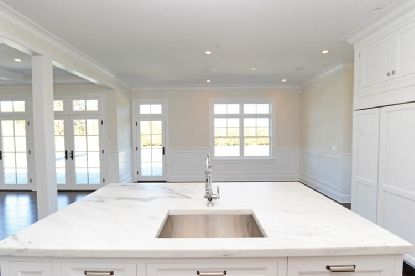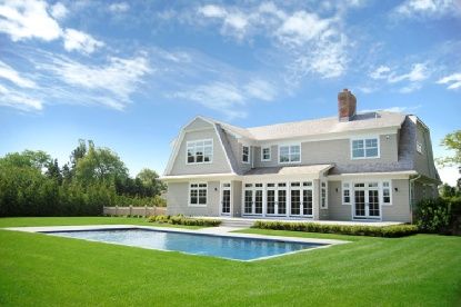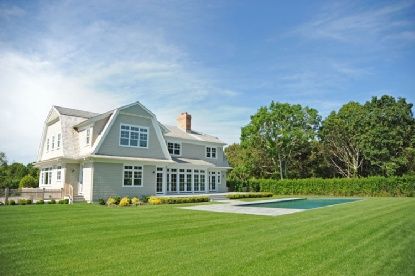 Just completed Shingle-Style Gambrel located near Southampton Village with 5 en suite bedrooms, 7 and 1-half bathrooms, gracious two-story entry, an open kitchen and living room with French doors and clerestory windows providing plenty of natural light and accessing a spacious, bluestone deck overlooking a heated, gunite pool and large grass lawn surrounded by a tall perimeter of trees for privacy. The finest building materials and finishes ar