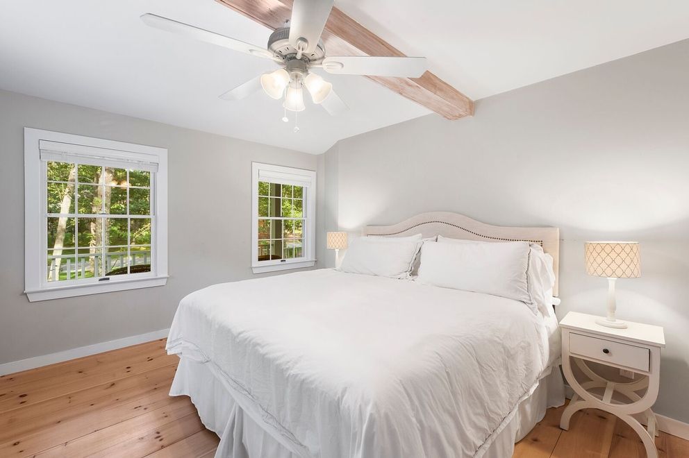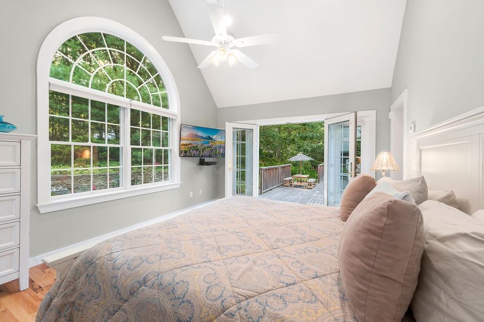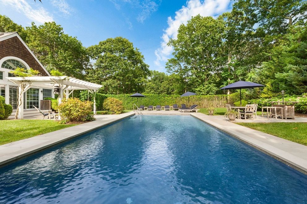 This stunning Sag Harbor Cape is turnkey and ready to be enjoyed. Set back and sited perfectly on a rolling acre embracing the essence of Hampton's charm. This 2600 sf home has 4 beds and 3.5 baths boasting an open floor plan: great room with wood burning fireplace and formal powder room along with an open dining area and gourmet chef's kitchen. Adjacent is a large vaulted family sunroom with blue stone and a wall of glass sliders leading to t