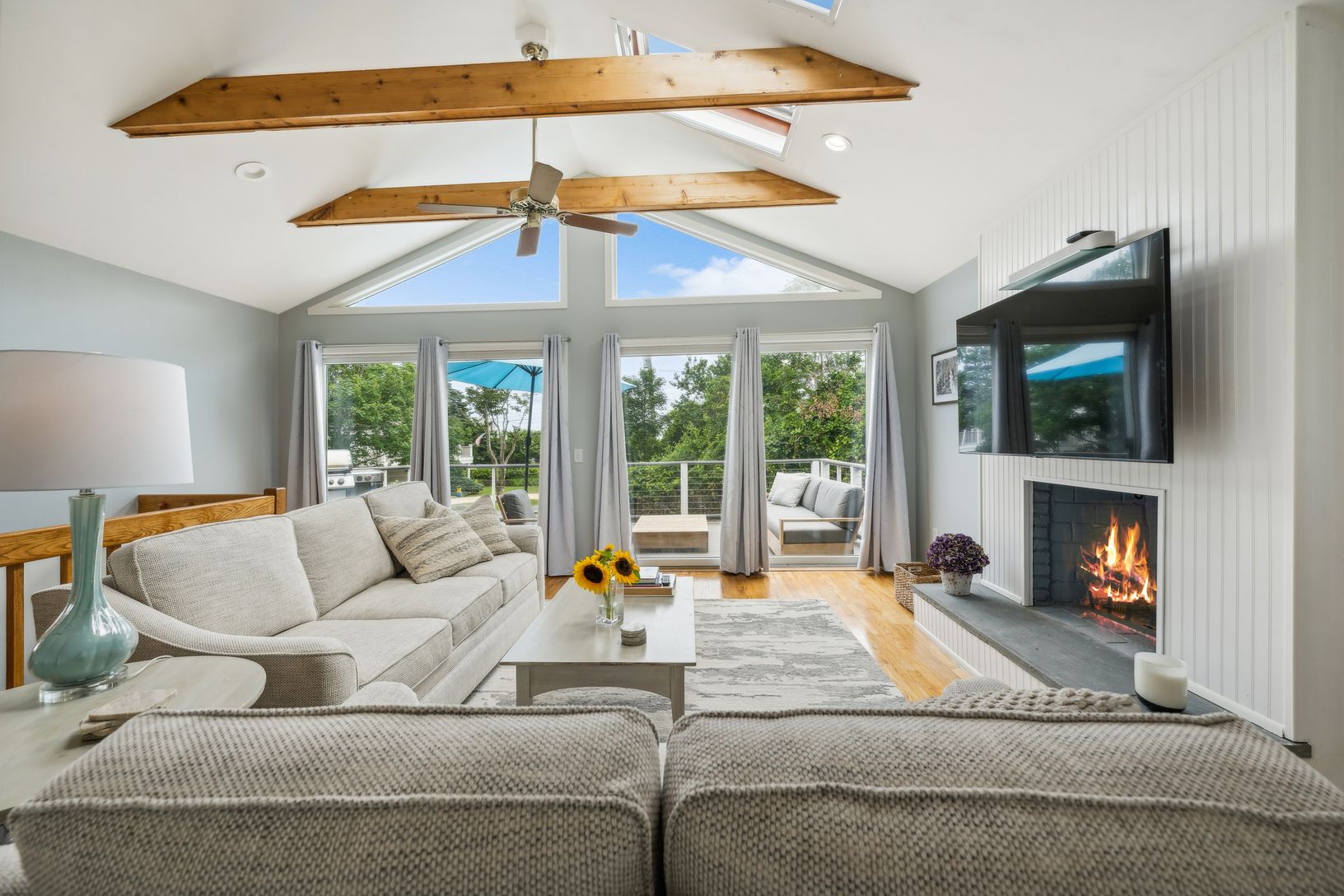 Enjoy your summer at this wonderful property in Hither Hills. With four bedrooms, two bathrooms, eat in kitchen, bright living room with exposed beams, fireplace, deck and an outdoor shower, this home is just moments to private ocean access.
