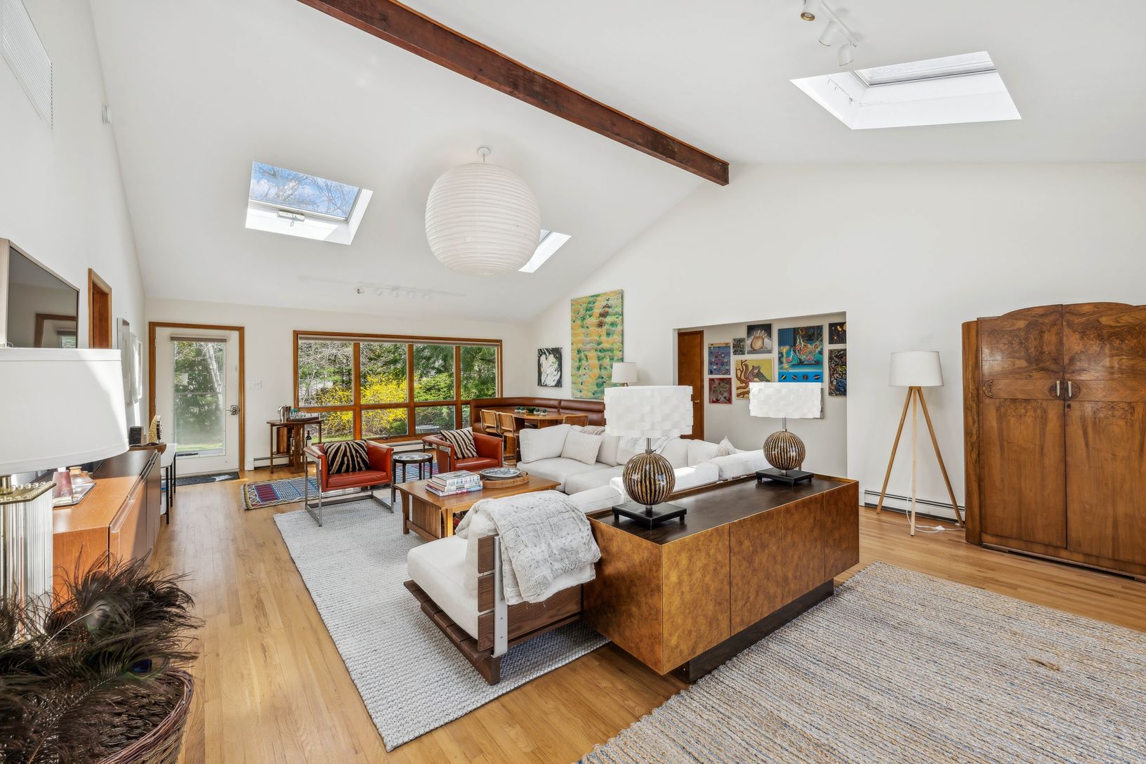 Hamptons summer rental house just moments from the ocean beach in beautiful Wainscott. Three bedrooms, two bath Hamptons modern home with open plan and vaulted ceilings and hardwood floors in every room. Easy to enjoy the villages of Bridgehampton, East Hampton, or Sag Harbor from this location, or just stay home to take in the peaceful gardens sitting on one of two decks or the screened porch. Kitchen and baths, king size bed in primary bedro
