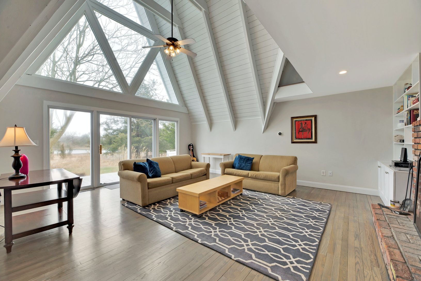 Water view home on beautiful shinnecock bay in Rampasture Point with private deeded right of way to beach. Open concept floor plan has spectacular two story living room with fireplace, eat in kitchen, dining area, semi enclosed porch off kitchen, first floor master, bath, upper level two guest bedrooms, bath, laundry room. Outside of home surrounded by decking to enjoy the water views. Enjoy all types of water activities from you private beach
