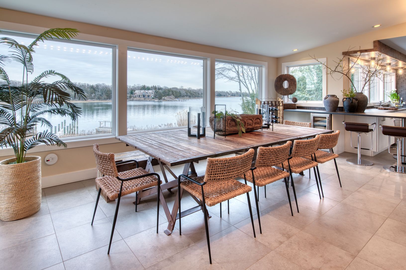 Welcome to 17 Harbor Drive, Sag Harbor, NY, a chic and updated modern waterfront home nestled in the desirable, charming, and quaint community of Bay Point. This stunning property offers breathtaking water views and a lifestyle of luxury and comfort. Boasting 4 bedrooms and 4.5 bathrooms, this 2500 square foot home is situated on a generous 1/3rd of an acre. The open floor plan living and dining area seamlessly flow into the chef's kitchen, a