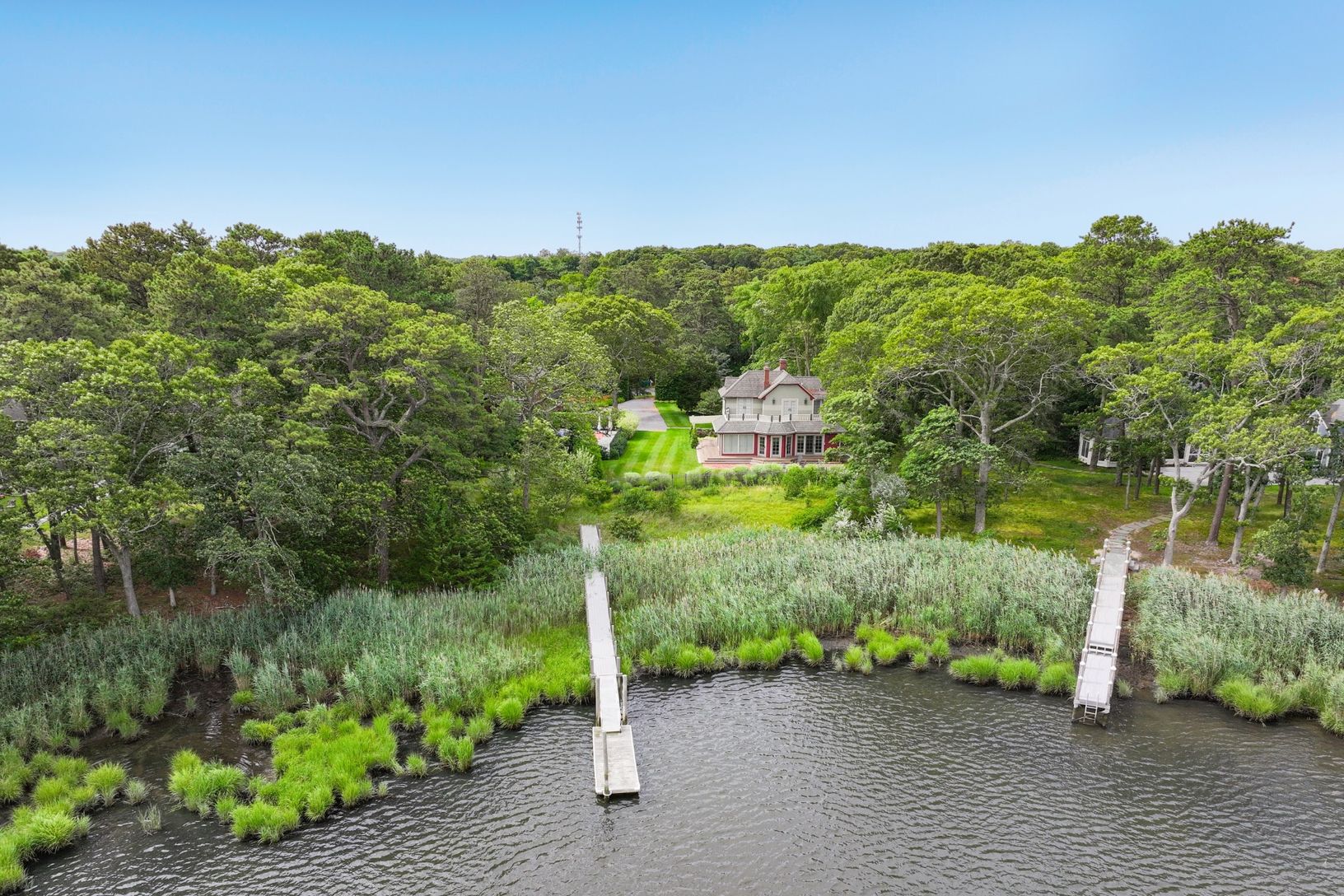 A peaceful waterfront oasis awaits on Reeves Bay, totally turnkey and ready for immedate move-in. Behind the new gated entry, arrive to this exquisite park-like parcel with meticulously maintained mature landscaping dotted with specimen trees and tall perimeter hedging that offer ultimate privacy. This gorgeous pre-war home is a historical landmark, smartly renovated for today's lifestyle, a portrait of elegant coastal living boasting beautifu