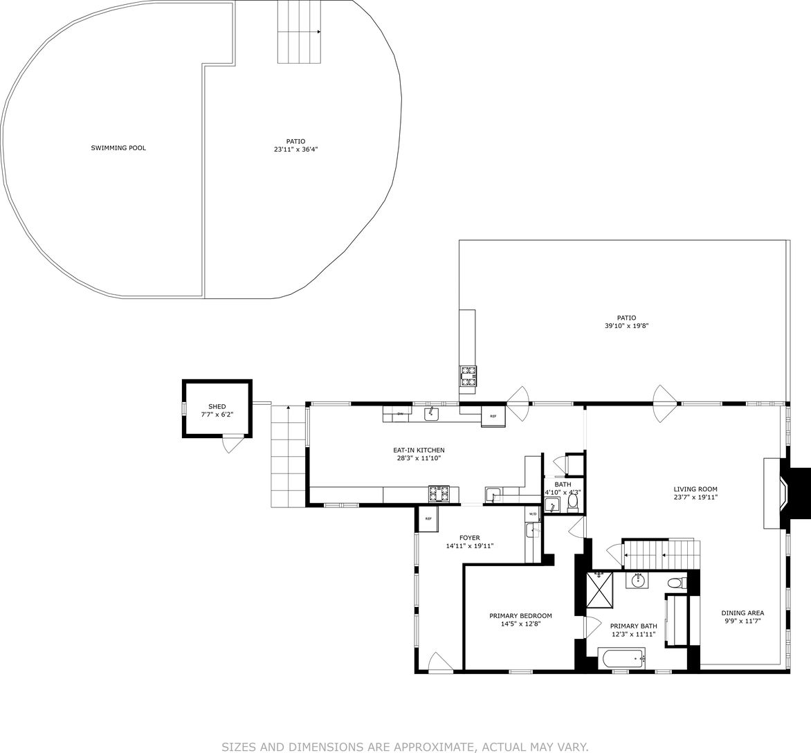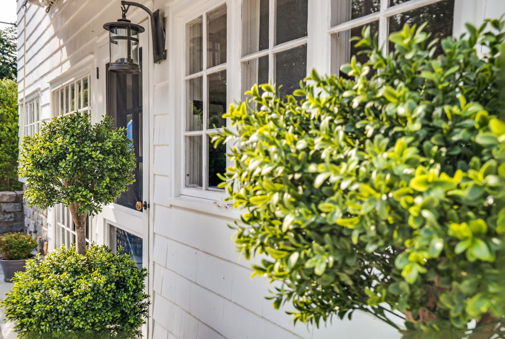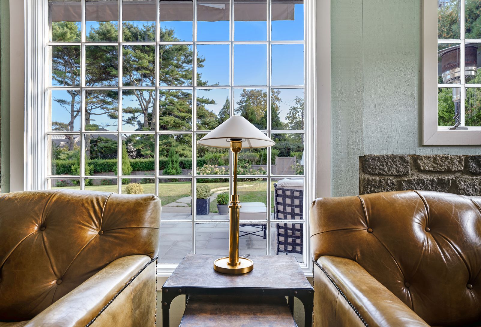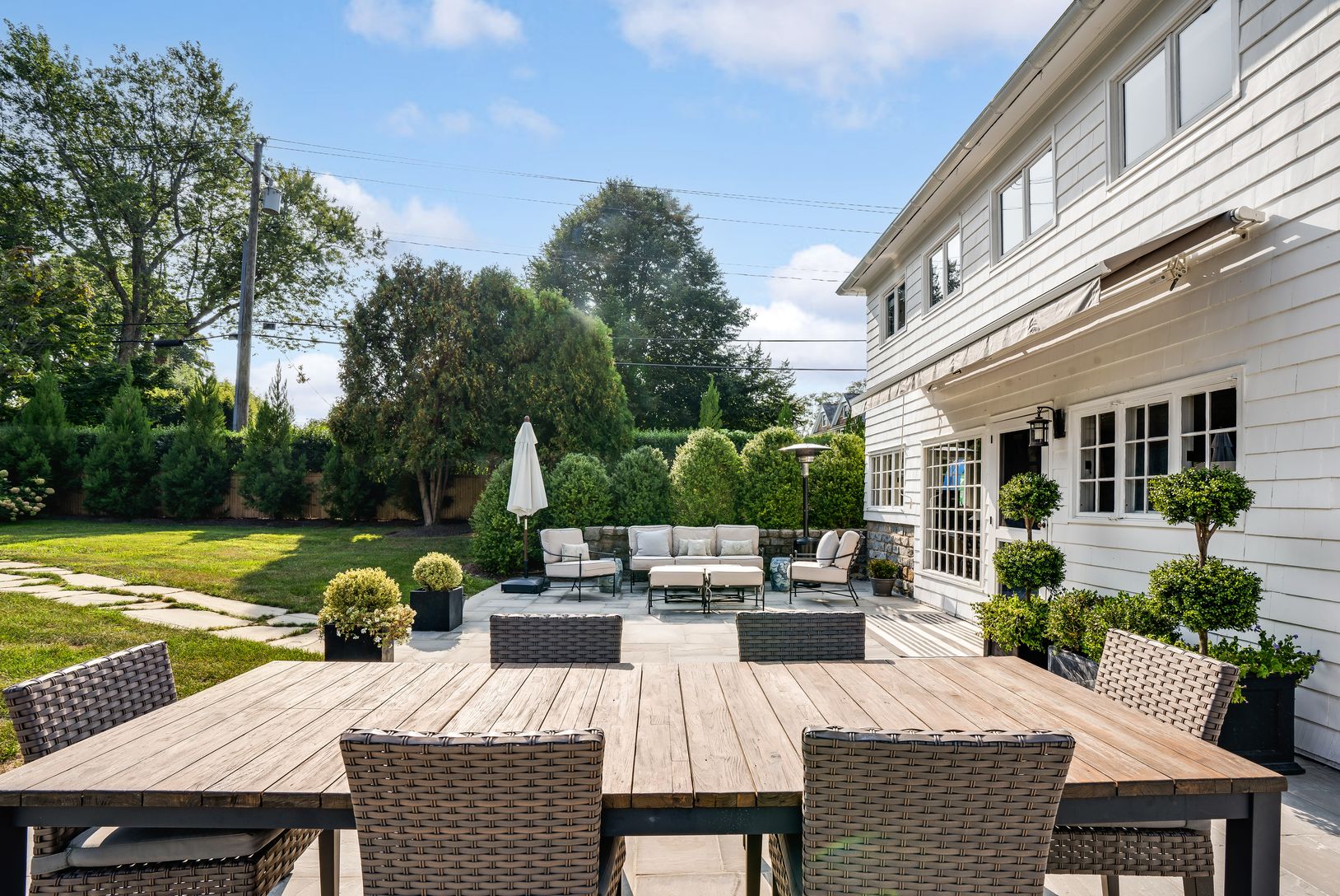 This tastefully renovated 1940s farmhouse, seamlessly blends the timeless charm of yesteryear with modern sophistication. A sweeping driveway gracefully winds its way along the perimeter of the grounds, offering ample parking for guests near the main entrance and leading to the convenient one-car attached garage. Pass through the gate and discover a captivating outdoor oasis, complete with two inviting bluestone patios, a heated gunite pool, a