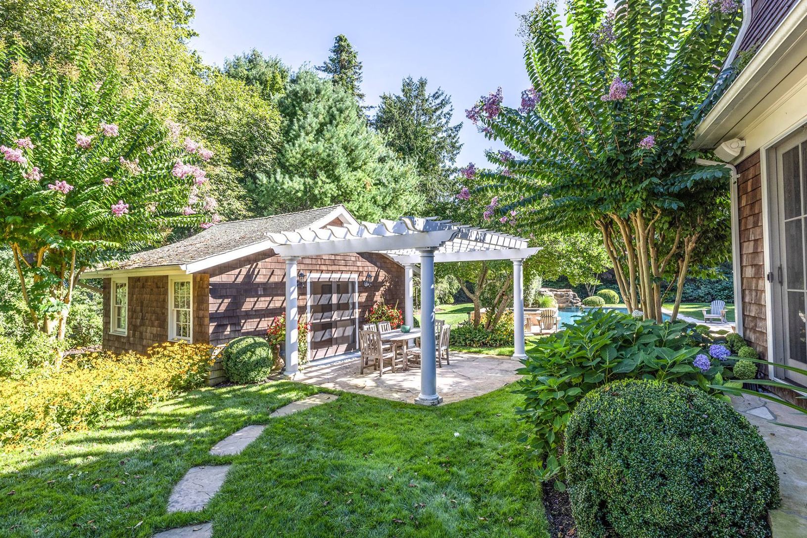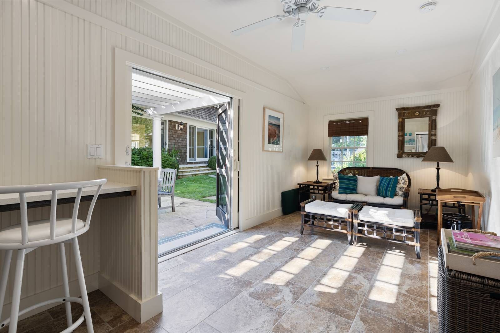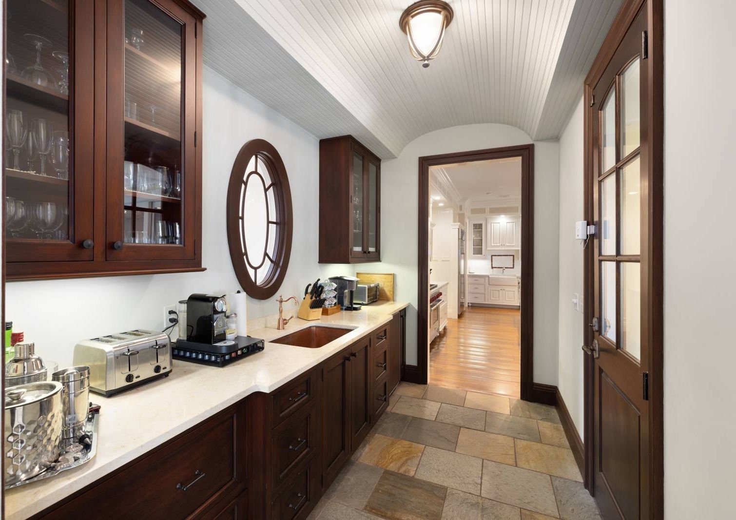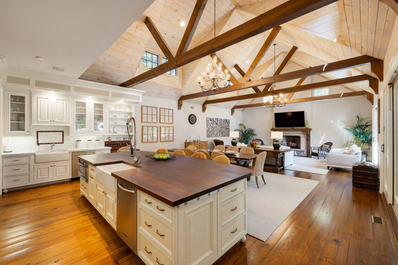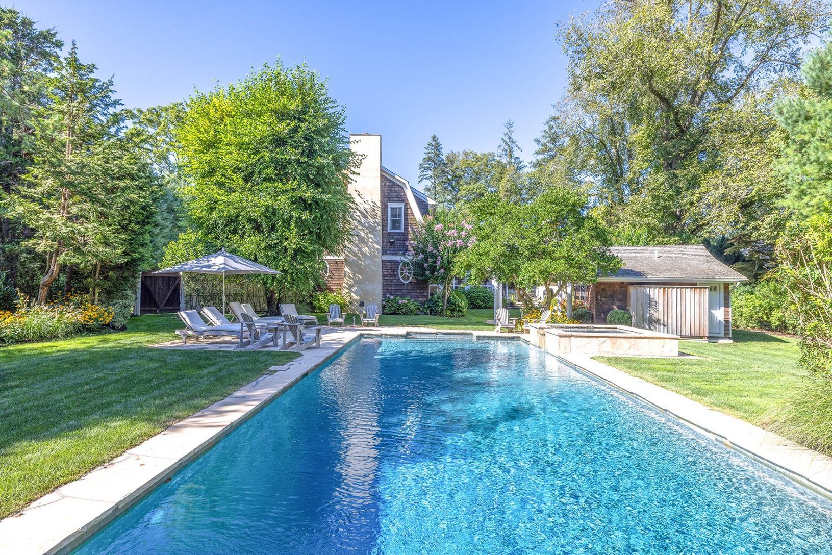 Exceptionally maintained in the highly desirable area of East Hampton's Georgica Estate section, this stunning South of the Highway modern barn has everything you could want in a summer residence. The main attraction of this 7,000+/- sq. ft. three level residence - where open entertaining spaces and formal functionality seamlessly intertwine - is the spectacular eat-in kitchen which overlooks a grand two-story barn-style great room with oversi