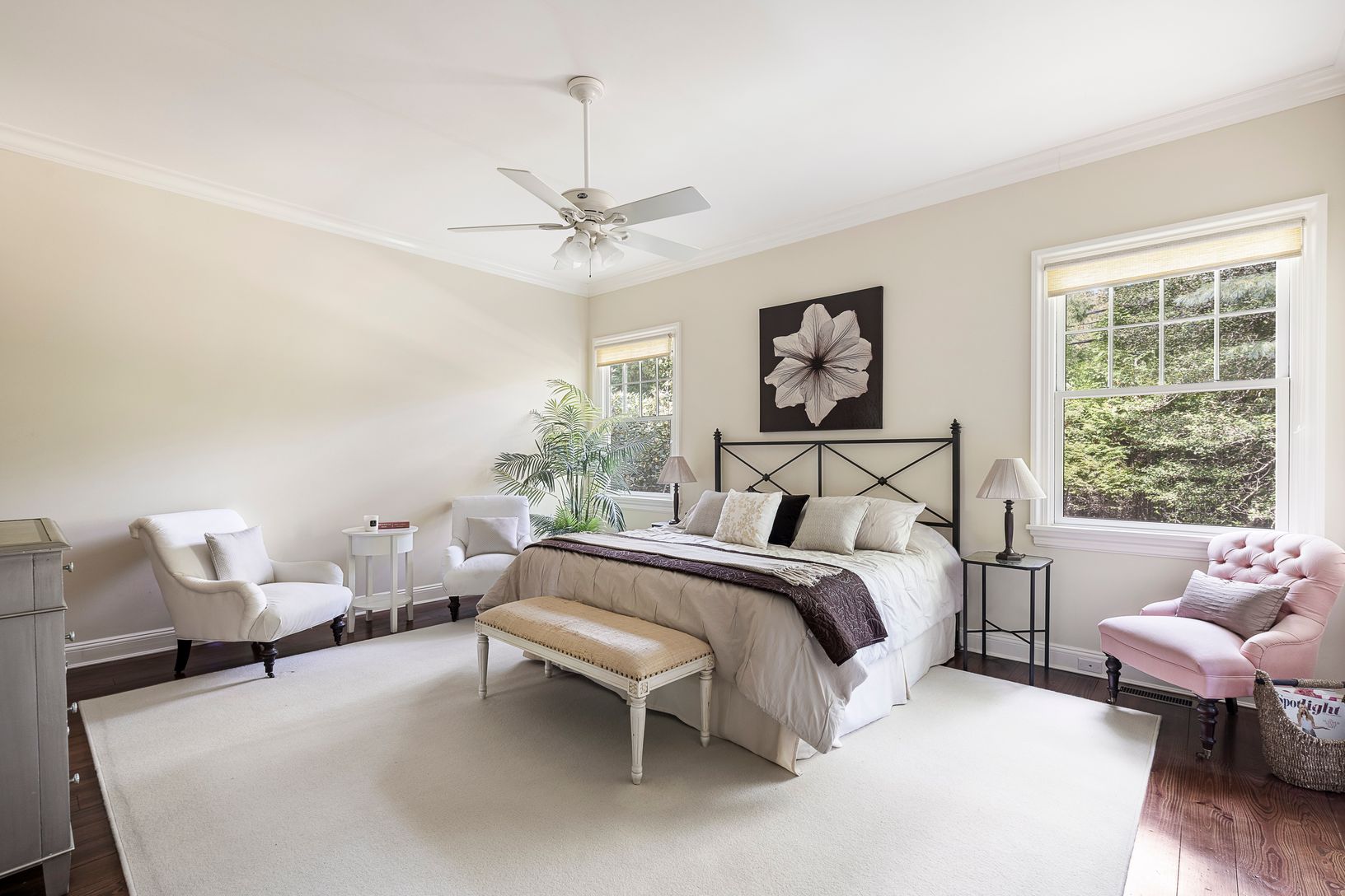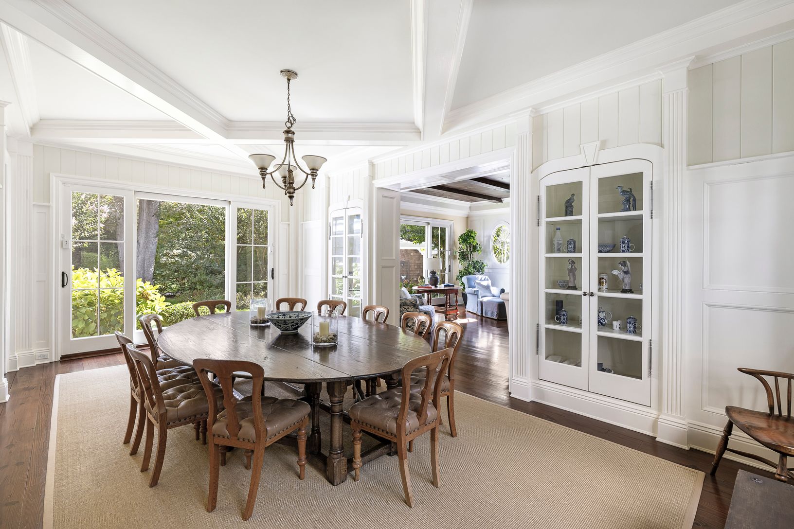 Set on just over an acre in East Hampton's coveted Georgica enclave, this 7,101+/- sq. ft. residence offers 5 bedrooms, 6 full and 2 half baths across three finished levels. The main floor is anchored by a dramatic two-story great room with a fireplace, a chef's kitchen with an oversized mahogany island, a formal dining room, a living room, and a screened porch with a gas fireplace. A junior primary suite, butler's pantry, and 2-car garage com