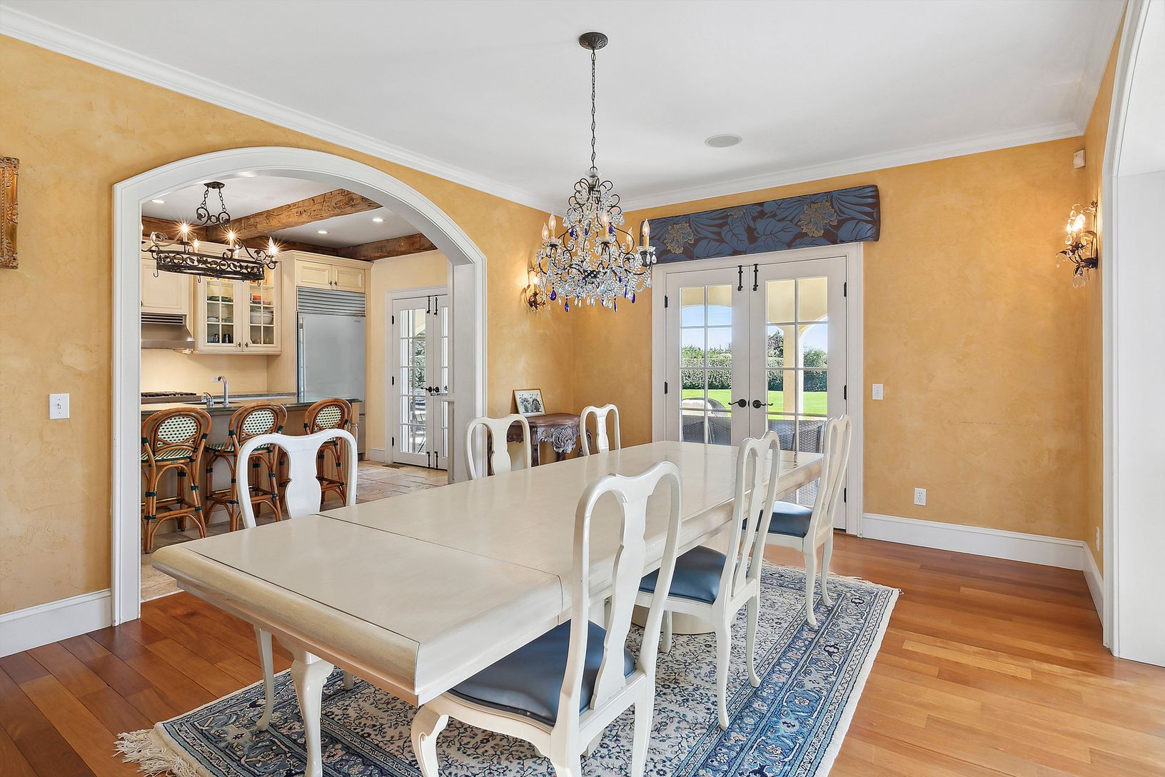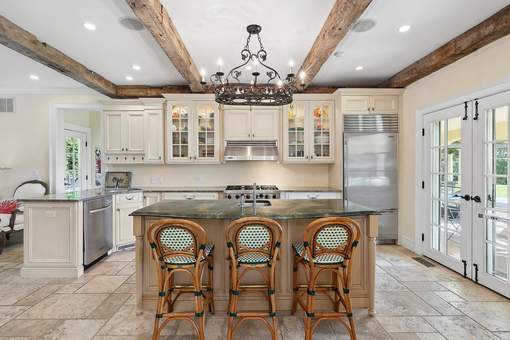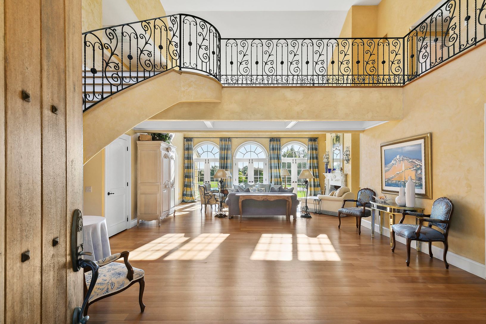 Situated at the end of a long driveway with gated entry sits this magnificent manor with 5 bedrooms, 3 full baths and 2 half baths, heated gunite pool on 1.68 +/- acres of privacy in a luxurious setting. Upon entering you are greeted by a spacious foyer with double height living room, wood burning fireplace with French doors leading to the expansive back yard. The main floor also includes a formal dining room with doors leading to the back c