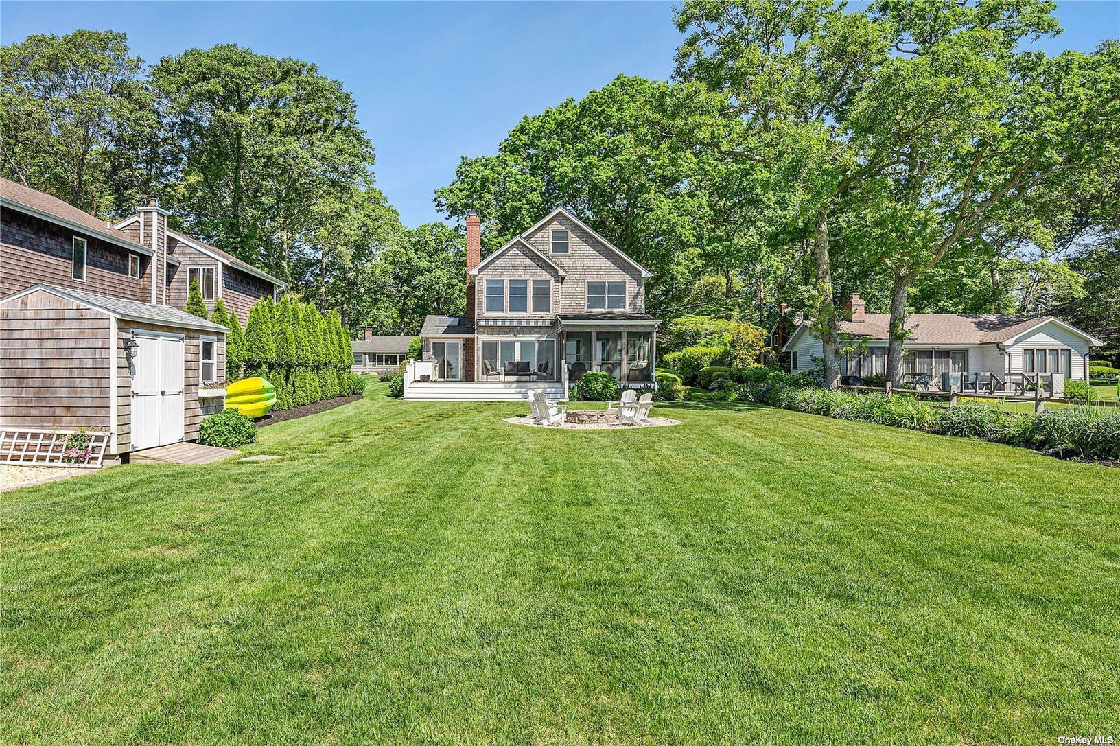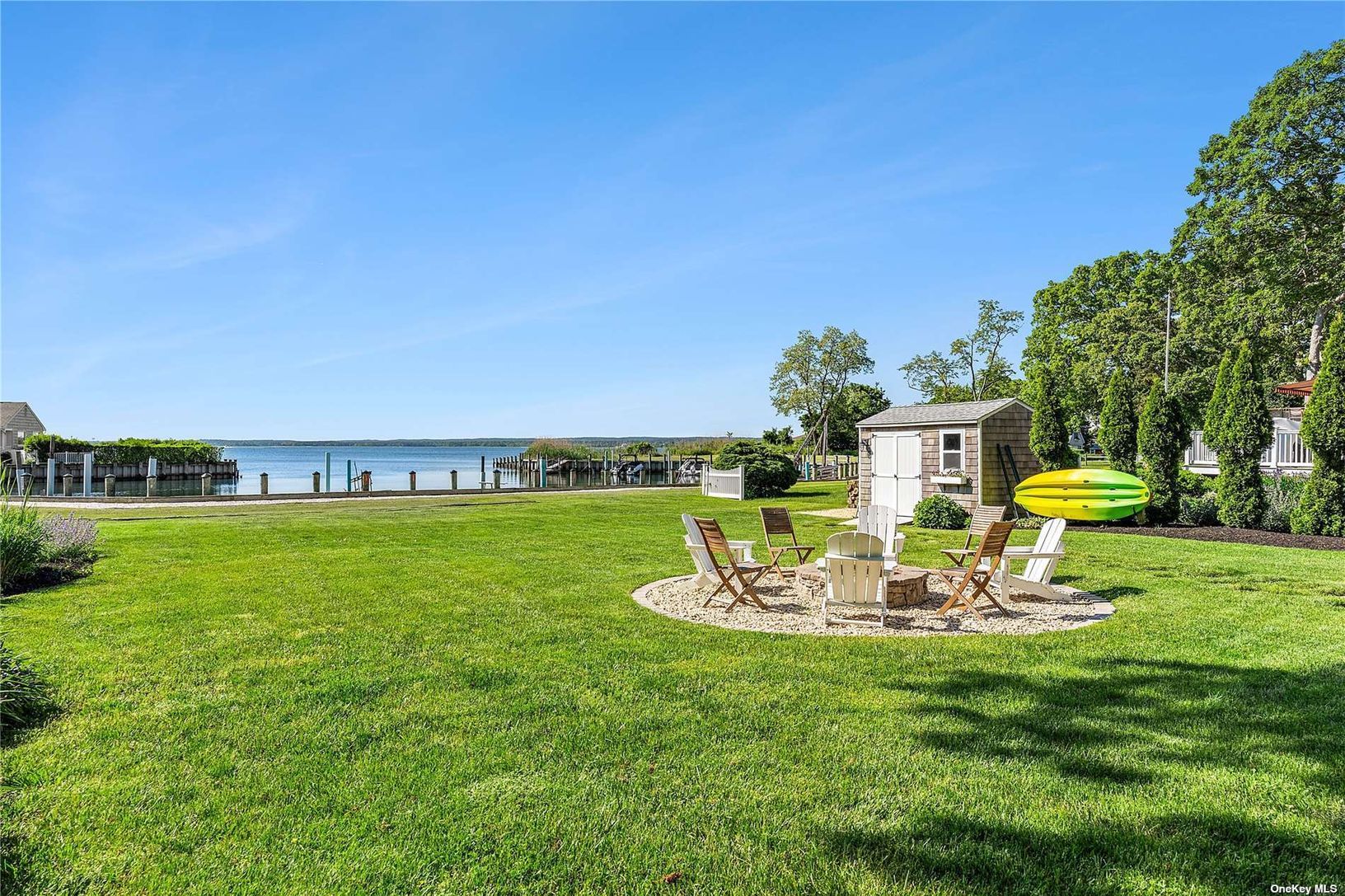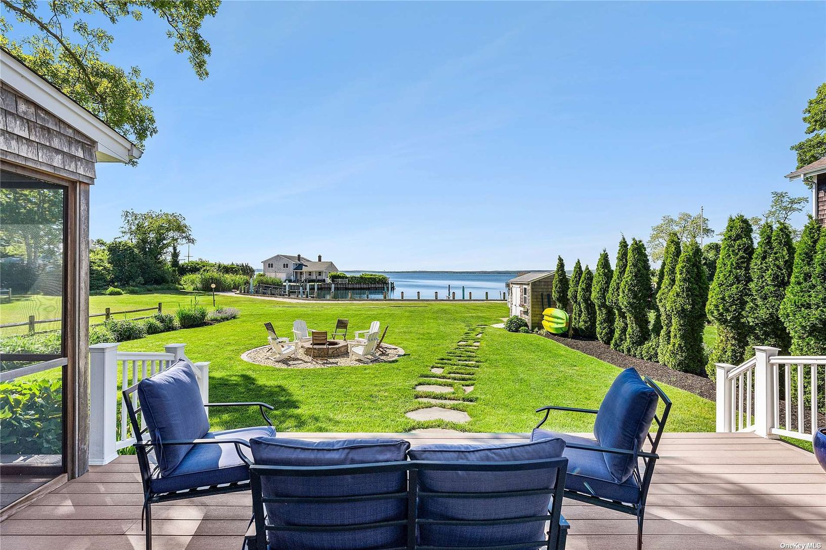 Welcome to Baywoods, a waterfront community nestled perfectly on the beautiful Peconic Bay. This charming turn-key residence offers unobstructed water views, with a private dock and sandy beach. Meticulously maintained, this three bedroom, two and half bath residence is an ideal beach escape. Outdoor deck, screened in porch, and mature landscaping make a welcomed space for entertaining. Enjoy gathering with family and friends by the fire pit a