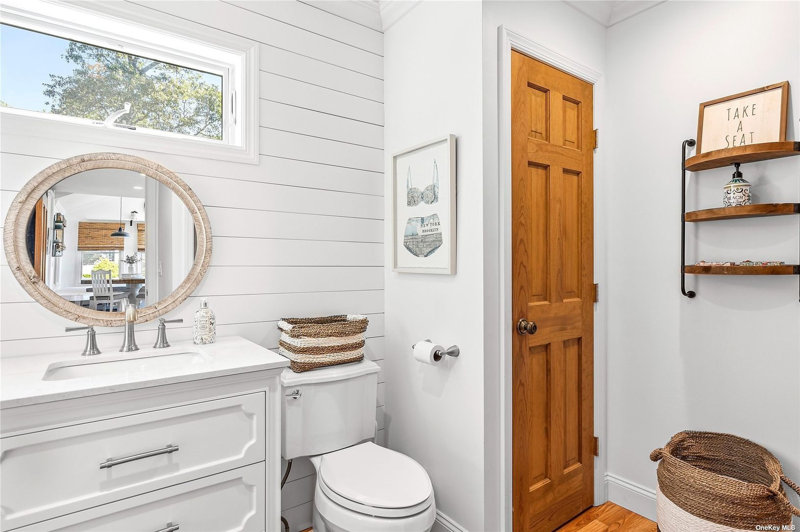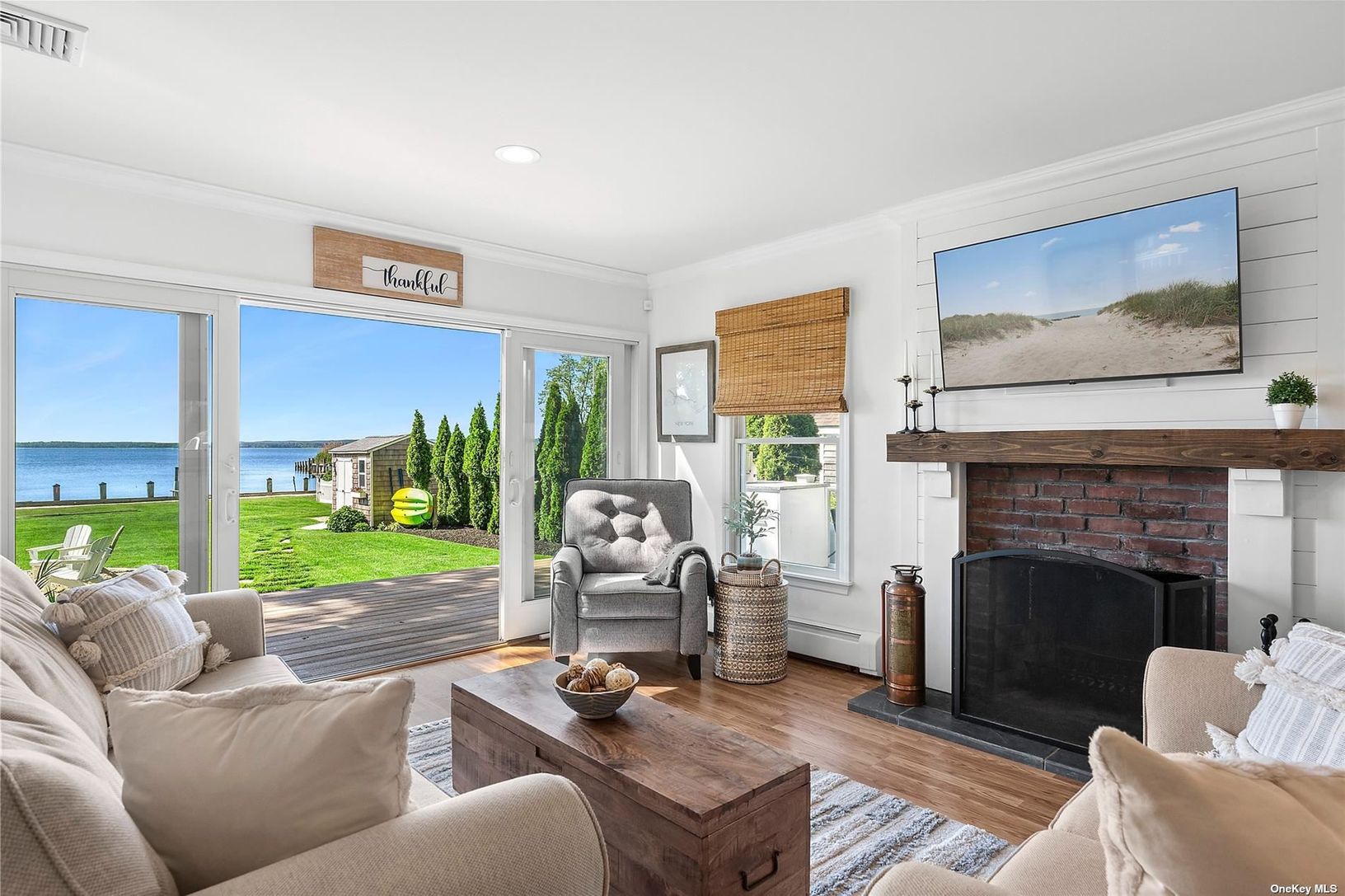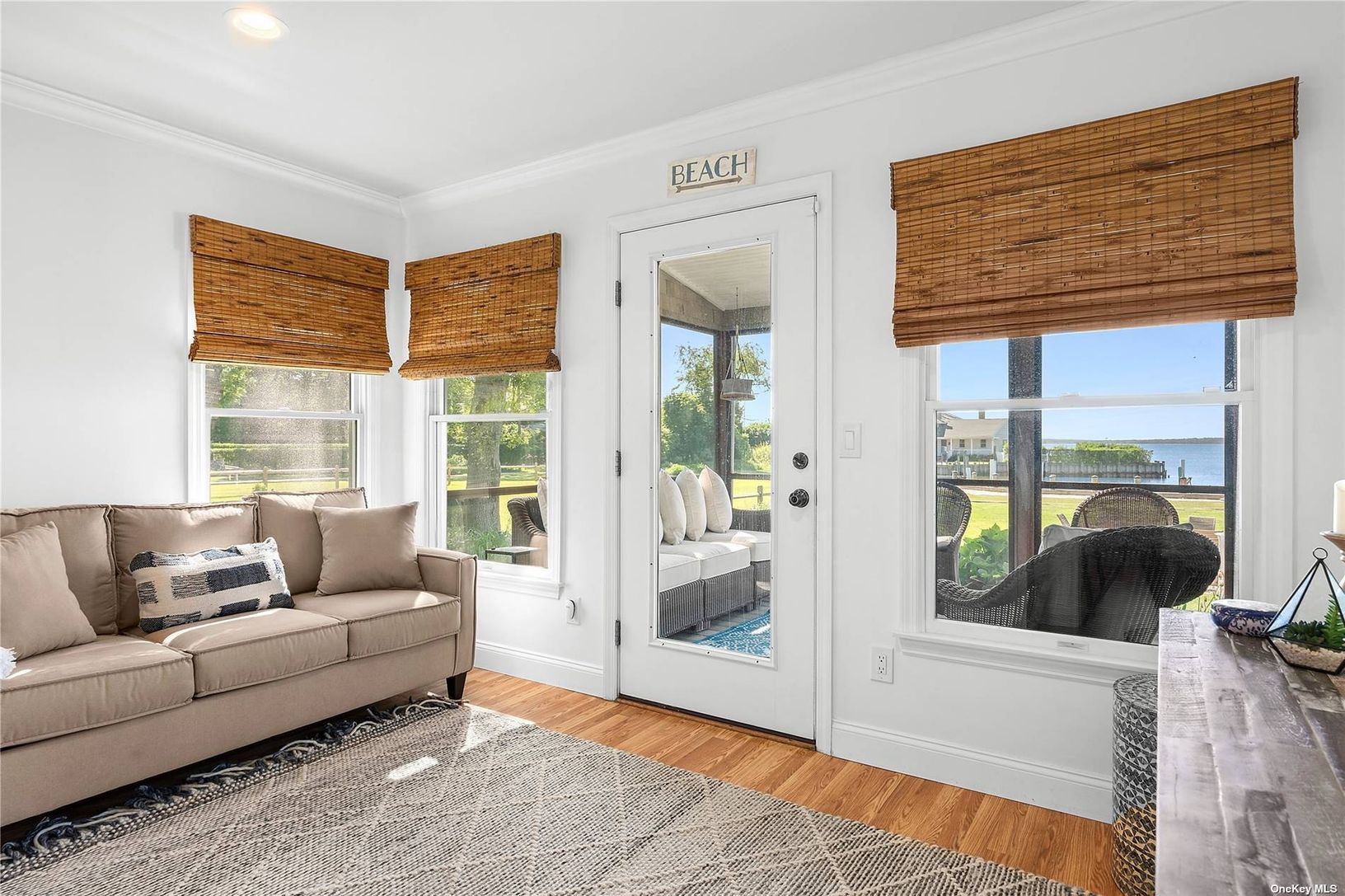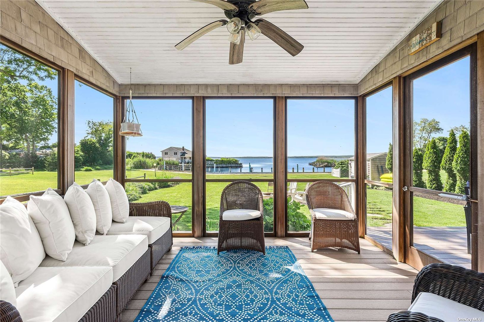 Welcome to Baywoods, a waterfront community nestled perfectly on the beautiful Peconic Bay. This charming turn-key residence offers unobstructed water views, with a private dock and sandy beach. Meticulously maintained, this three bedroom, two and half bath residence is an ideal beach escape. Outdoor deck, screened in porch, and mature landscaping make a welcomed space for entertaining. Enjoy gathering with family and friends by the fire pit a