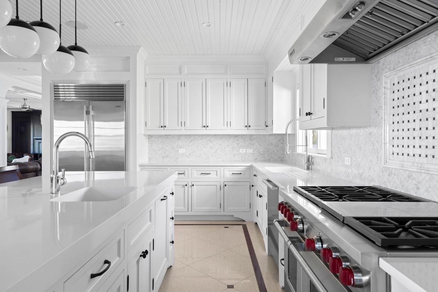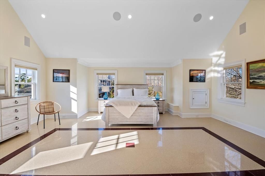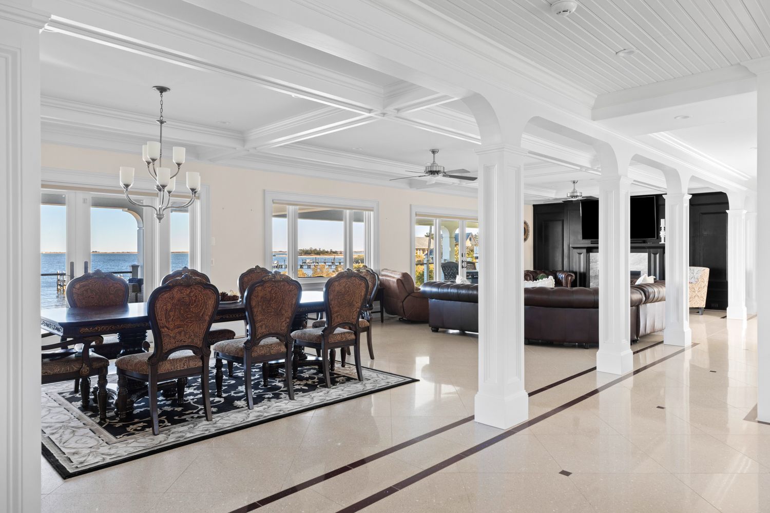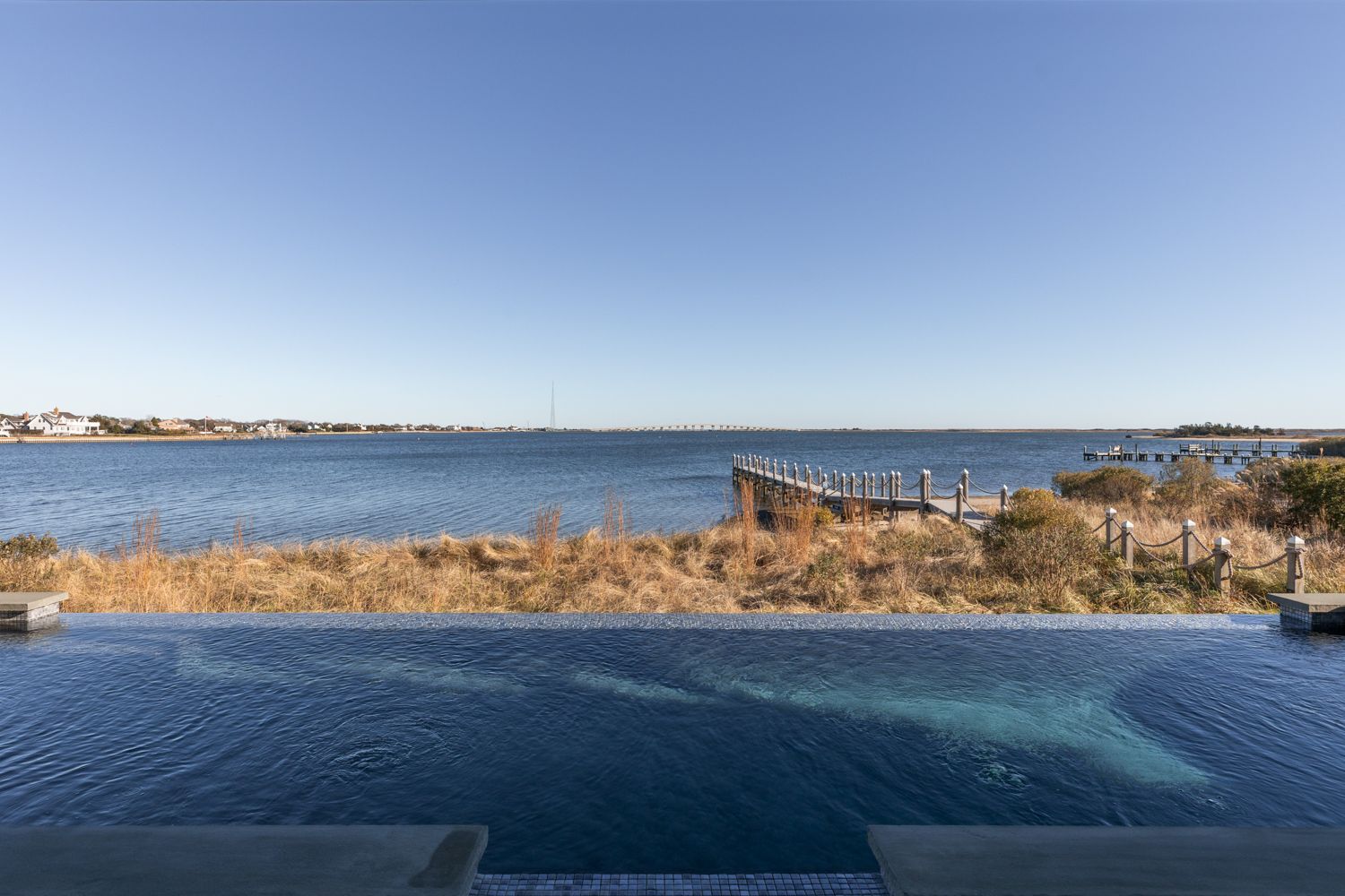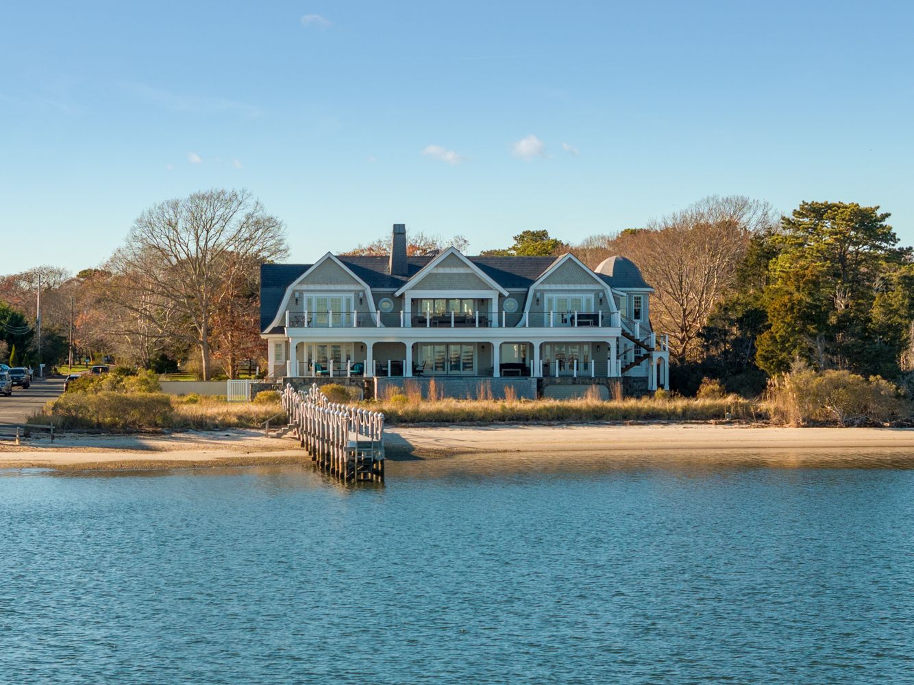 Set on 175 feet of private sandy beachfront with a 136' dock, this Shinnecock Bay waterfront residence is designed to highlight its panoramic setting and create a natural flow between interior spaces and the surrounding landscape. Multiple elevations and extensive glasswork frame open bay views from morning through evening, emphasizing light, orientation, and connection to the water. The open-concept main level includes a chef's kitchen with W