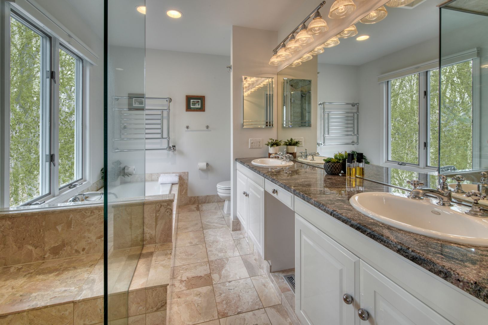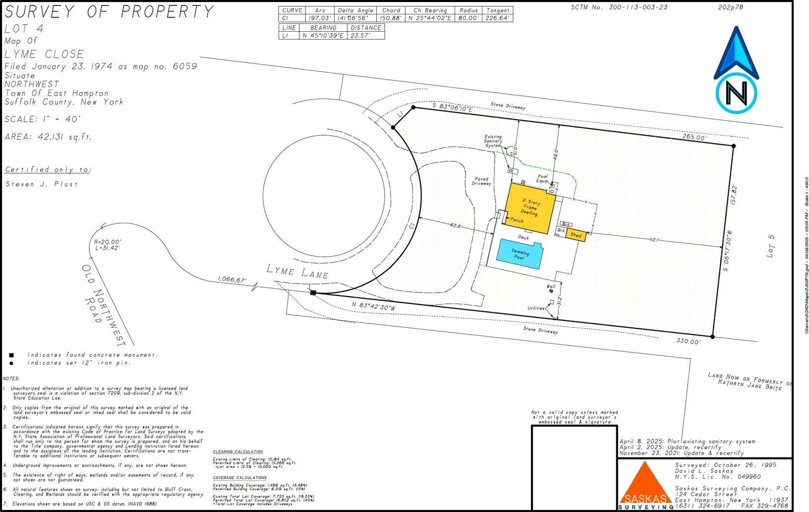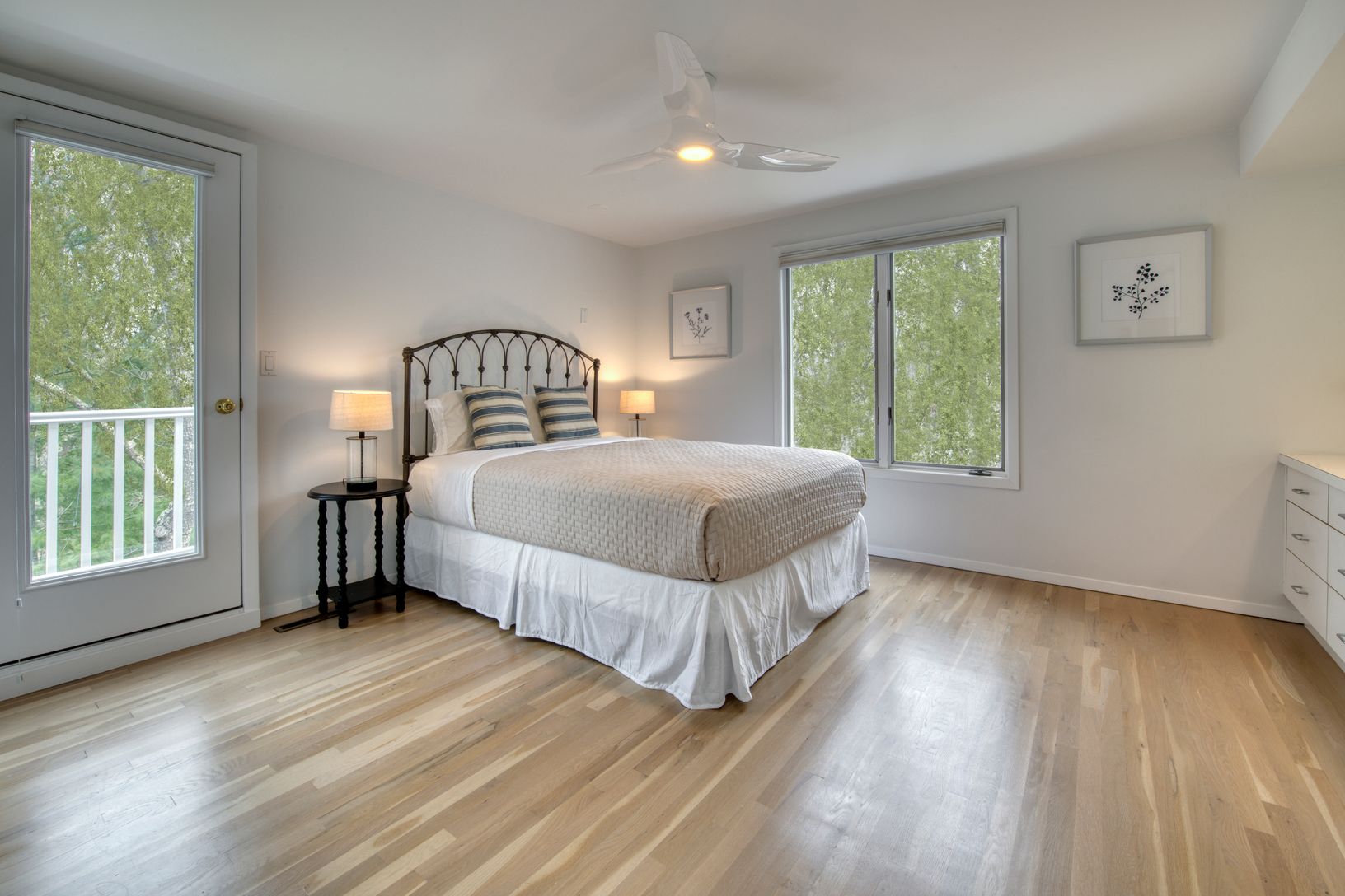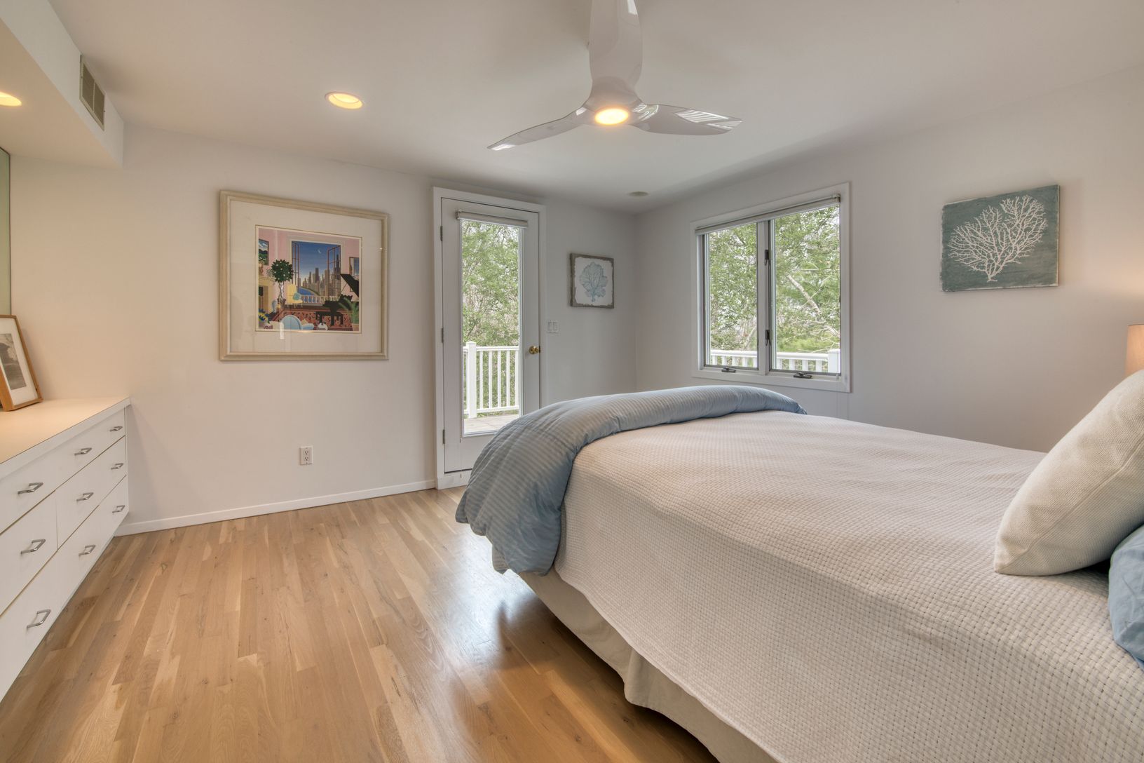 Dramatic light filled contemporary residence is well located at the end of a cul de sac only 7 minutes to Main Street and ocean. The open floor plan includes a grand living and dining area with floor to ceiling stone fireplace, lofted ceilings, and walls of glass overlooking .97 acres of privacy. The renovated chef's kitchen has custom cabinetry, granite countertops, Wolf stove and SubZero refrigerator. There is an updated powder room and wet