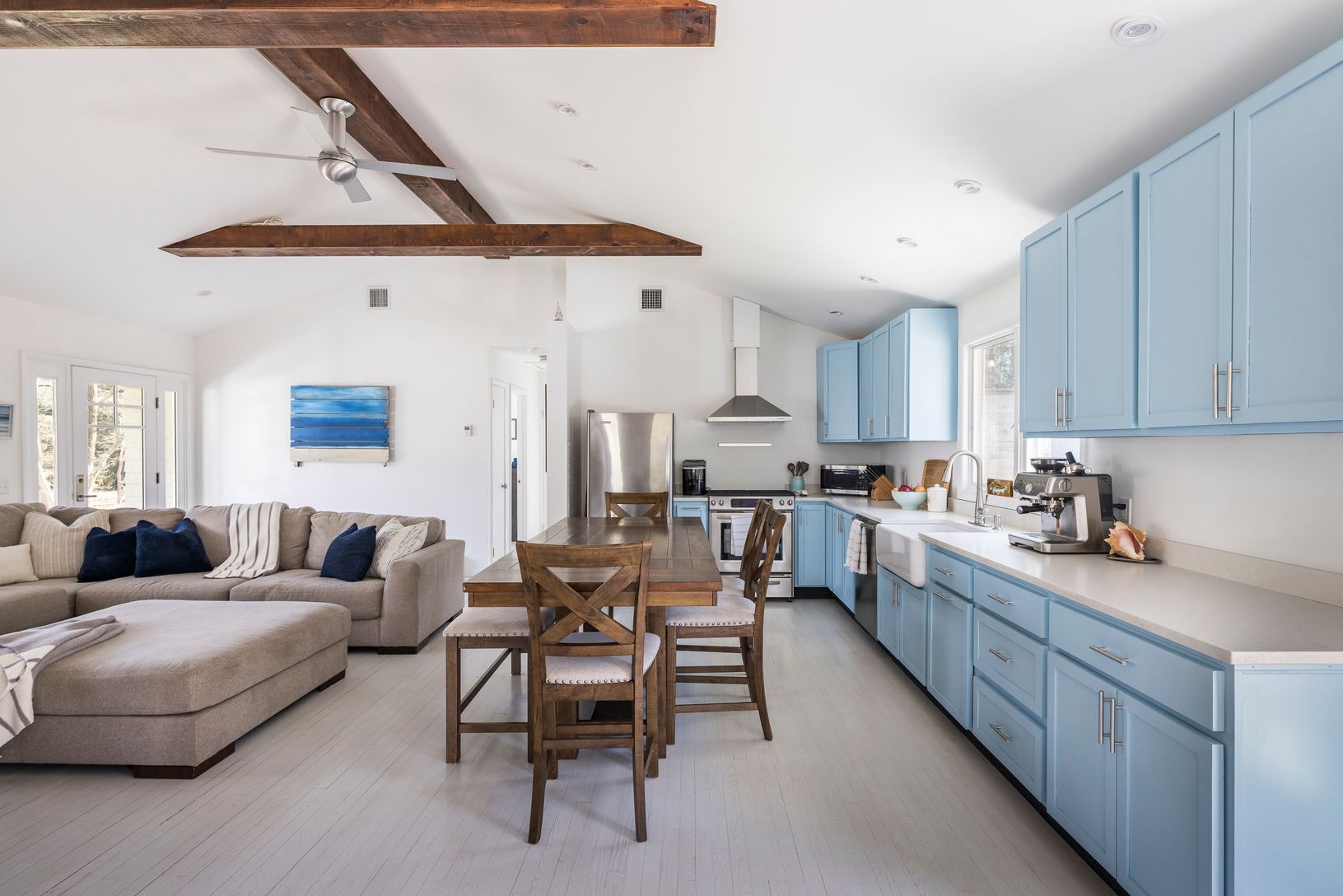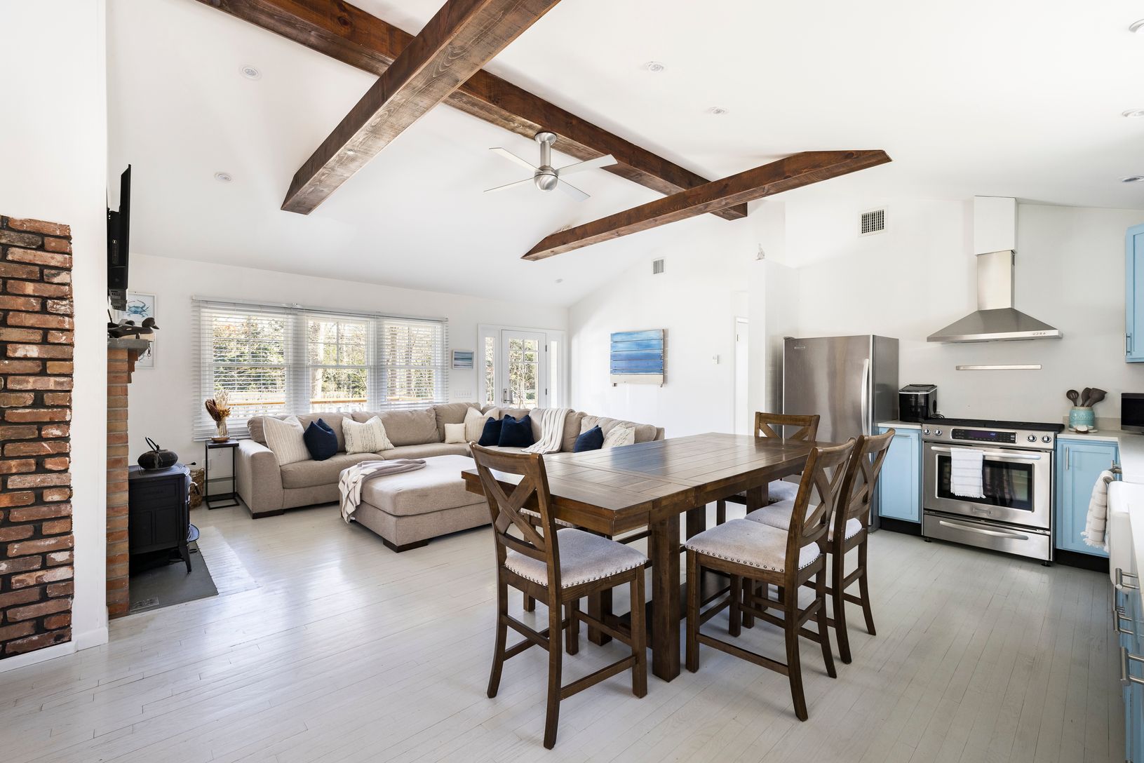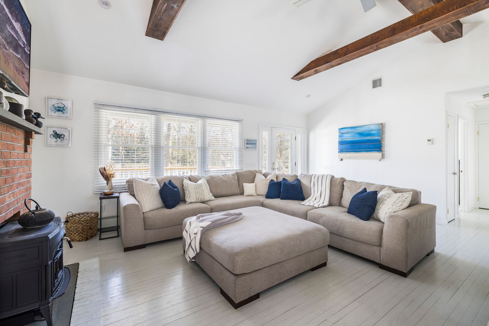 Just a stone's throw away from Sammy's Bay Beach, this captivating three-bedroom, three-bath home emerges as the quintessential summer retreat. Imagine starting your day on the inviting front porch, coffee in hand, soaking in the tranquility of the sprawling .52 acre property. Inside, the allure of the open living concept is magnified by soaring ceilings and an abundance of natural light, enhancing the cottage's recently renovated, inherently