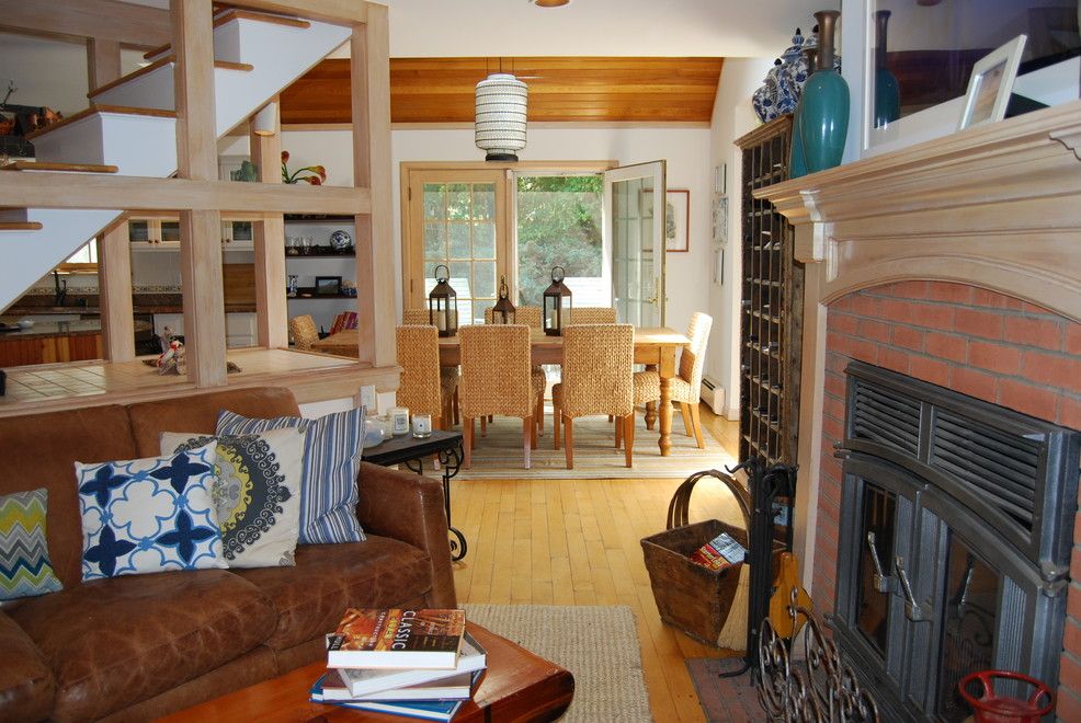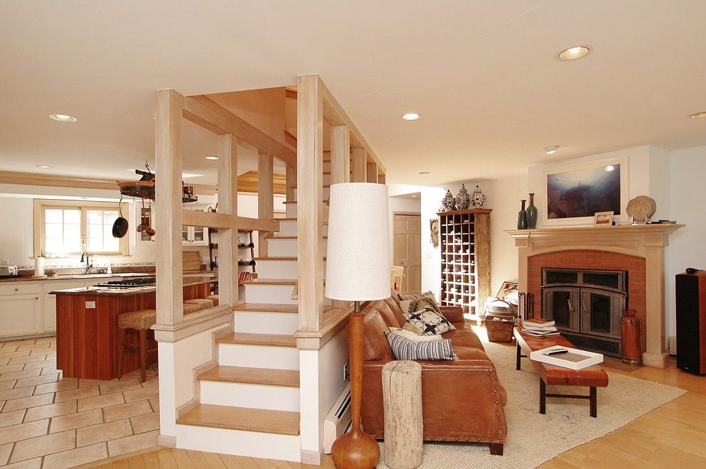This three bedroom/ three bath hilltop home in Montauk is unique.The lower level front entrance accesses a one car garage and a climate controlled, 1000+ bottle wine cellar. Climb the stairs to the main living area with a flowing kitchen/dining/great room floor plan. The main level also features a master bedroom suite, one of two, a guest bedroom and a full bathroom. A large sunny deck, accessible from both the living room and guest bedroom, a