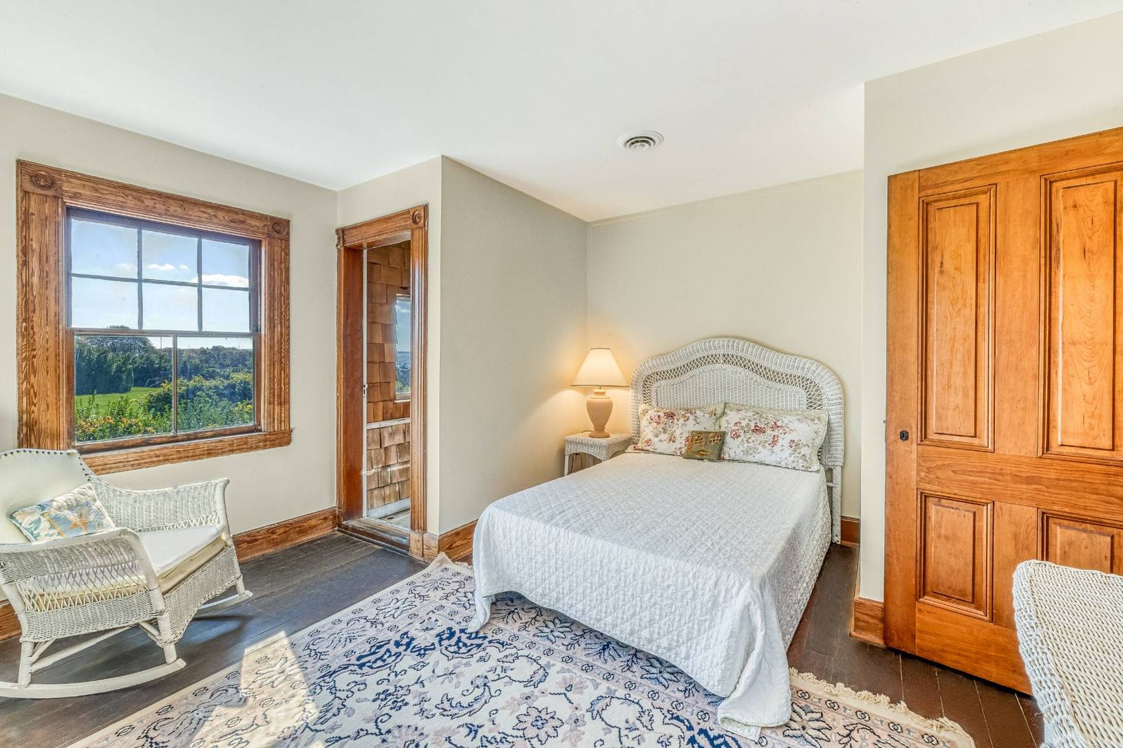 Located in one of the most sought after estate sections of Shelter Island, with western facing sunset views and green lawns stretching to sandy beaches and blue salt water, "Half Moon Beach", a vintage Queen Anne shingle style home, was built in 1899 by millionaire beer baron Peter Doelger, owner of one of the oldest established beer breweries in New York City. Tucked within tall privet hedges, the long winding driveway passes a two story 1166