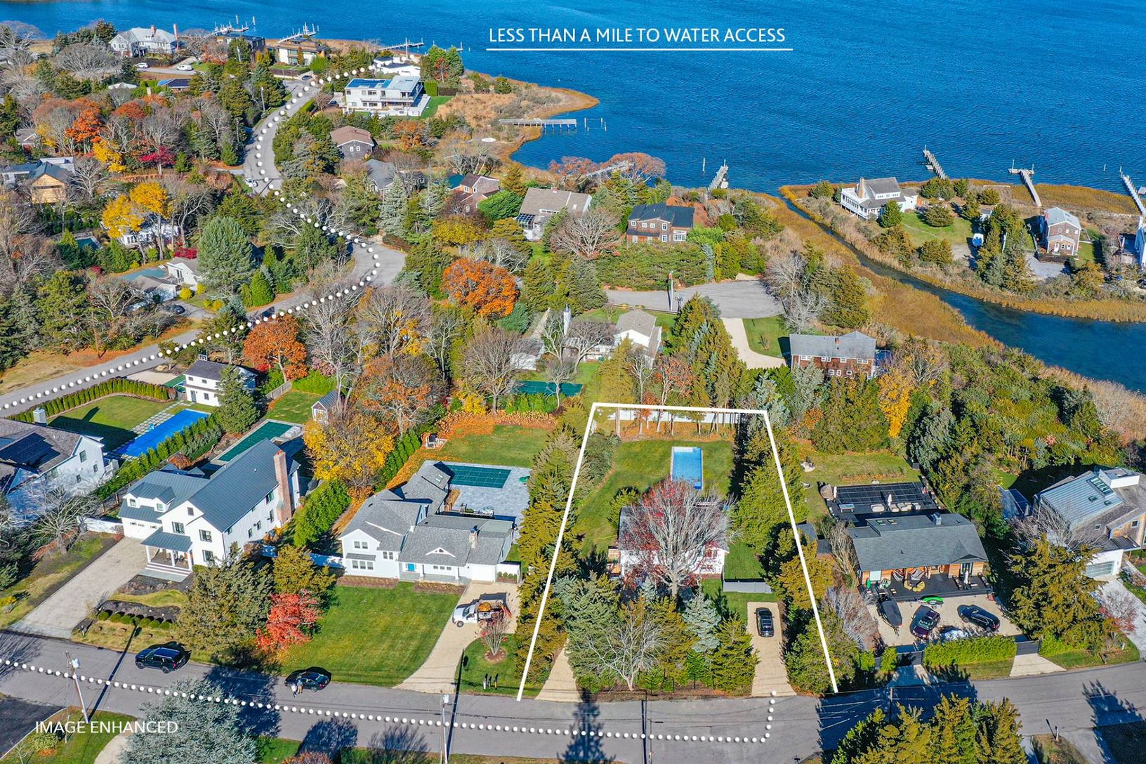This Sag Harbor home brimming with sunshine is located just minutes from Sag Harbor, Long Beach and a private community water access for perfect for boating, kayaking, paddle boarding or simply relaxing watching spectacular sunsets! This quiet, unique location offers spacious front and back lawns on a beautifully appointed large lot with mature landscaping. 4 bedrooms, 2 full baths, additional large living room on lower level with kitchen area