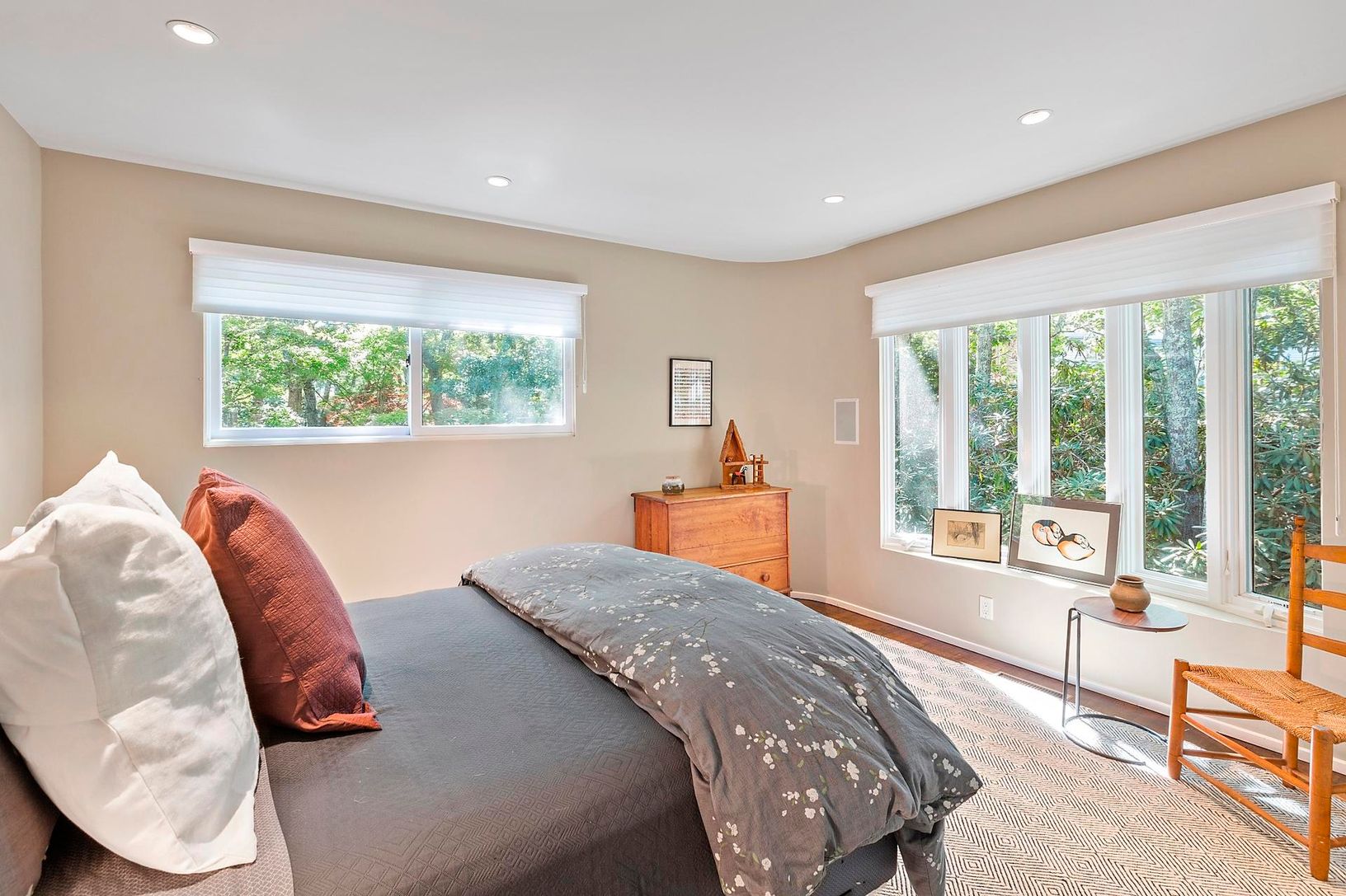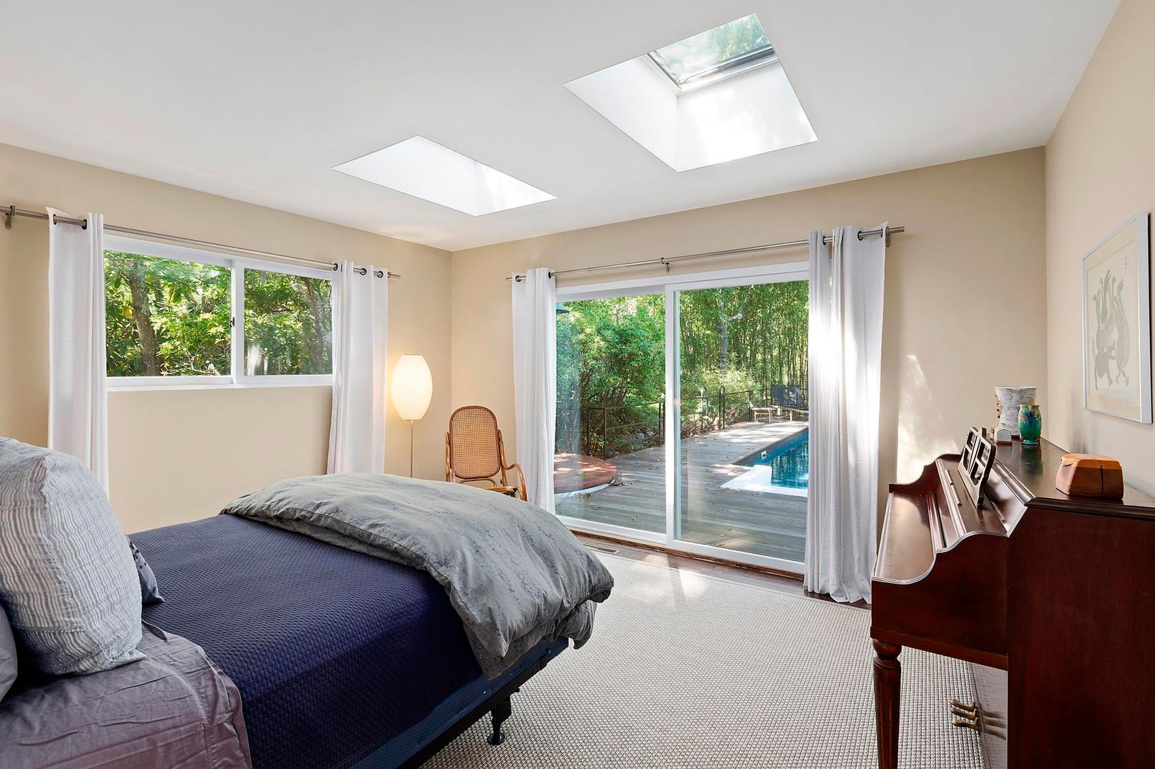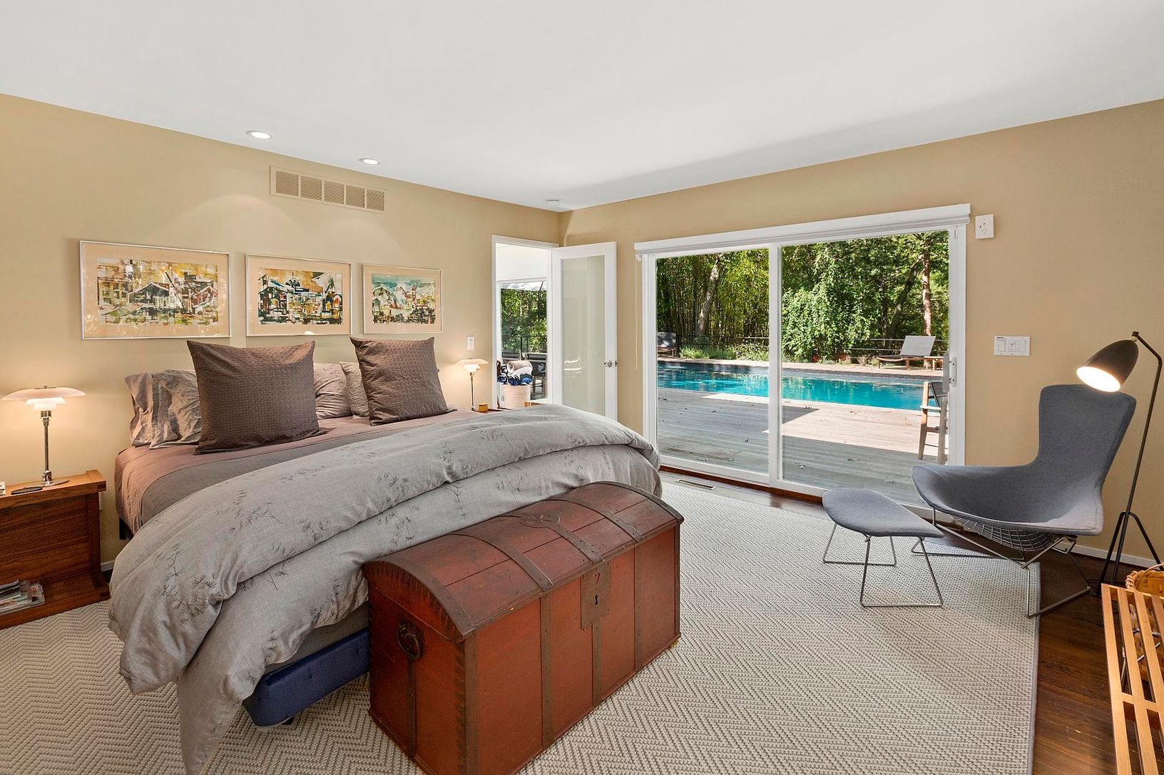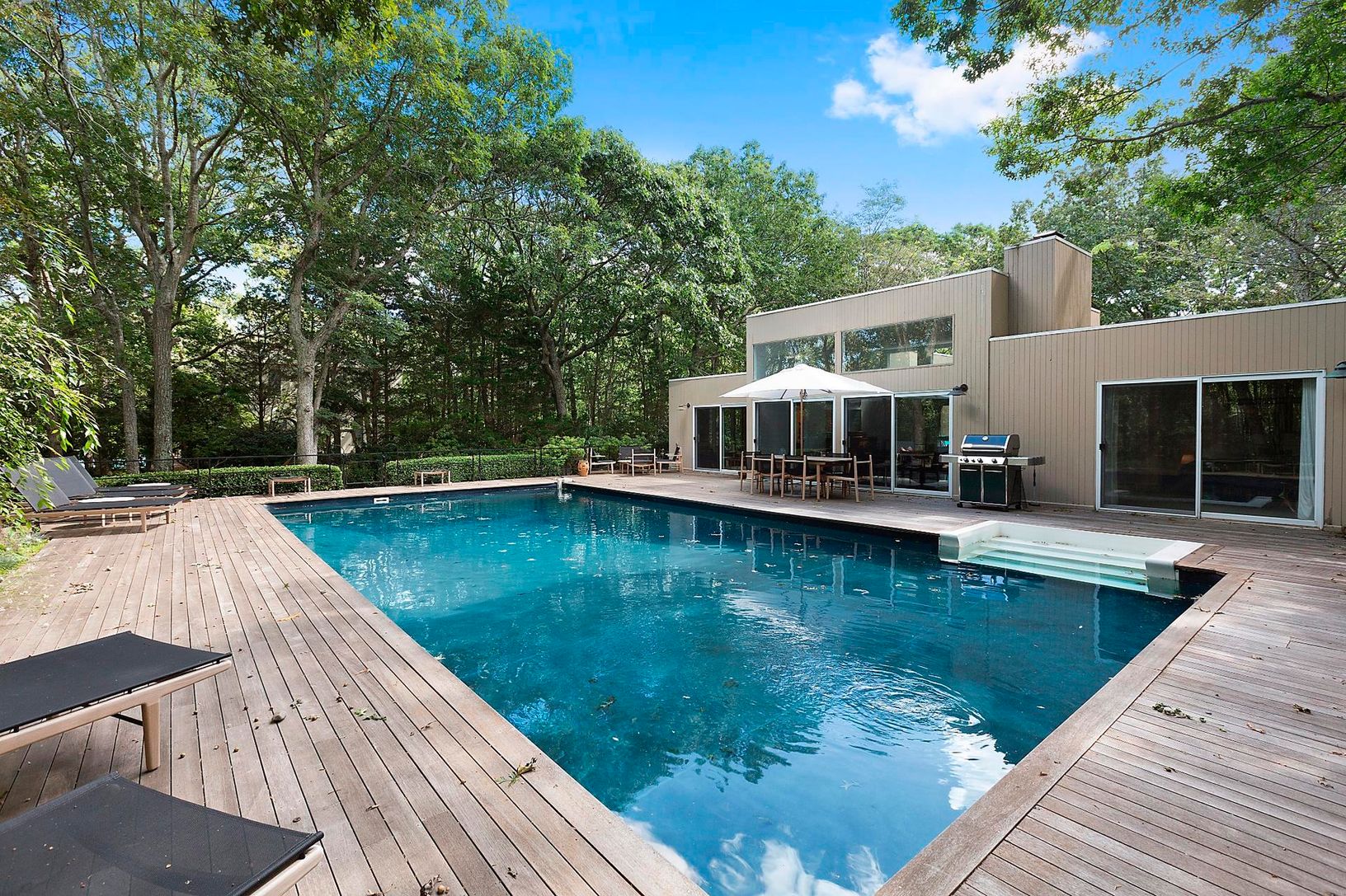 Picturesque one level 1600 +/- sq. ft. Contemporary. Recently upgraded this three bedroom and three bathroom modern yet tranquil home offers an open floor plan boasting a new kitchen an oversized great room comprised of a dining area and double height living room all bathed with beautiful natural light and flowing seamlessly out onto an expansive mahogany deck with heated pool allowing for exceptional outdoor entertaining. The lovely, natural