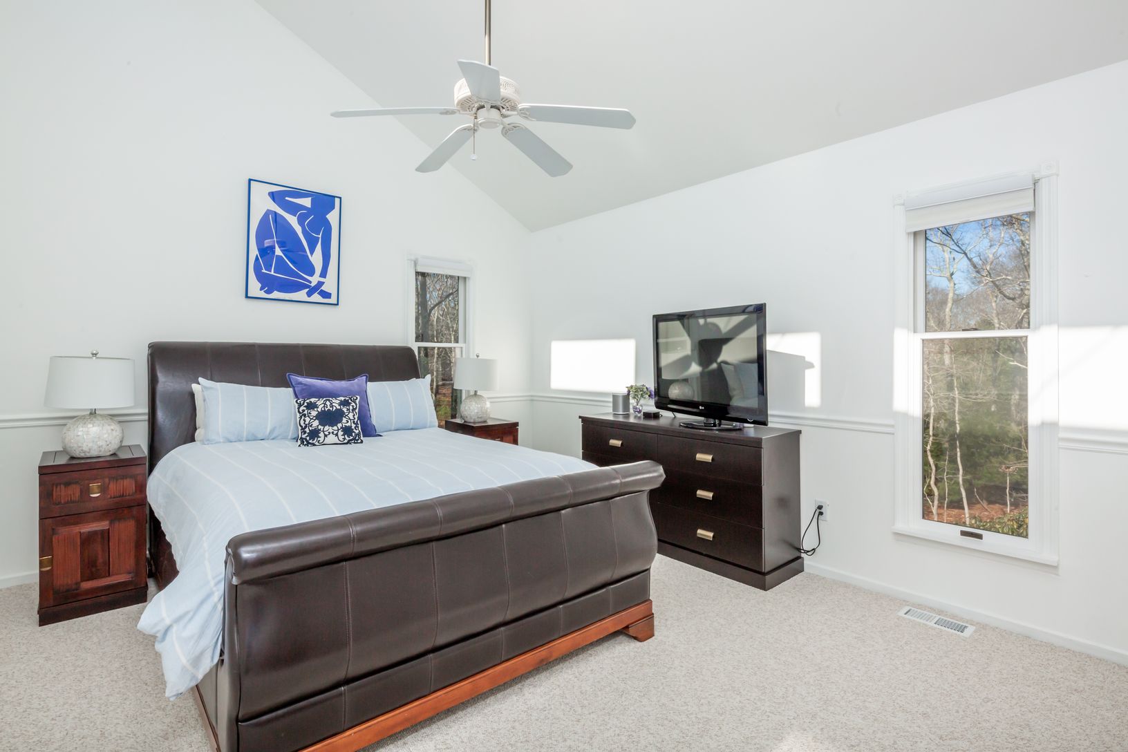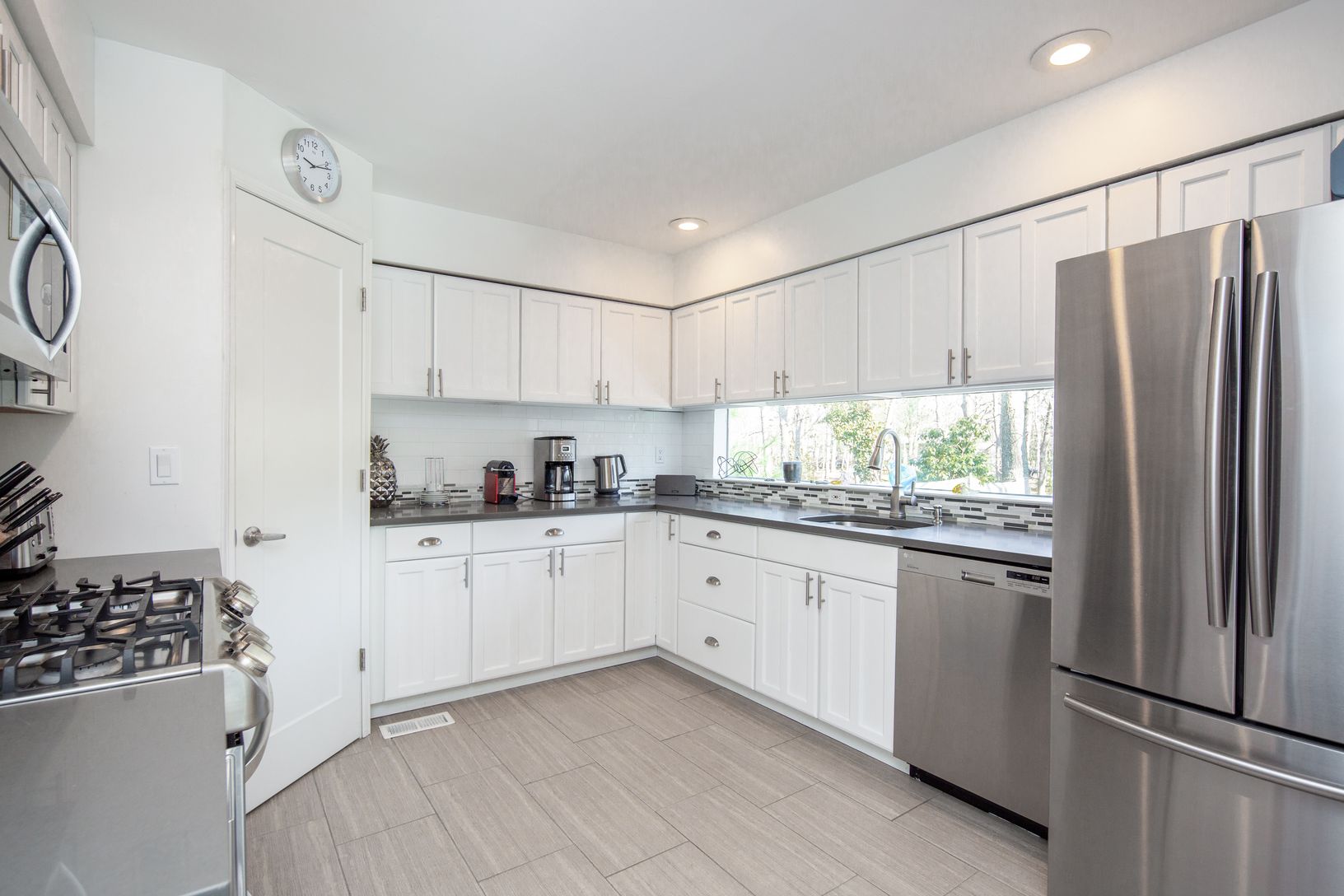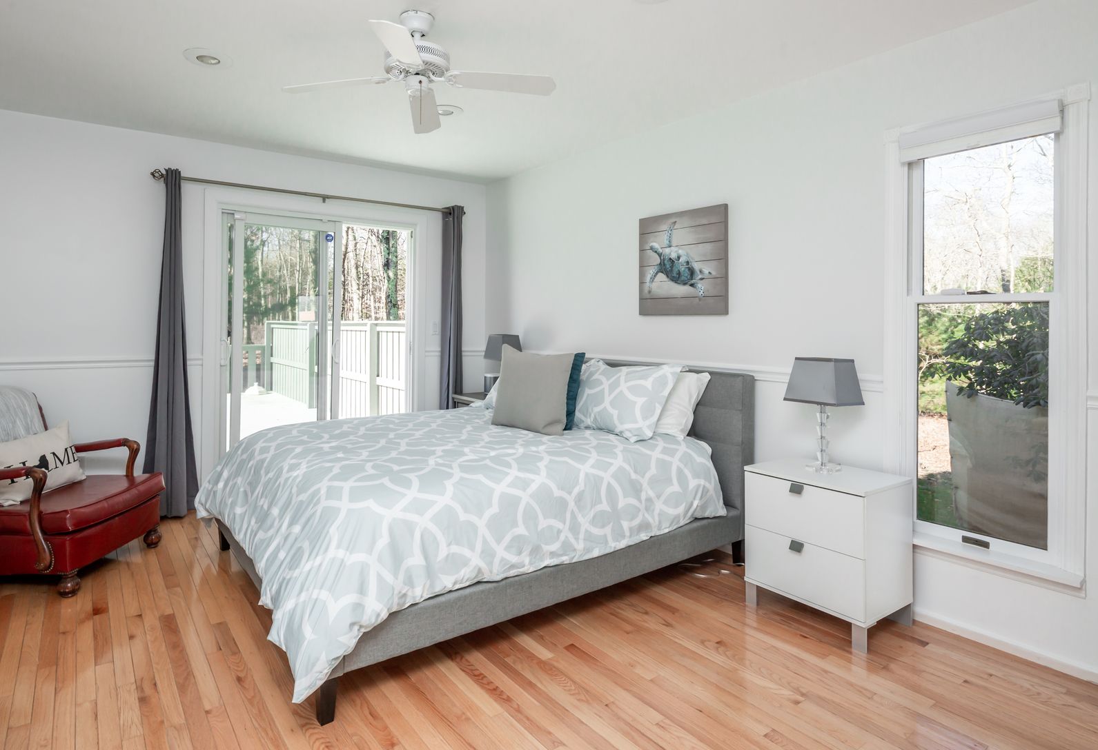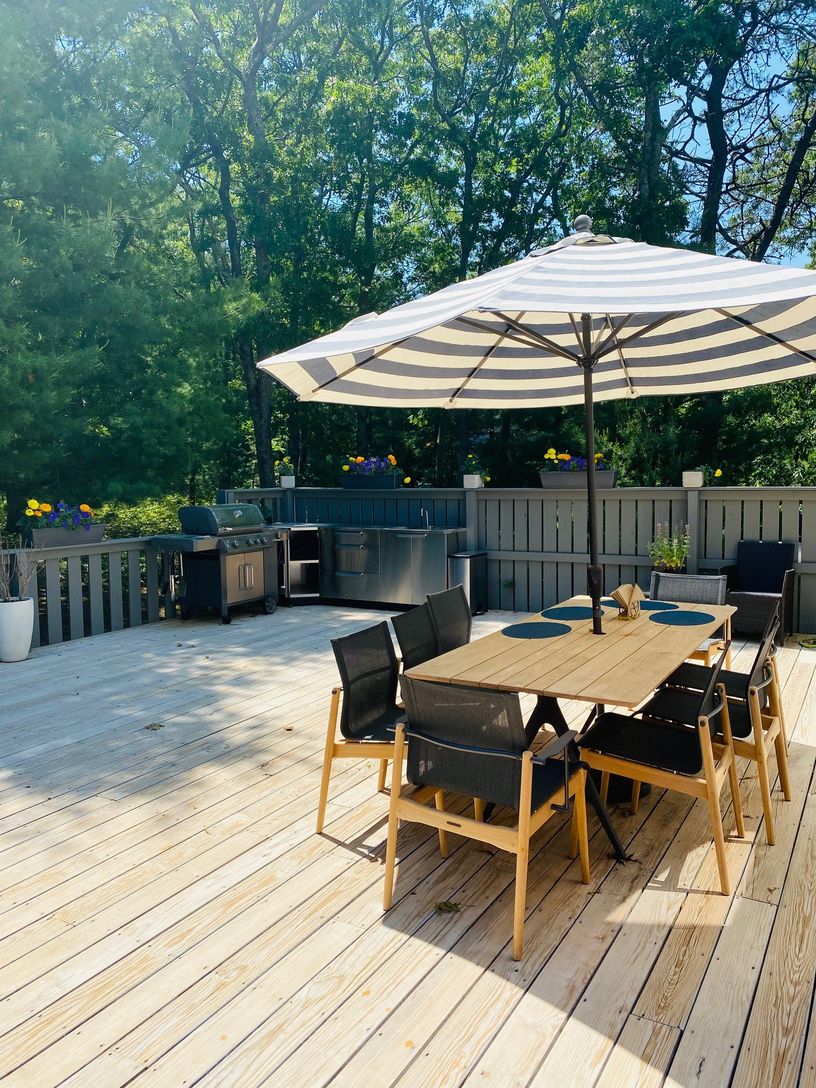 Beautifully renovated, fully furnished contemporary saltbox, offering a perfect blend of style and comfort. With four spacious bedrooms and three full baths, this home features an open-concept living room with a cozy fireplace, an eat-in kitchen, and a bright dining area. Enjoy modern amenities like central air-conditioning, an eight-zone sonos sound system, and a saltwater heated pool for ultimate relaxation. The expansive outdoor decking is