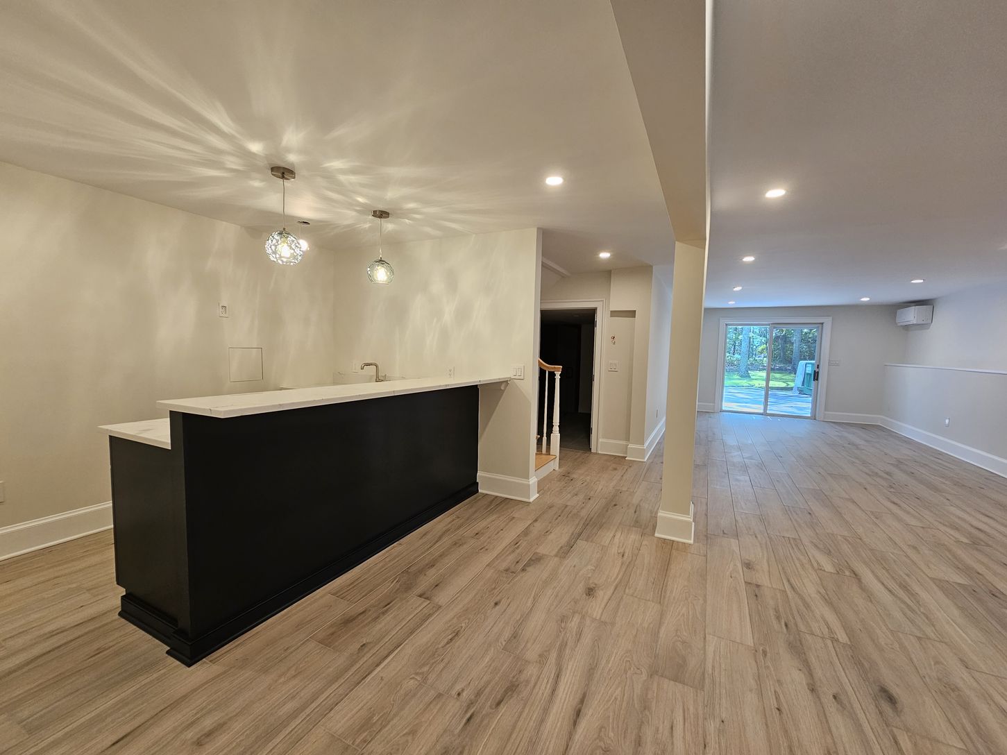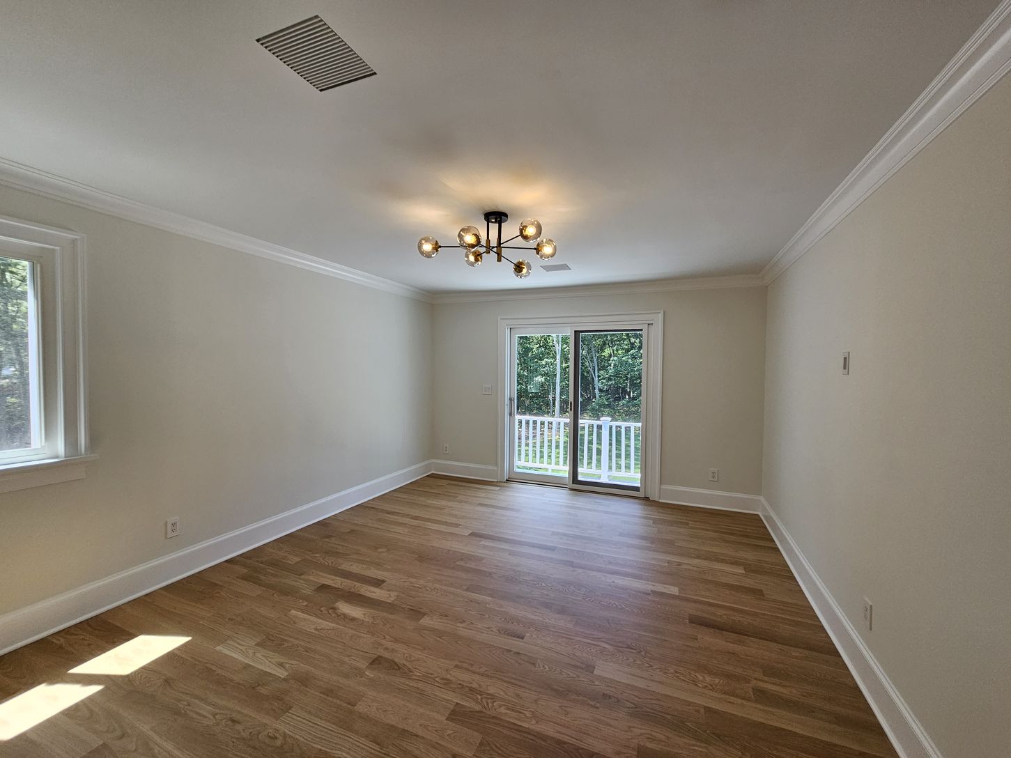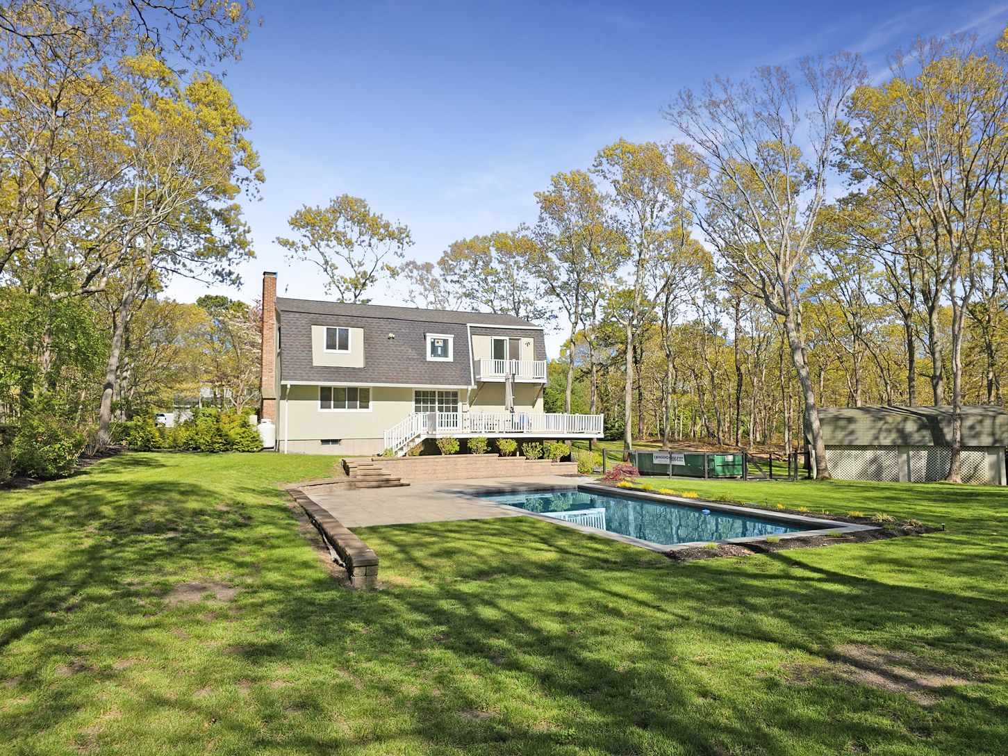 Welcome to your beautiful Hamptons home! The first floor features a sun-filled eat-in kitchen with stainless steel appliances & granite counters, a dining area with slides to a cedar deck, and a living room with w/gas fireplace & cathedral ceilings. The second floor features a master bedroom suite with a walk-in closet and balcony, 2 additional large bedrooms & a full bath. The finished lower level has a full bath, workout area, de