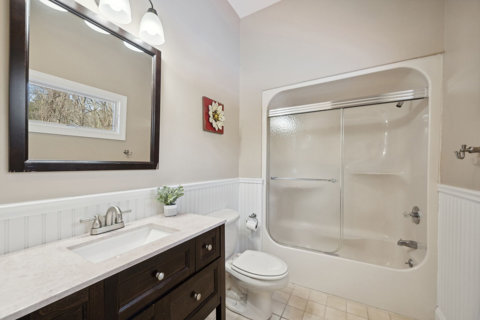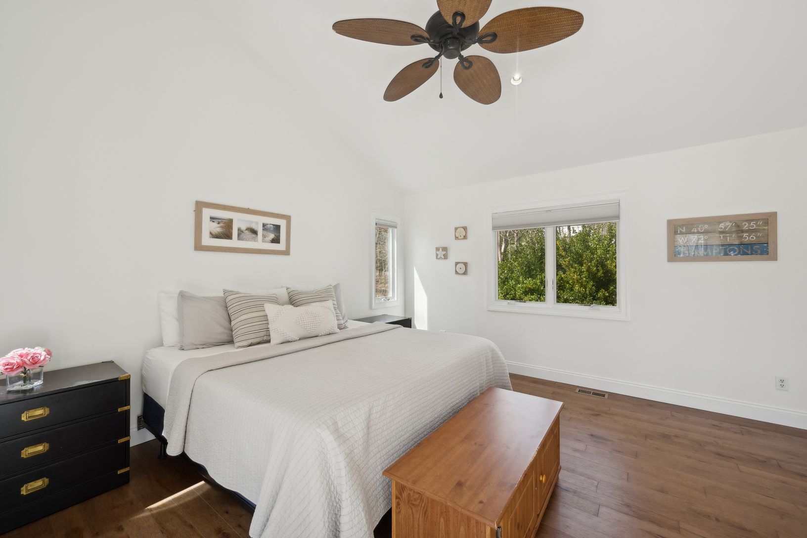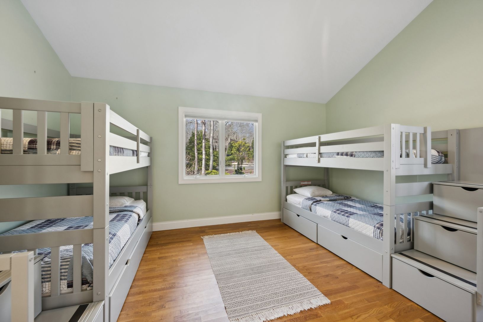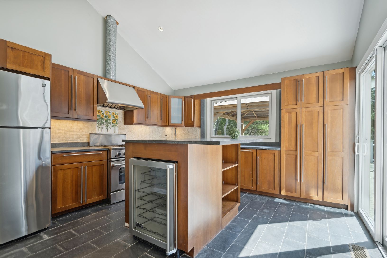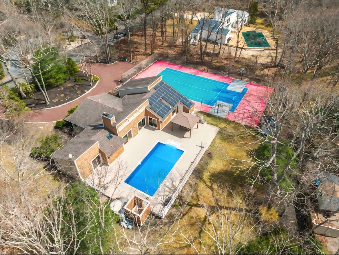 This beautiful, open floor plan, post modern 5 bedroom, 4 bath home is set on a private wooded parcel in "The Registry" development. As you enter the foyer, you are greeted by a spacious great room with high vaulted ceilings, clear story windows and several glass sliders overlooking the outdoor pool and deck entertaining area. The spacious great room, complete with a wood burning fireplace, is open to the eat in kitchen complete with an island