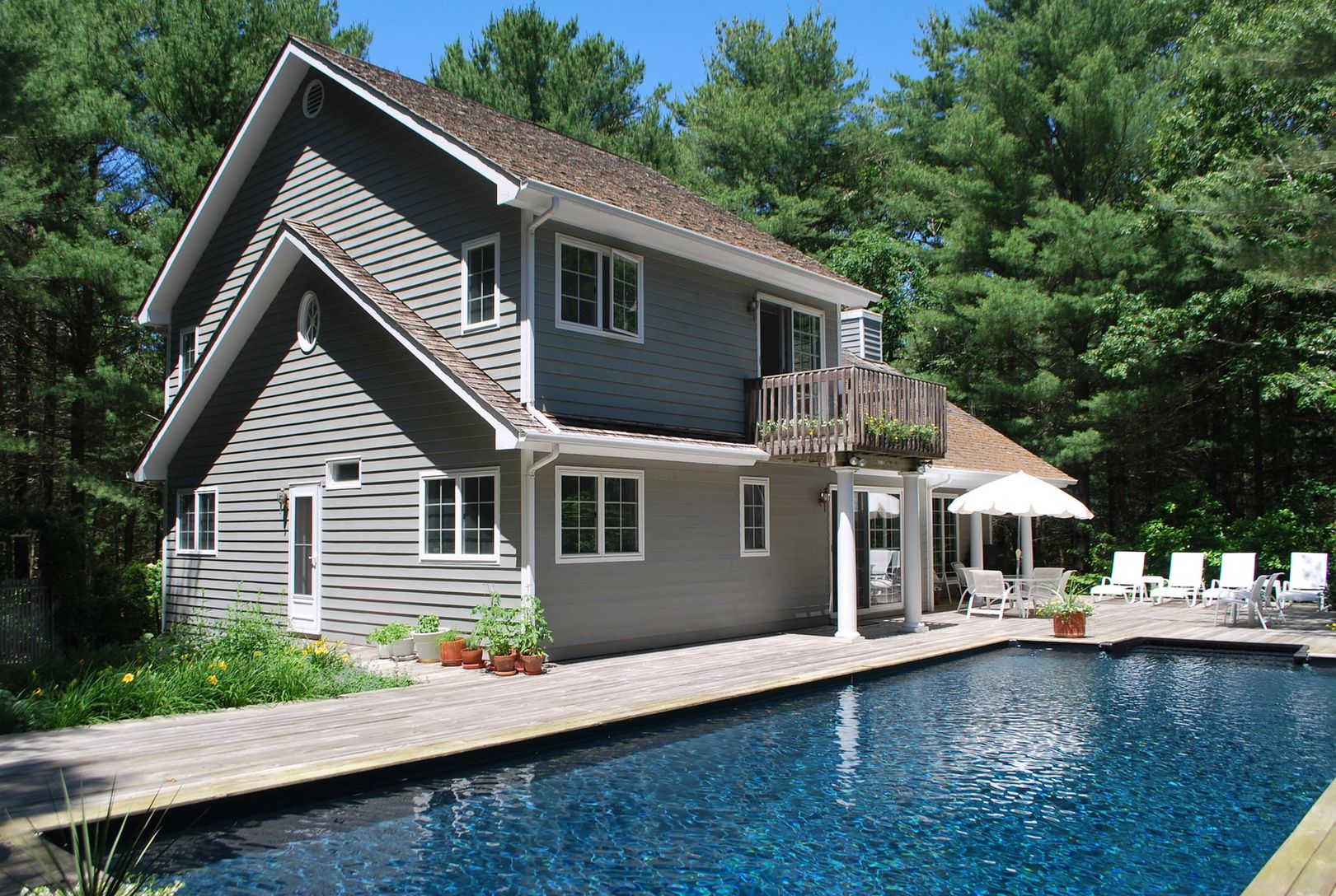 Custom designed for comfortable indoor/outdoor living, this three bedroom, three bath Post Modern is tucked away on a 1.4 acre flag lot adjacent to reserve. A cathedral ceiling living room, dining area, and modern kitchen open to large deck and heated pool. The master suite offers generous closet space, built in book shelves and balcony overlooking the grounds. There are two en suite guest bedrooms and many upgrades including granite bath an