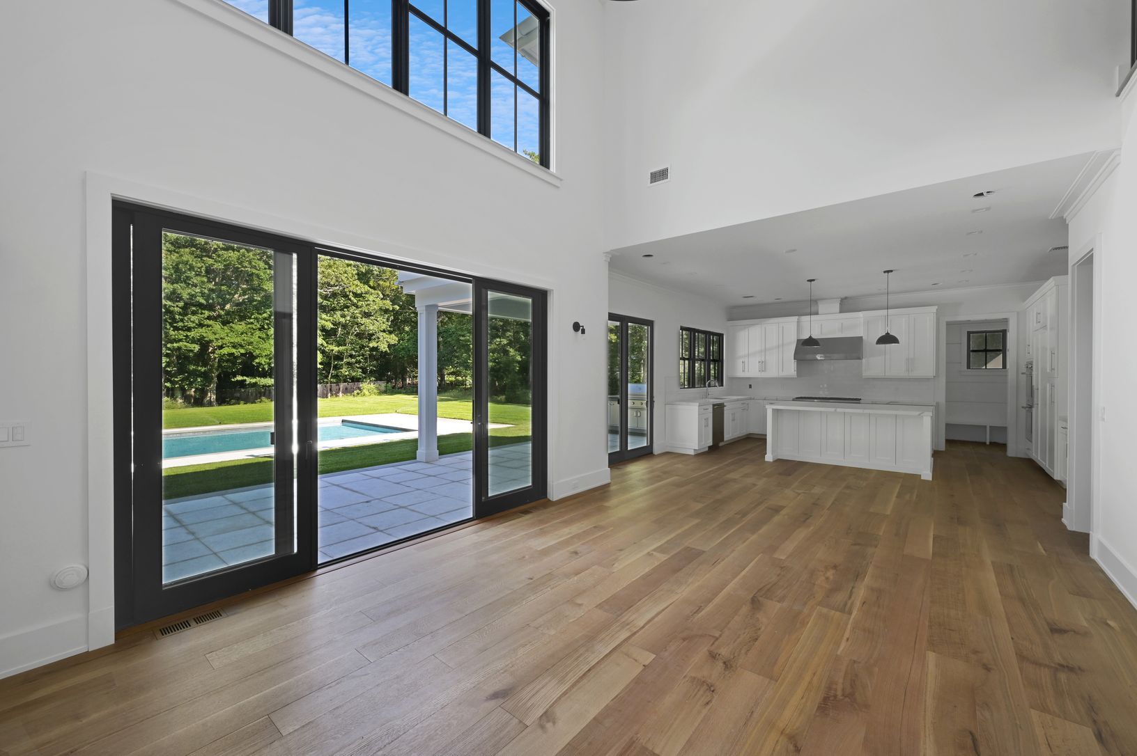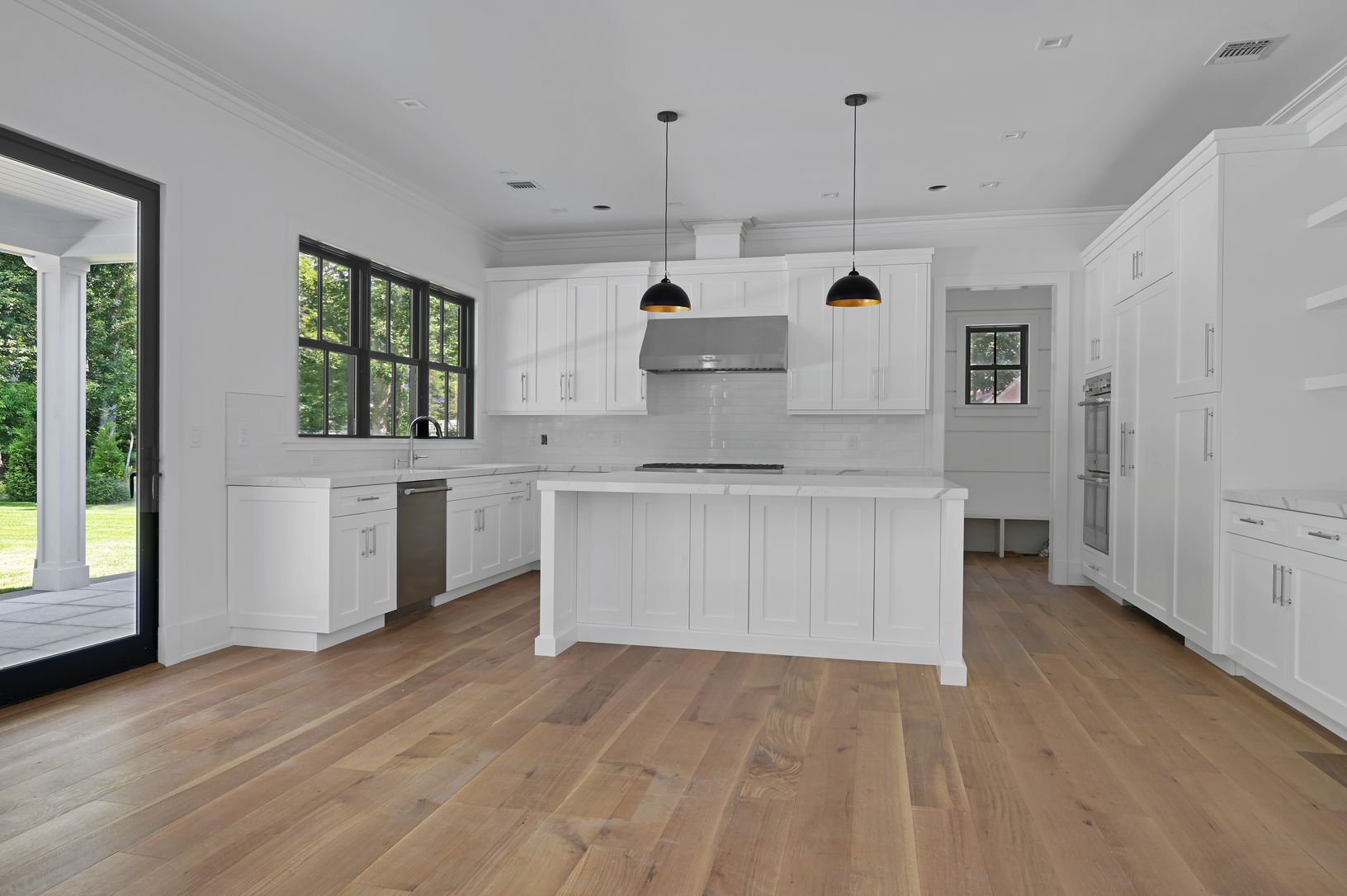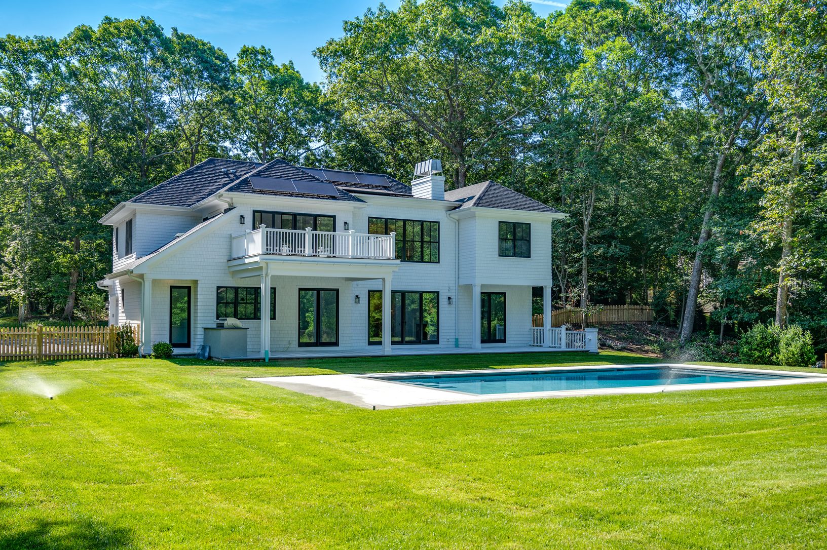 This stunning 7 bedroom 8 and 1 half bath home, with approximately 5800+/- square feet on three levels, executes the artful balance of traditional and contemporary elements. Located just 4 minutes from the heart of Southampton, this home is crafted with the finest materials and attention to detail. Gourmet kitchen with high end appliances generous cooking and prep island, and dining area which overlooks the lush yard and covered blue stone ter