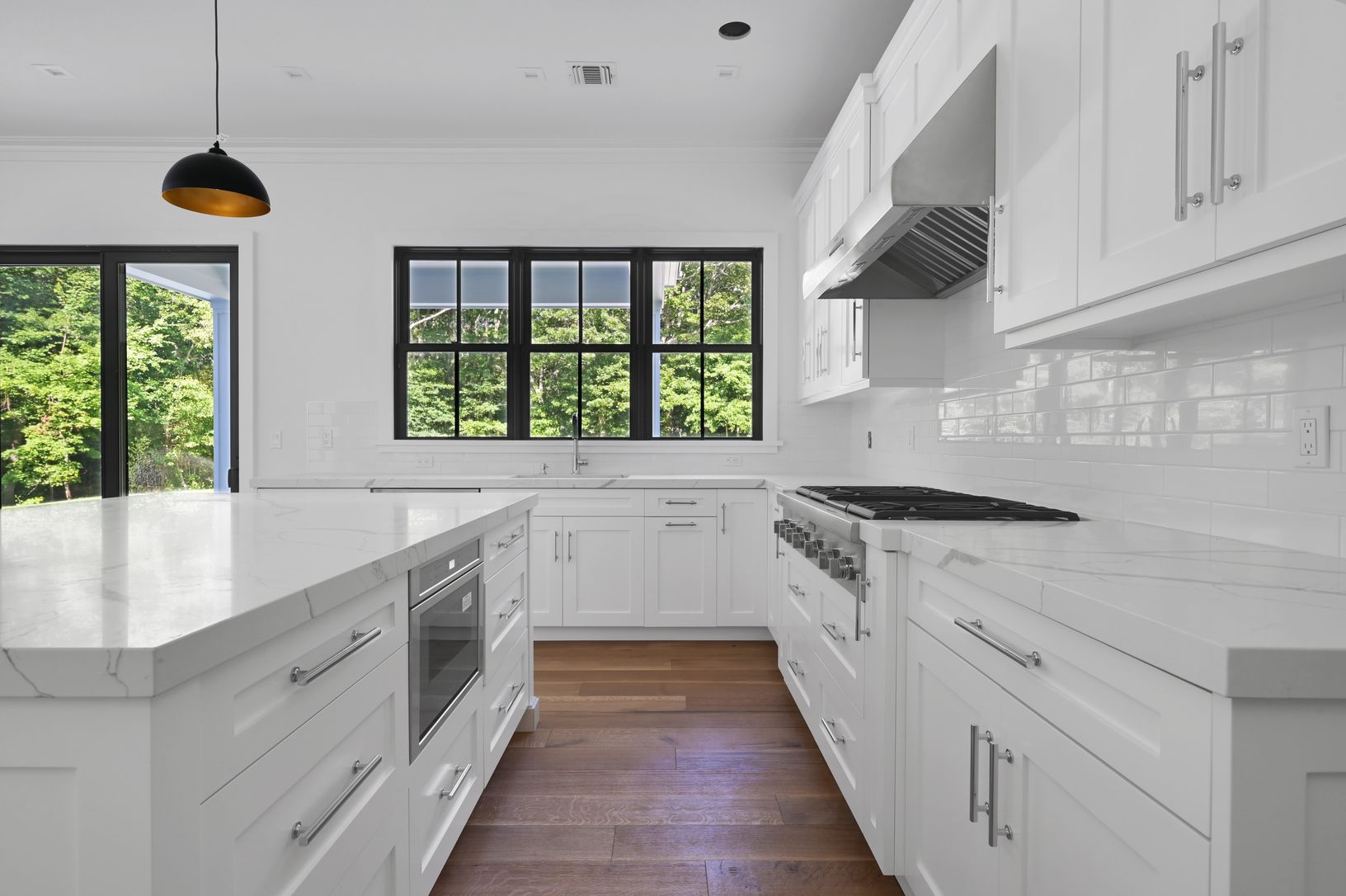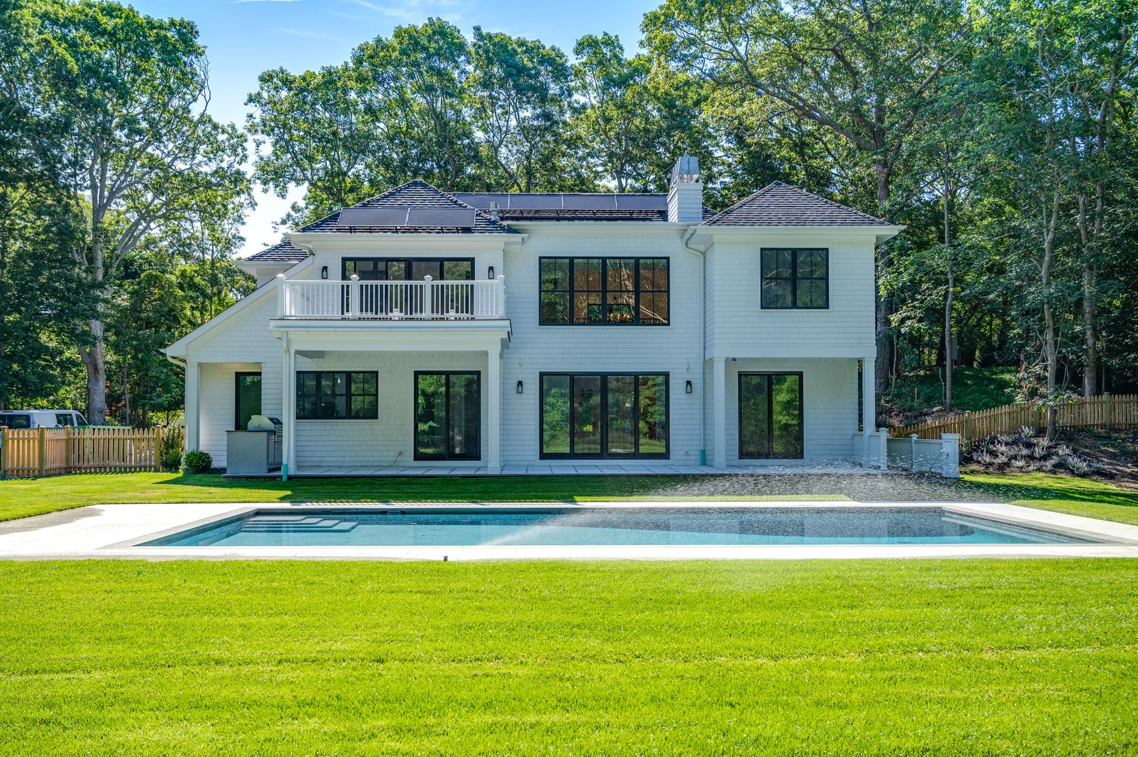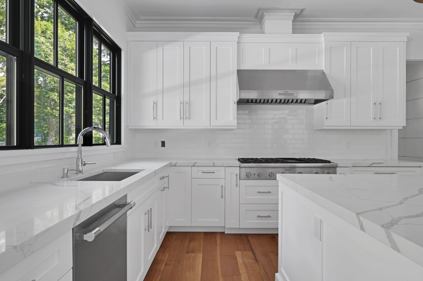 This stunning 7 bedroom 8 and 1 half bath home, with approximately 5800+/- square feet on three levels, executes the artful balance of traditional and contemporary elements. Located just 4 minutes from the heart of Southampton, this home is crafted with the finest materials and attention to detail. Gourmet kitchen with high end appliances generous cooking and prep island, and dining area which overlooks the lush yard and covered blue stone ter