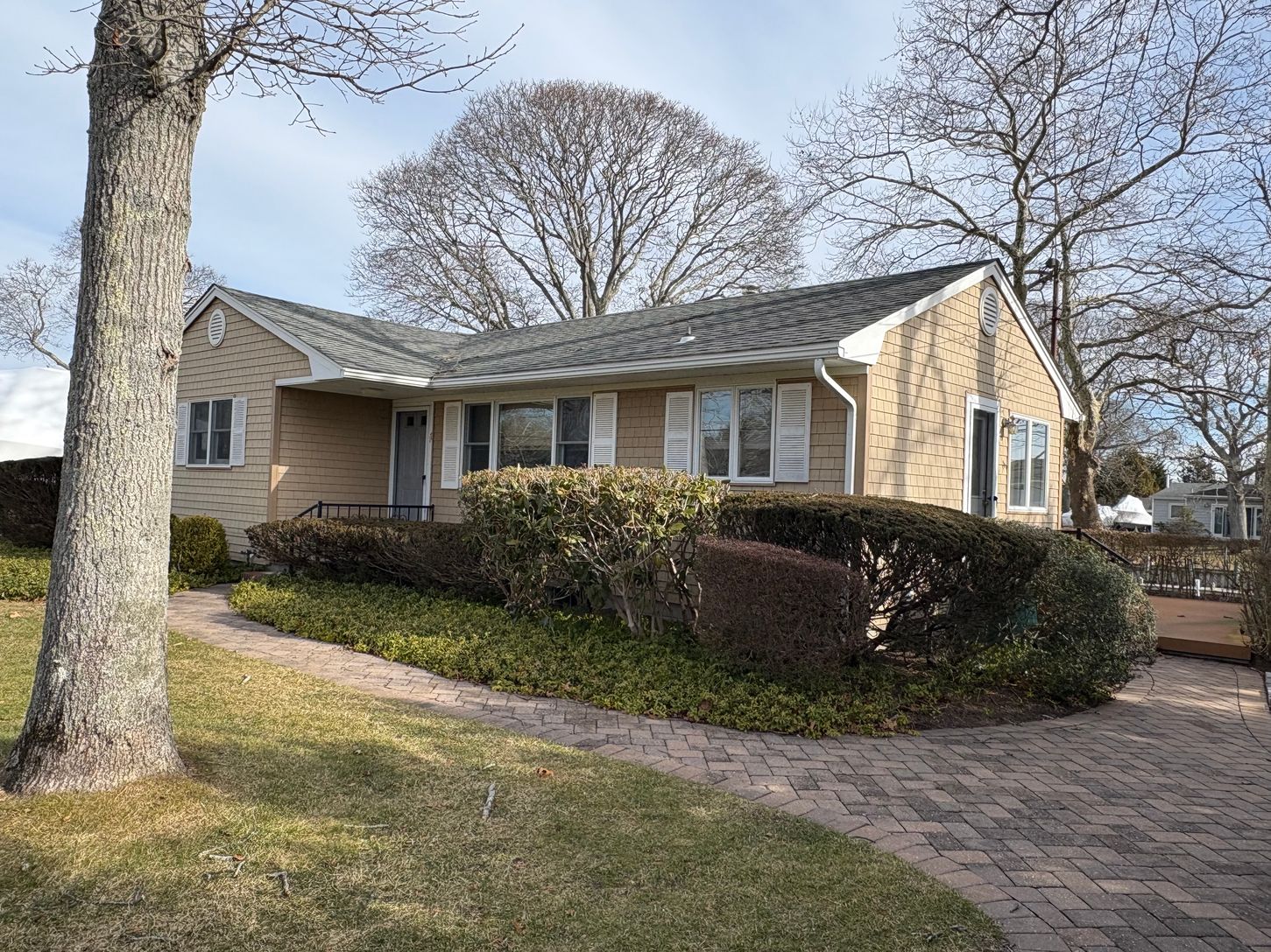 Charming 3 bedroom, 2 bath ranch located in the private water front community of Shinnecock Shores. Private beaches & playground are yours to enjoy. There is a floating dock for your boat and a large deck. Full unfinished basement, irrigation & paver driveway add to the beauty of this wonderful home.