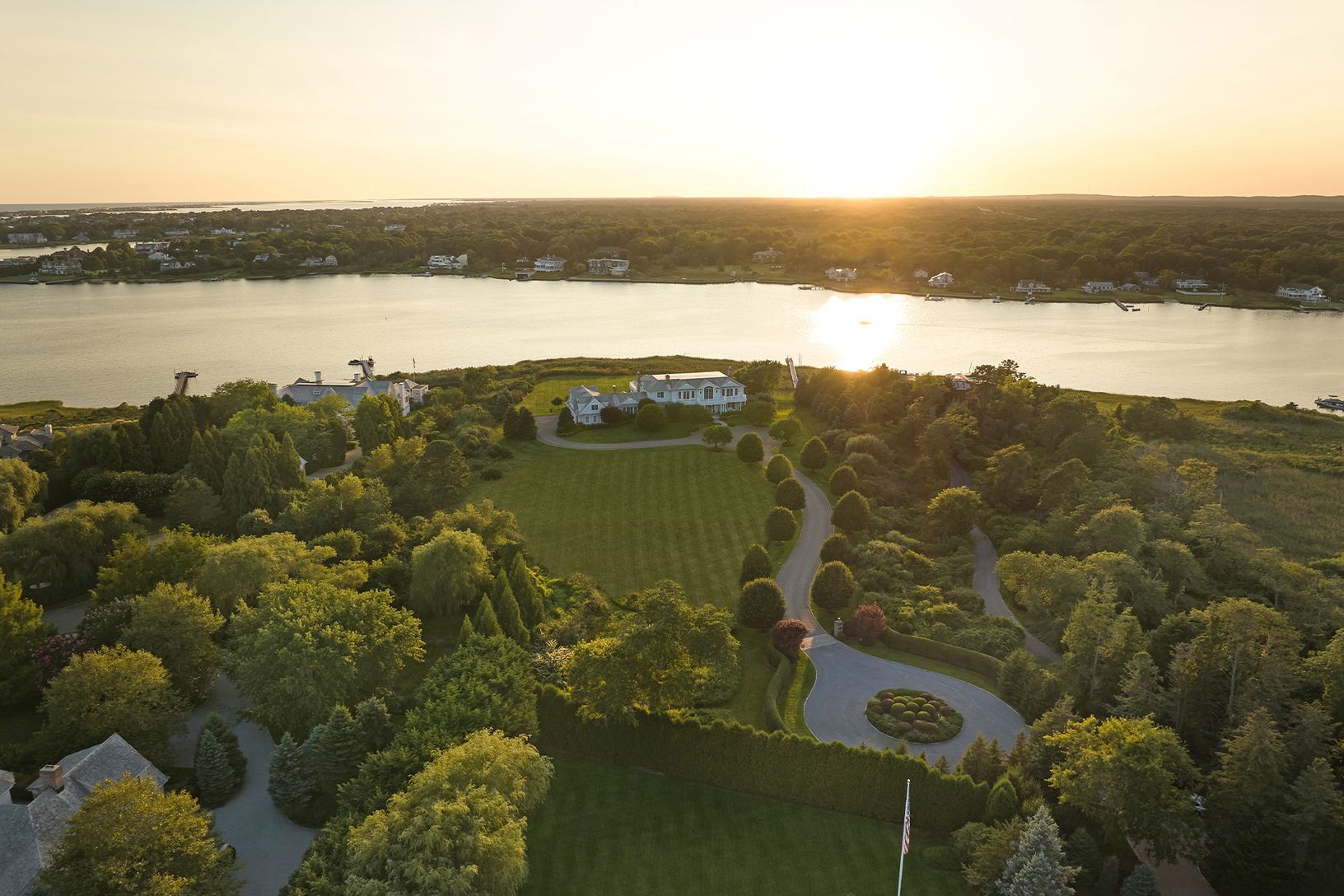 Nestled along the tranquil shores of Quantuck Bay, this exceptional waterfront estate spans 5.81 acres and comprises two single and separate lots. It boasts 350' of bulkheaded frontage +/- and offers 10,100 SF+/- of well-appointed living space, featuring 7 bedrooms, 8 full and 1 half bathrooms. Additionally, it includes a private dock, heated