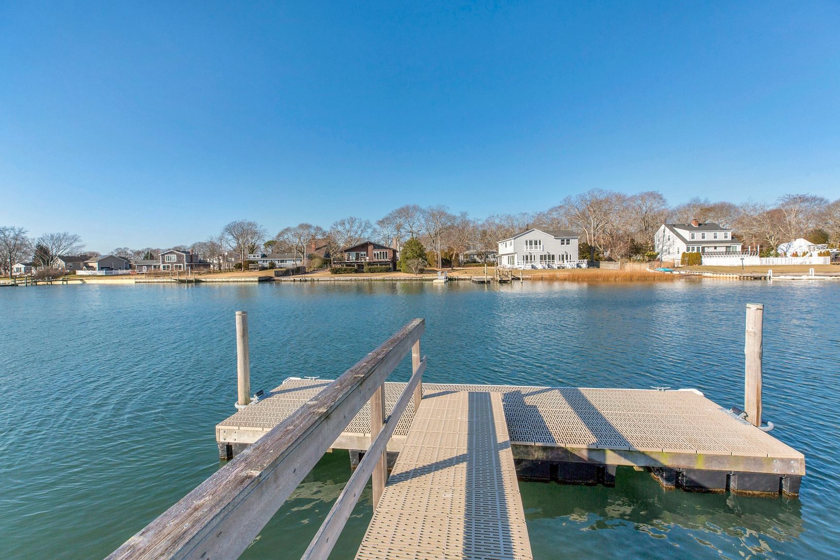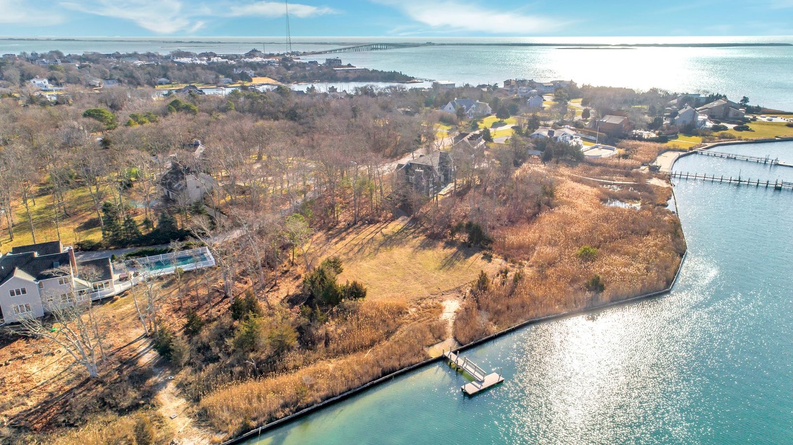 Waterfront. One of a kind, Scandinavian themed Modern Barn. Just 2.5 driven miles from Ponquogue Beach quietly nestled at the end of a very private cul de sac. The plans included in the sale of this 1 acre waterfront lot with a deep water dock are for an approx 5200 square ft. 6-bedroom home designed by Mojo Stumer. The lot is South of the Highway on Wells creek - a deep water estuary fed by the Shinnecok Bay and will face West where you can t