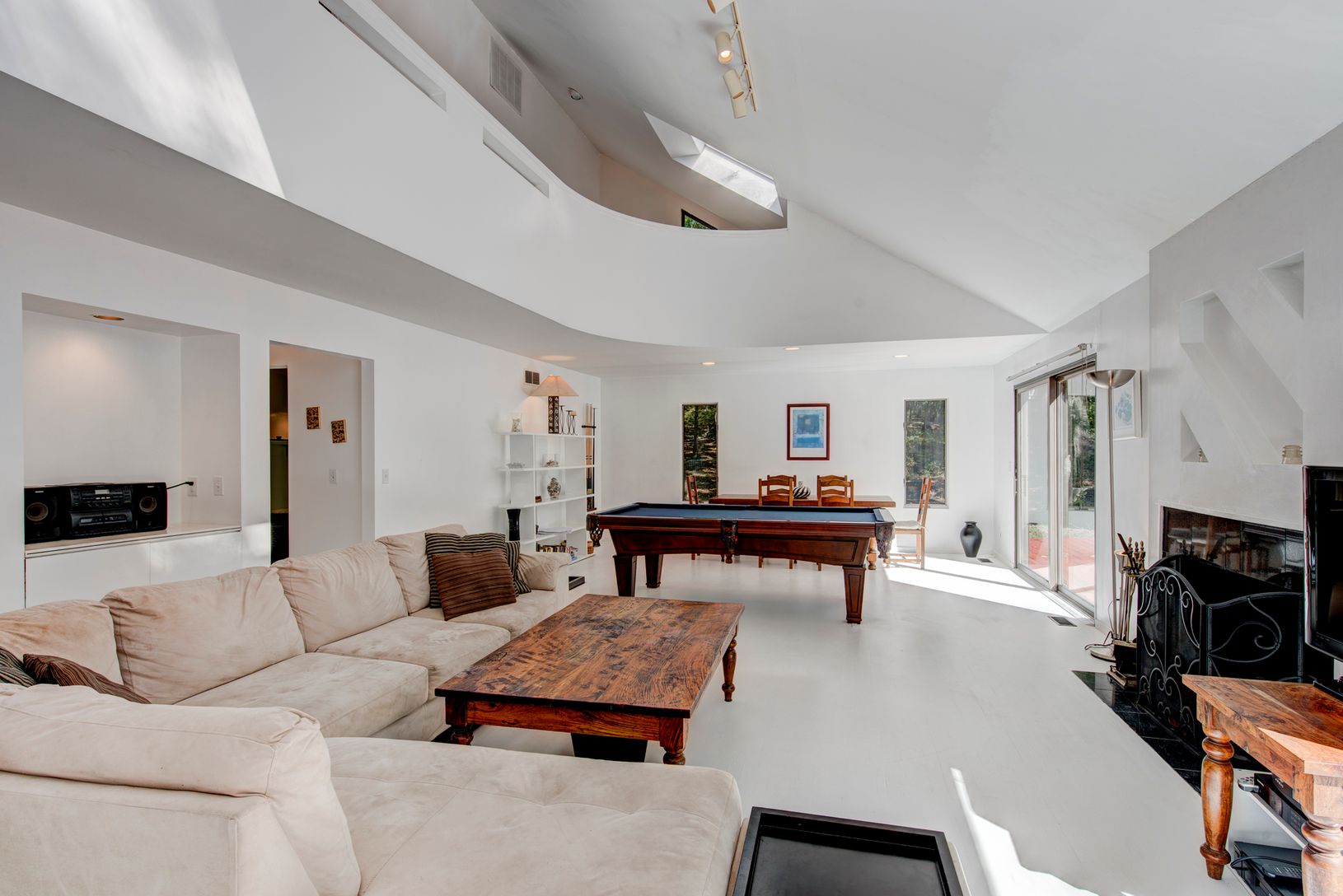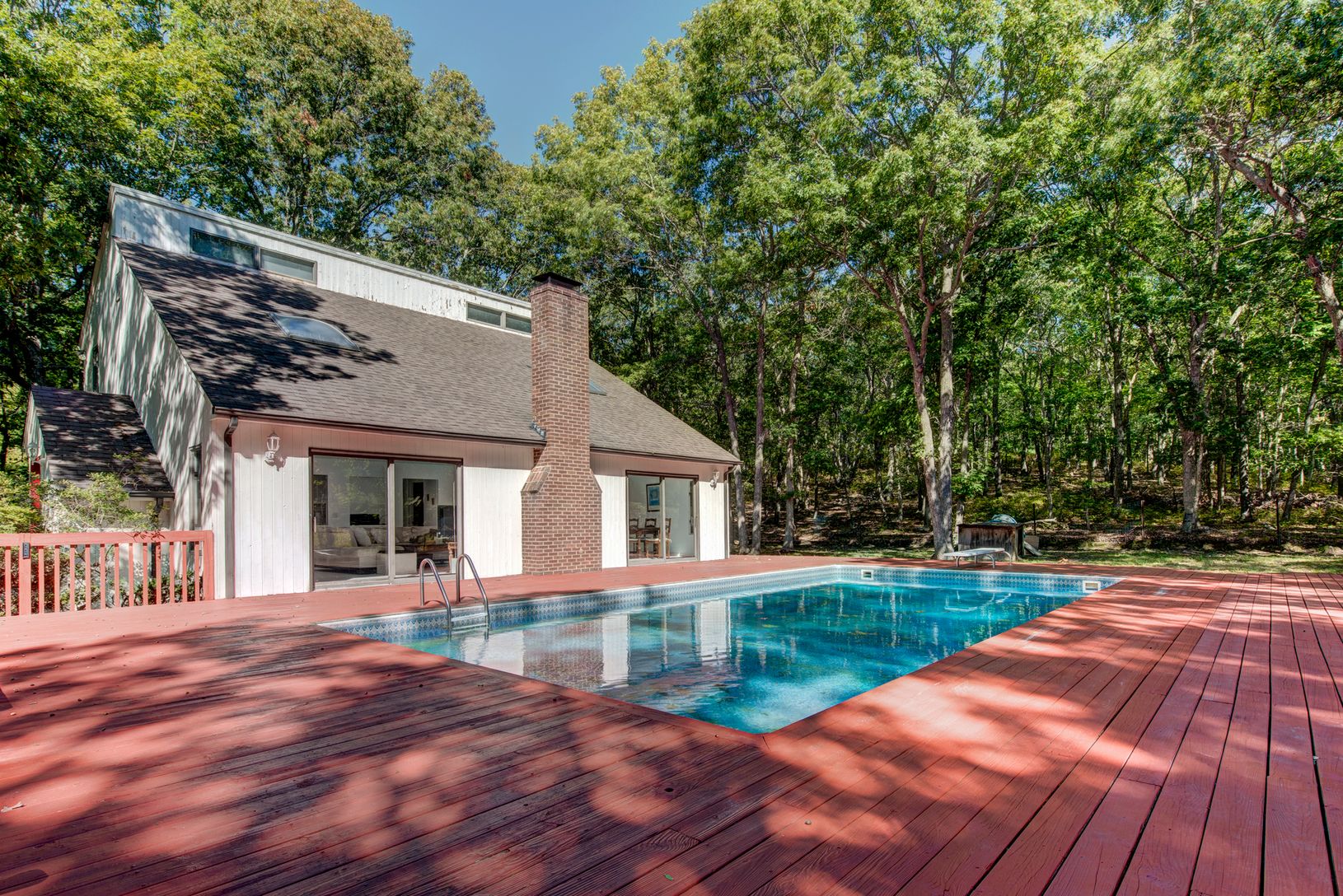 1.6 acres of coveted seclusion on a deep and quiet flag lot. Bright contemporary with 3 bedrooms, 2 baths and beautiful pool in Southampton. Crisp white interiors focus on open area great room with skylight, cathedral ceilings and fireplace. The generous floor plan opens onto the pool and expansive decking areas. Large eat-kitchen with all new appliances in 2009. Central air conditioning, outdoor shower and room for tennis. This is the perfect