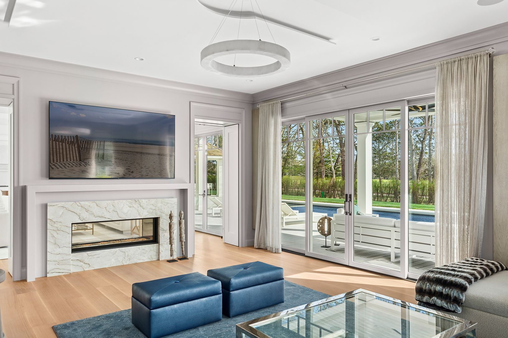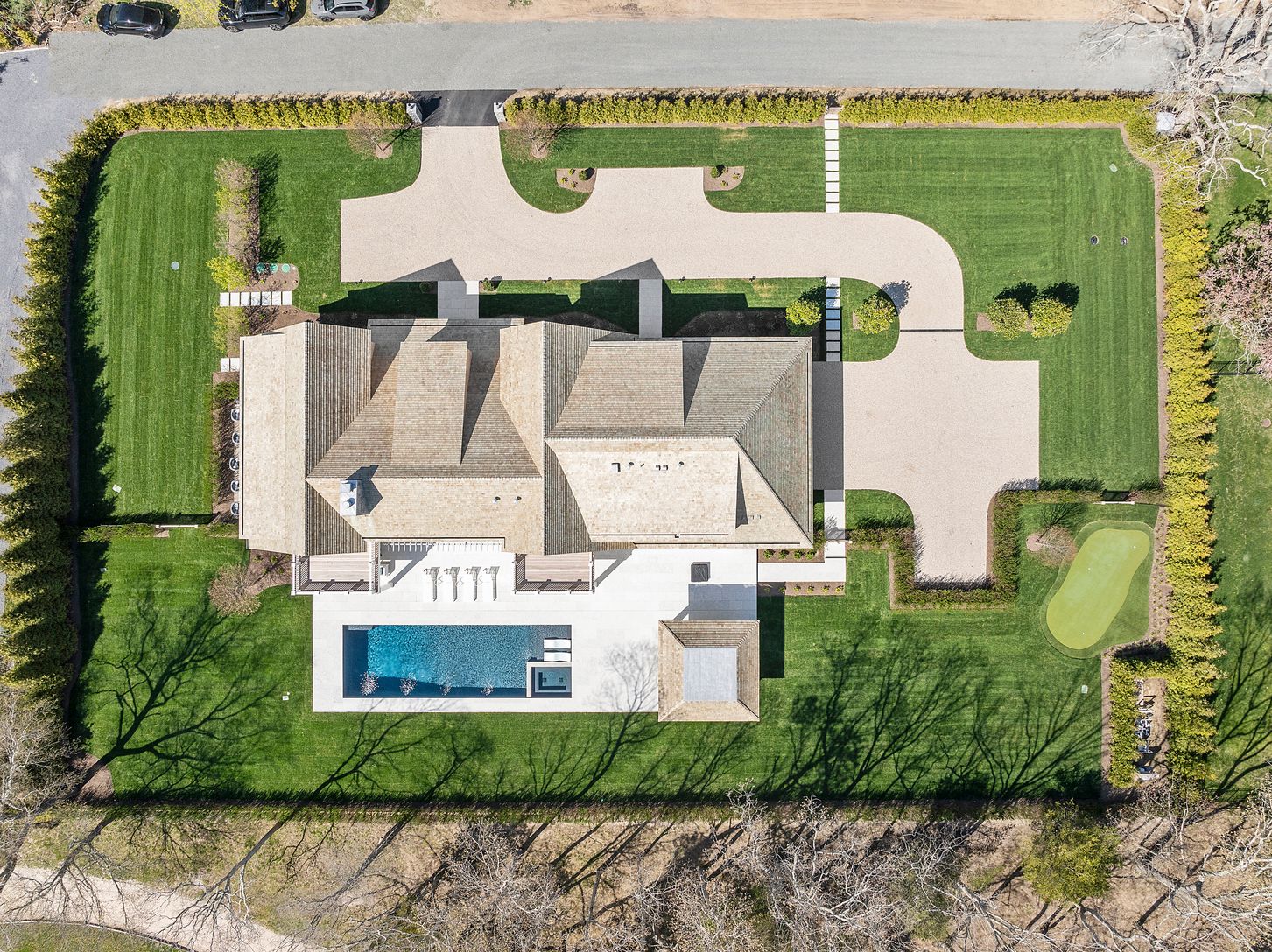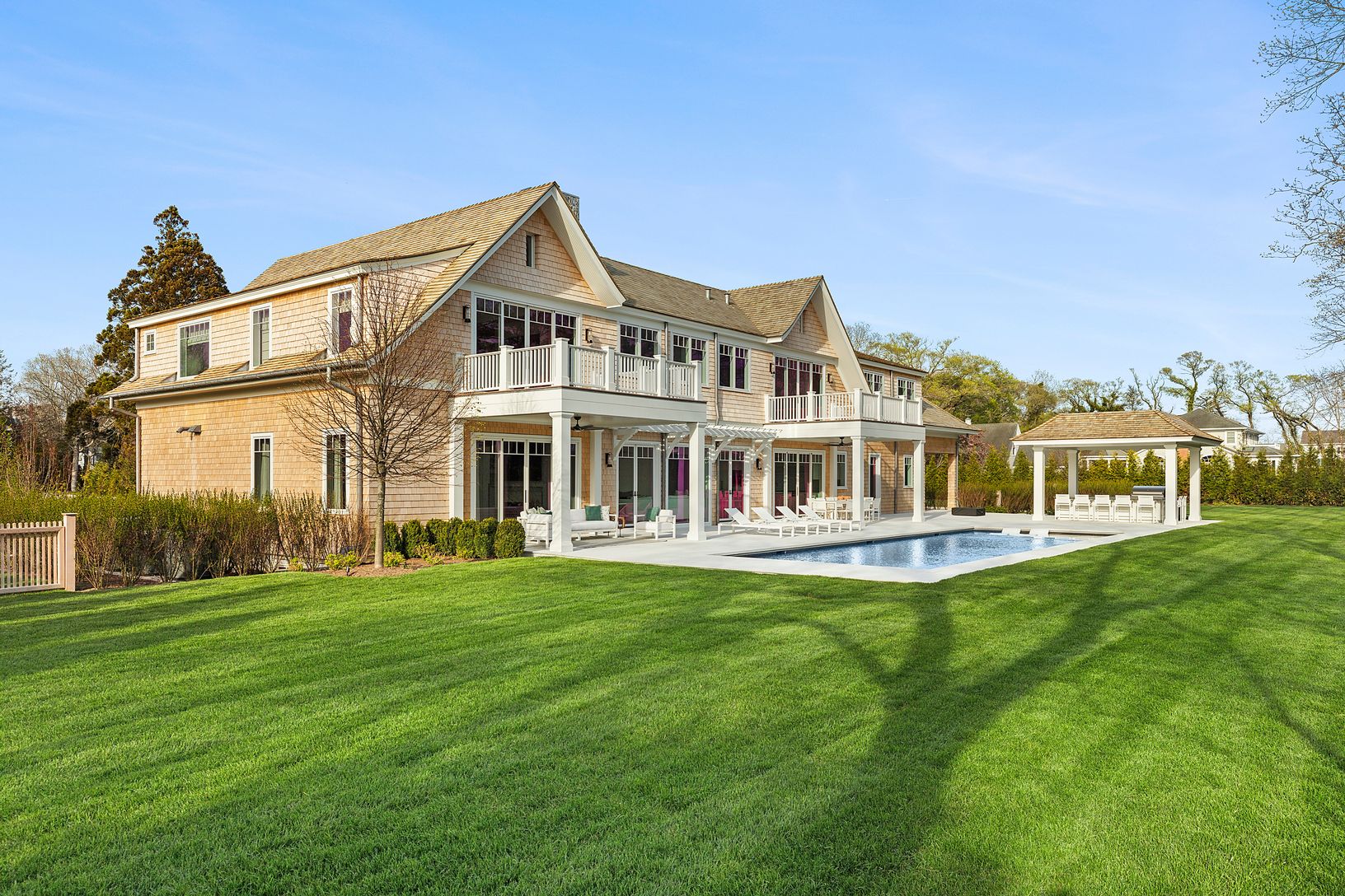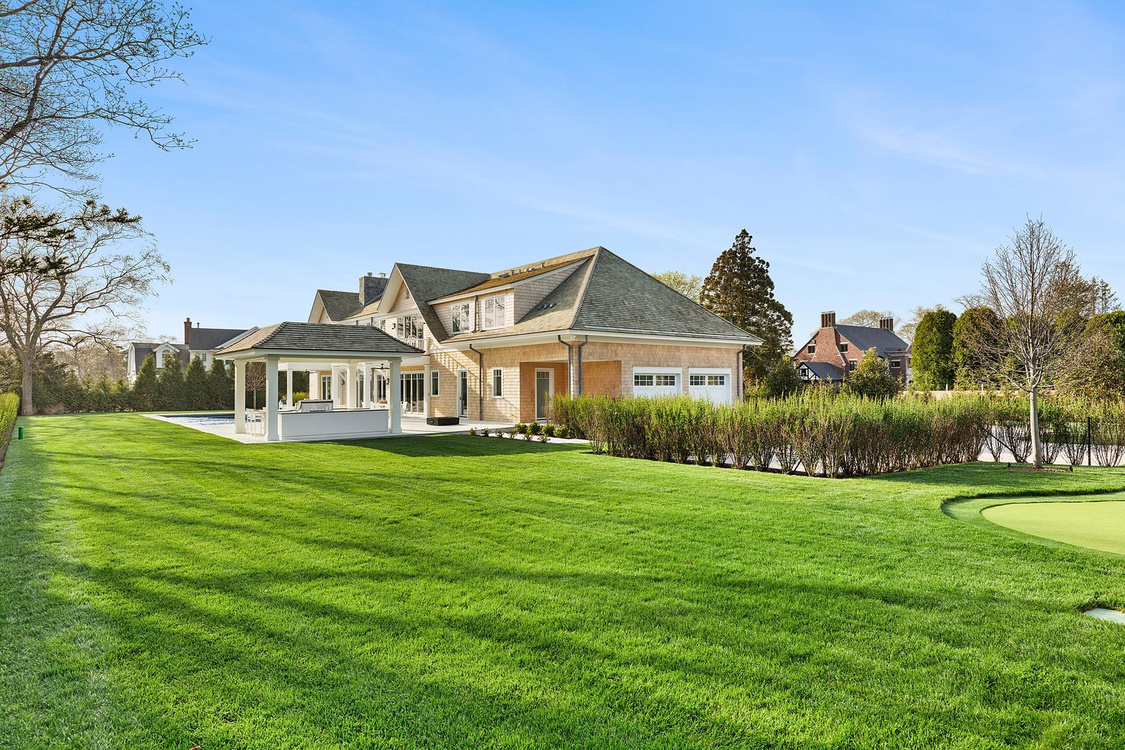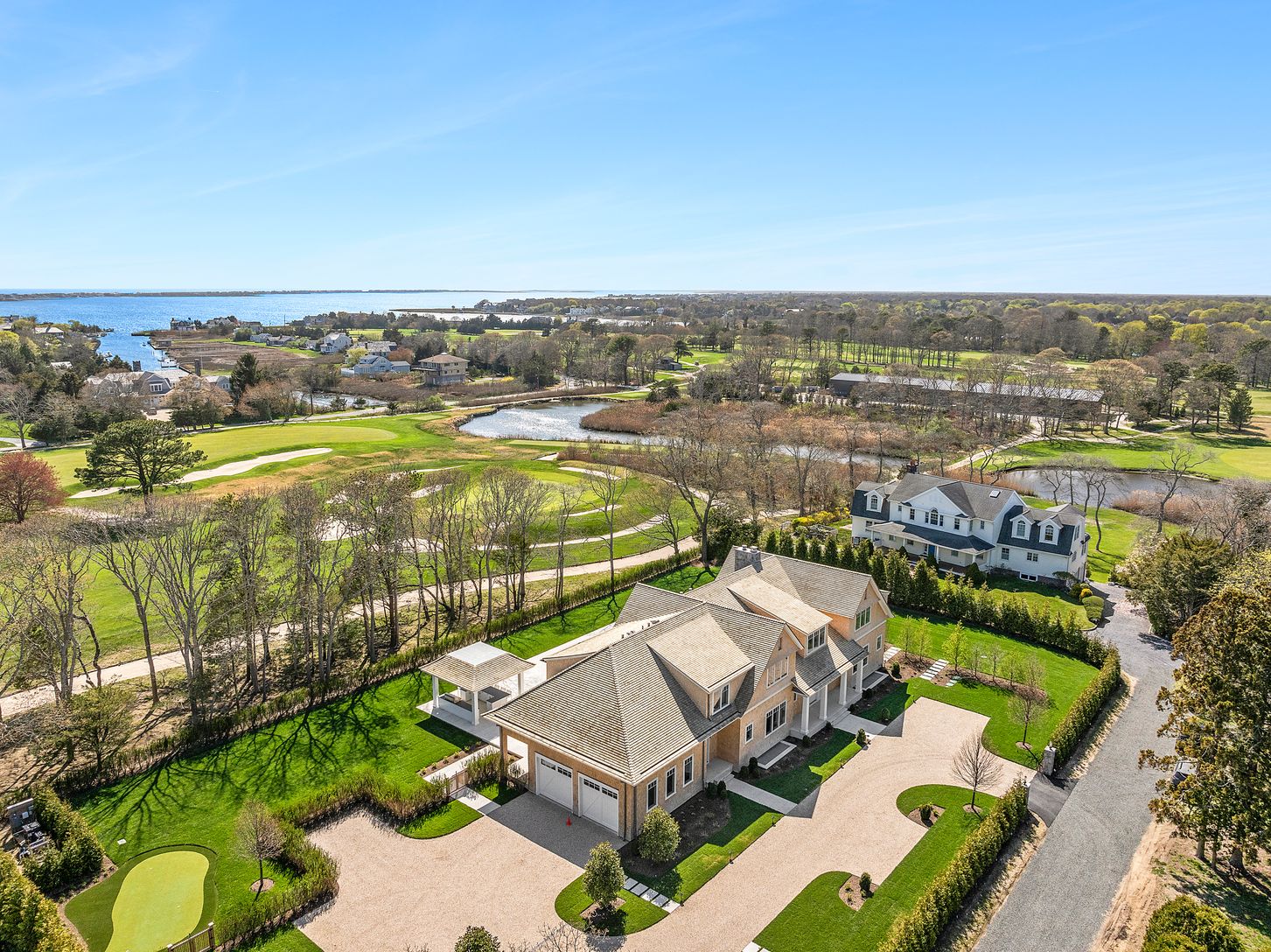 Down a perfectly manicured private road, discover 171 Oneck Lane - a brand new construction offering refined Hamptons living. Ideally situated on just under an acre, the property overlooks the premier golf course at the Westhampton Beach Country Club; showcasing sweeping views of the 3rd hole's lush green. Crafted with meticulous attention to detail, this elegant estate features 7 en-suite bedrooms and a total of 11 luxurious bathrooms. A gra