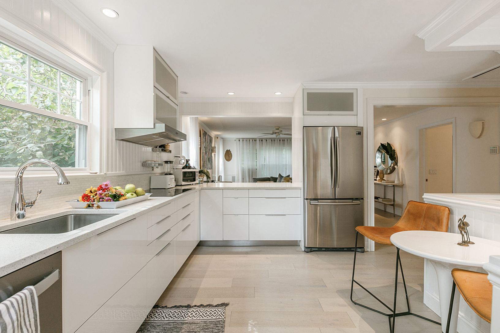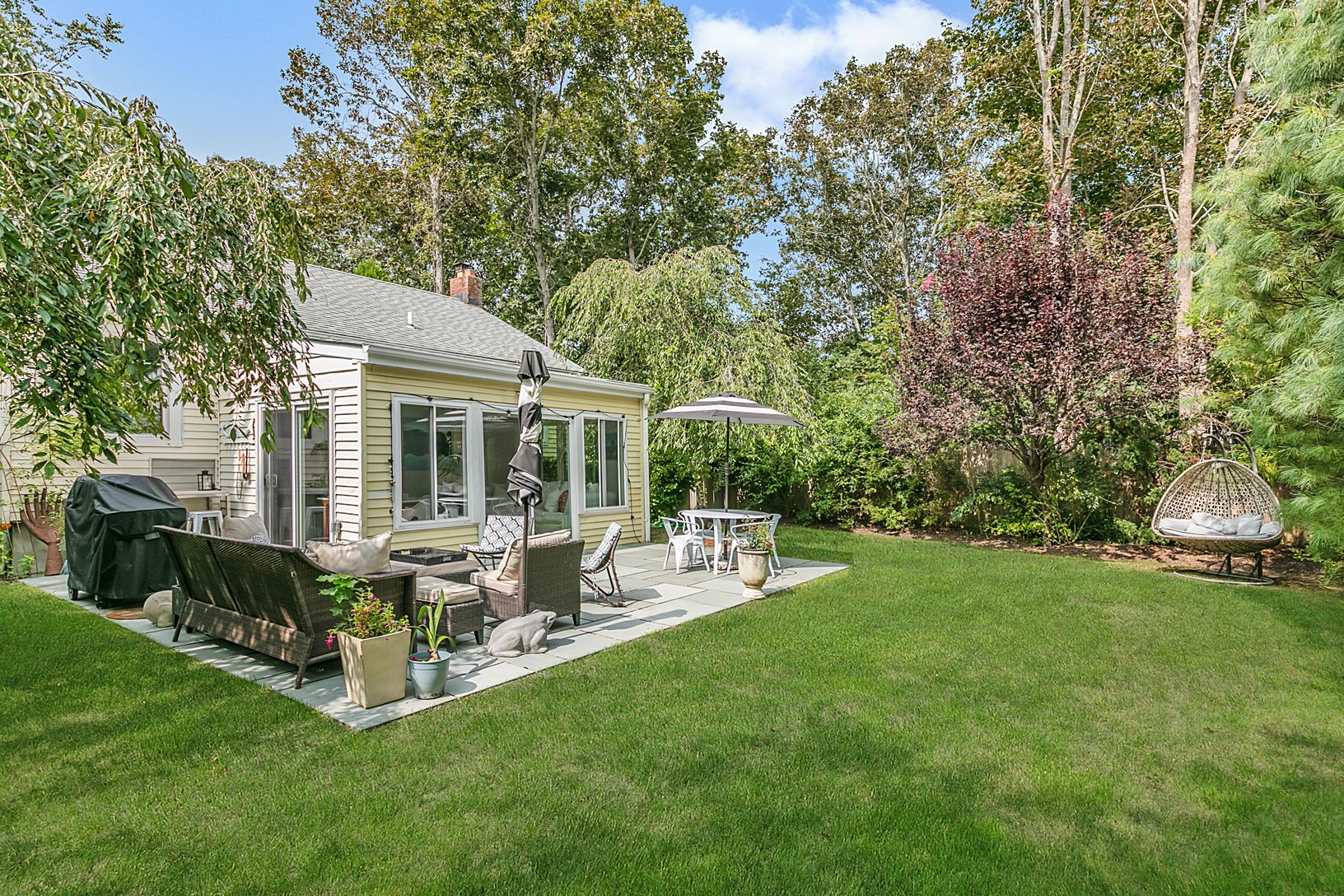 the most charming Hamptons getaway you can imagine.So private, tastefully appointed, sleek and chic 2 beds one full and one half completely renovated baths, Silestone and Stainless modern kitchen, living room with wood burning fireplace, enclosed sunroom serves as a den/ home office. Full finished basement with space for laundry, fitness and relaxing. Lushly landscaped zen oasis. This house will make you smile.