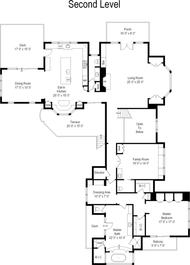 First floor has three bedrooms, two are en suite, one is handi-capped accessible. Family room with stone fireplace, bar and pool table. Rec room, sauna and kitchenette. Upstairs living room with water views and fireplace. Kitchen/dining room with large center island, built in kitchen nook. Master suite, artist room and half bath. Heated pool, hot tub, cabana and built in barbecue. Elevator, two car garage, full basement, ample deck and patios.
