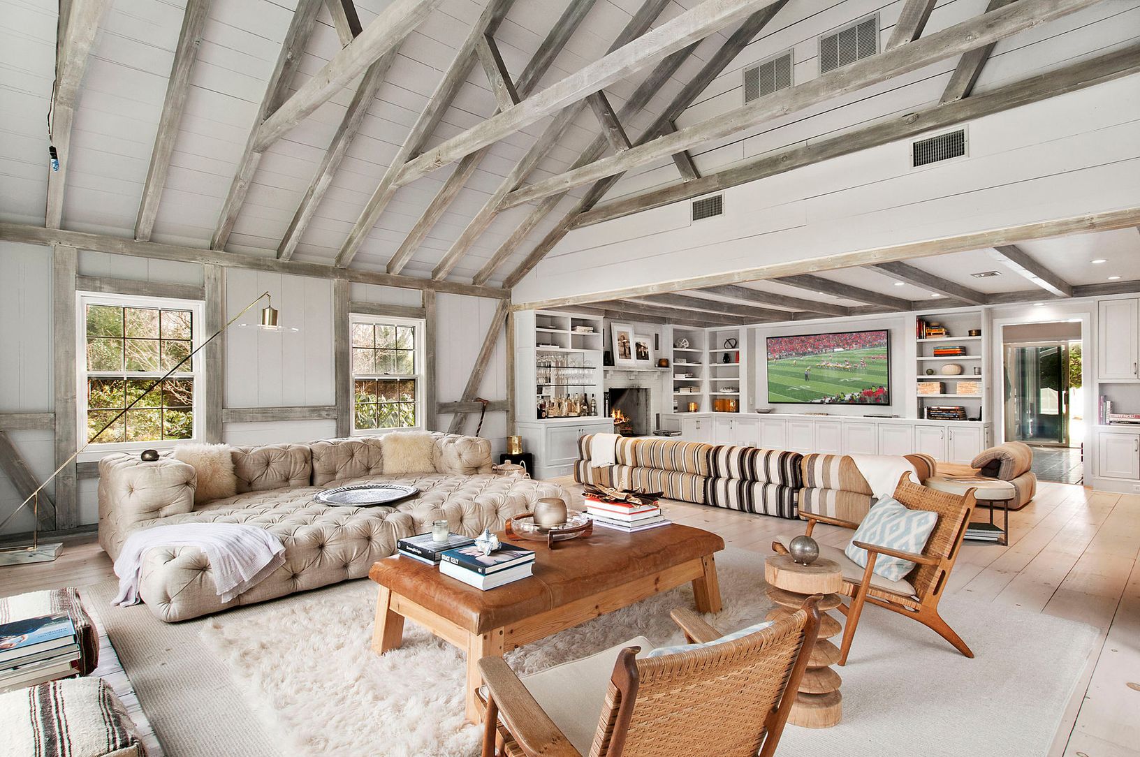 Chic renovated Amagansett beach cottage on 1.1 +/- serene acres. The 3,000 +/- square foot, 3 bedroom, 3 bath cottage is anchored by a barn beamed vaulted family room replete with floor to ceiling windows, designer furnishings, 94 inch flat screen television and wood burning fireplace. A separate en-suite master wing with dedicated sitting-room provides ample privacy when needed. Tremendous mature landscaping creates a charming storybook sett