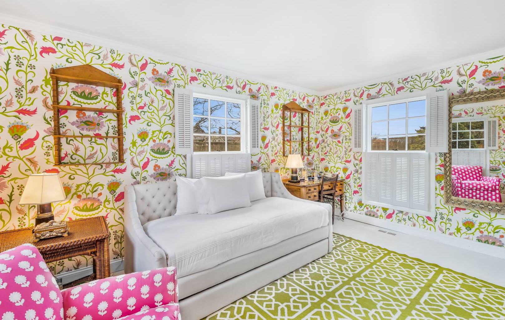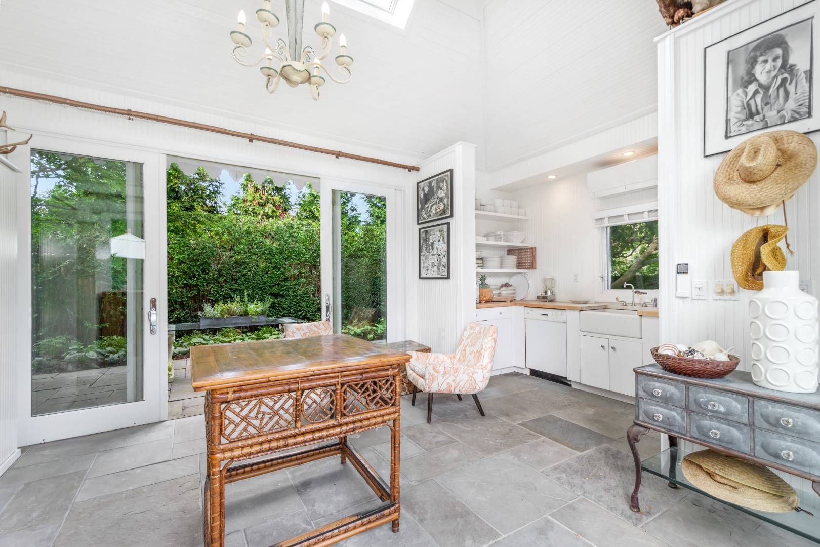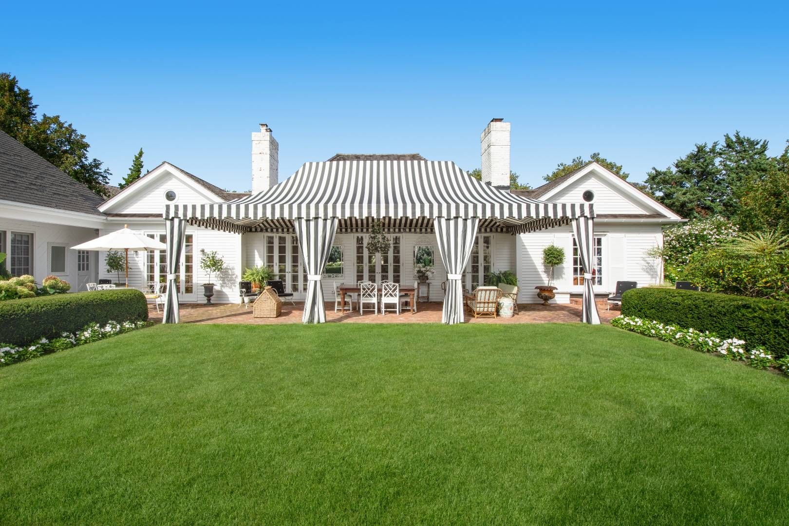 A refined take on a classic Southampton Village retreat, this Palm Beach–meets–Hamptons beach house offers an effortless blend of elegance and relaxed coastal living—just moments from the ocean. Set along one of the Village’s most picturesque tree-lined lanes, this single-story French Mansard-style residence is ideally positioned approximately 1,000 feet from the beach, creating an exceptional setting for a two-week summer escape. Spanning 2,2