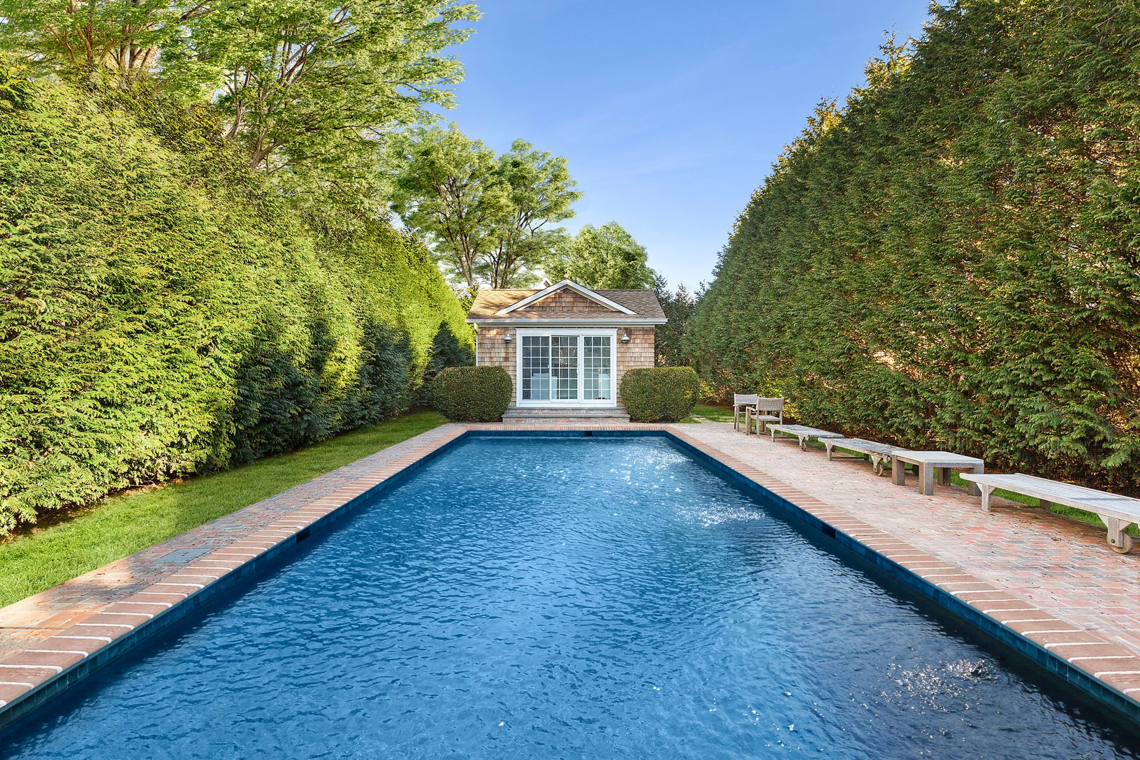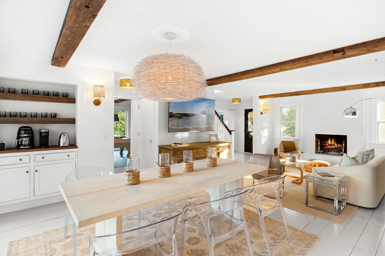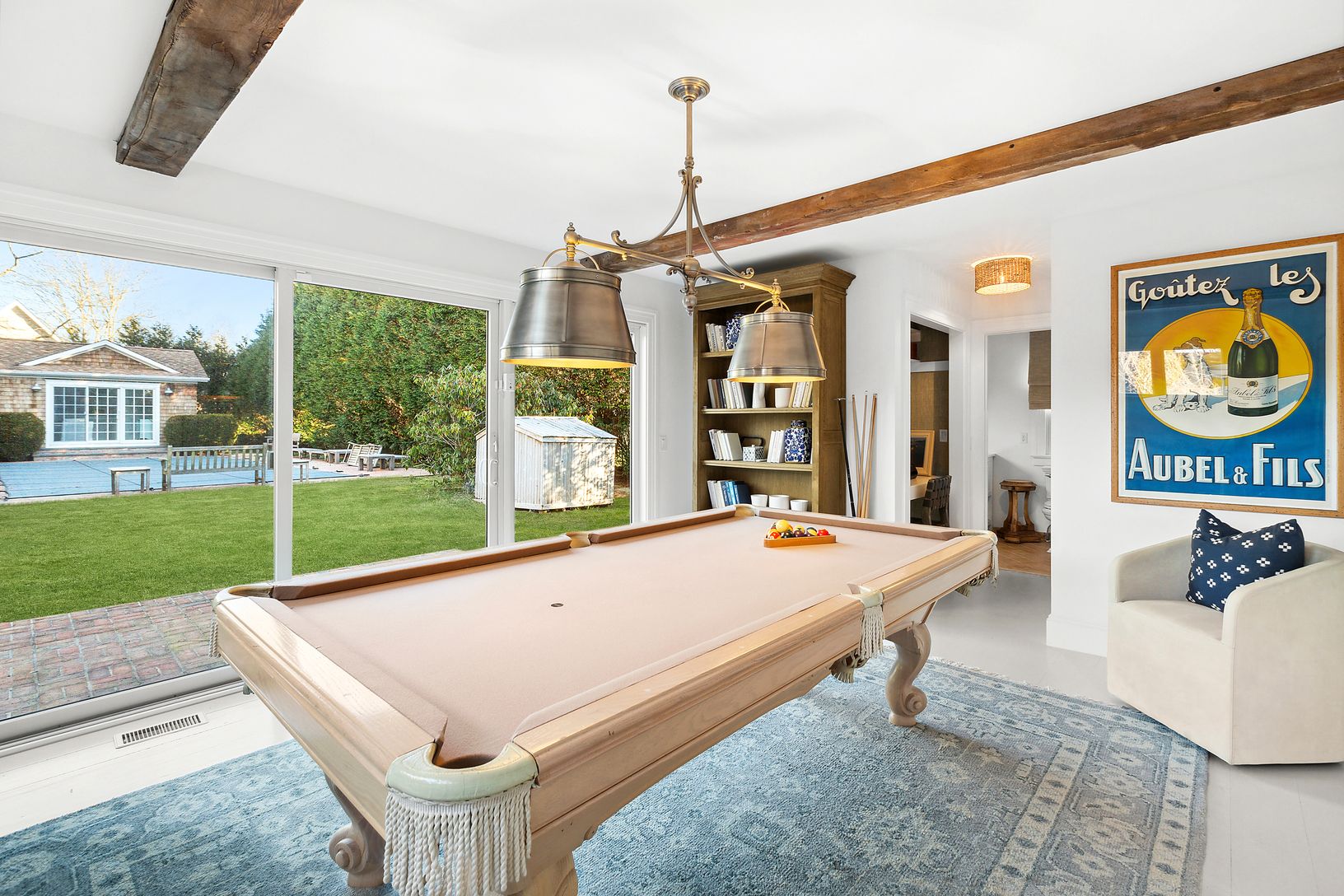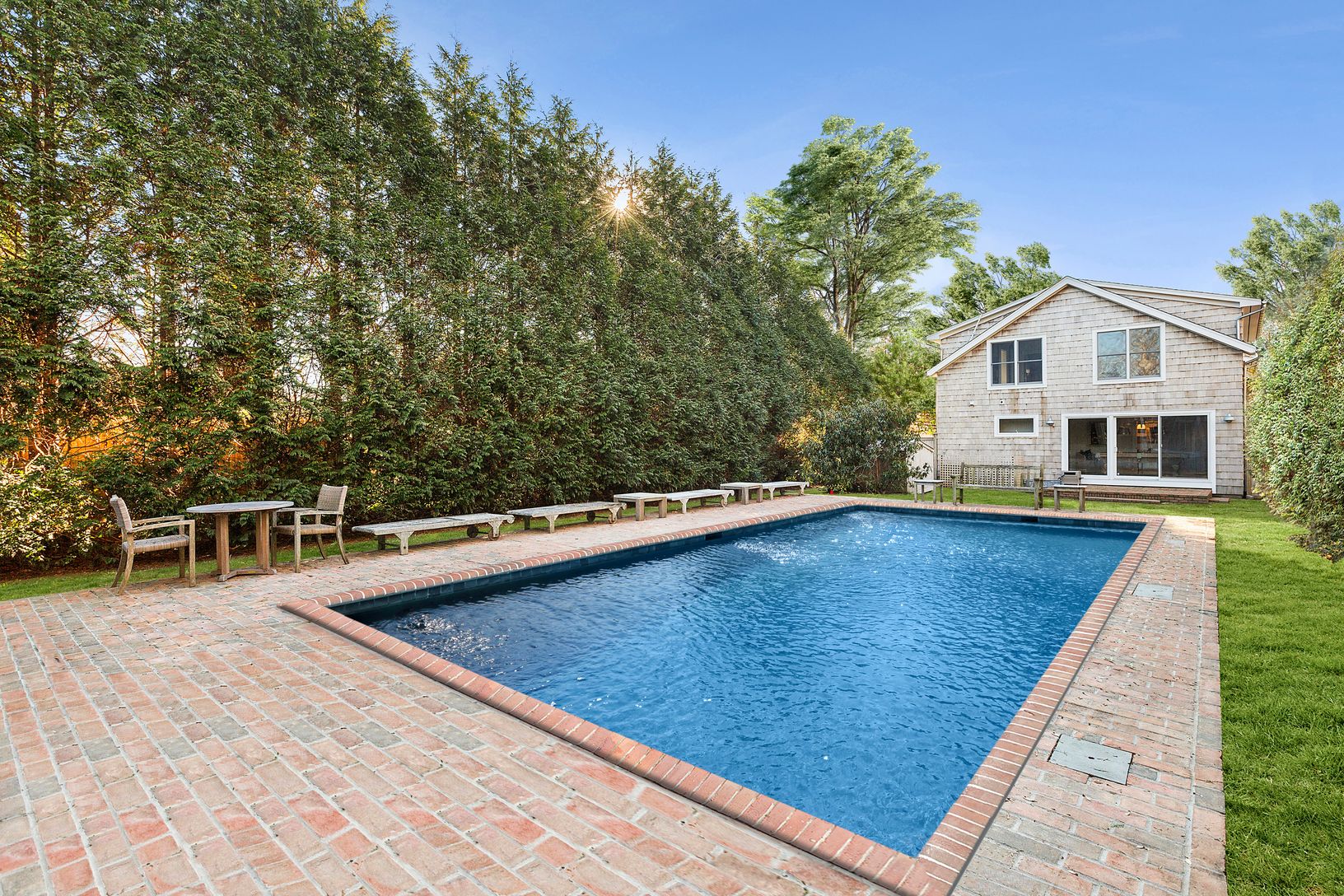 This stunning 7-bedroom, 7-full bath, and 3-half bath residence, underwent a full gut renovation in 2023. The home originated as a ship captain's shingle-style home in the early 1900s, and served as a bed and breakfast subsequently. It was recently transformed into a stylish barn-like home with a fully tree-enclosed backyard complete with pool, pool house and new cedar outdoor shower enclosure. The tile-laden chef's kitchen is reminiscent of o