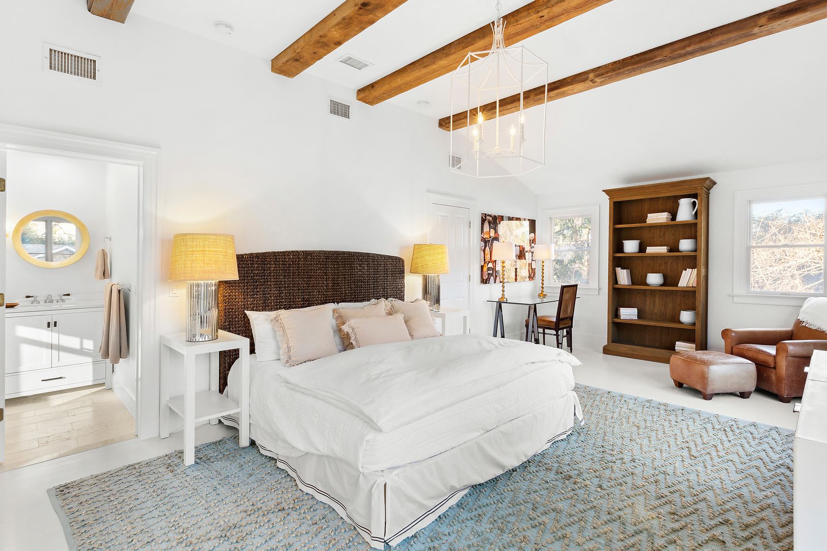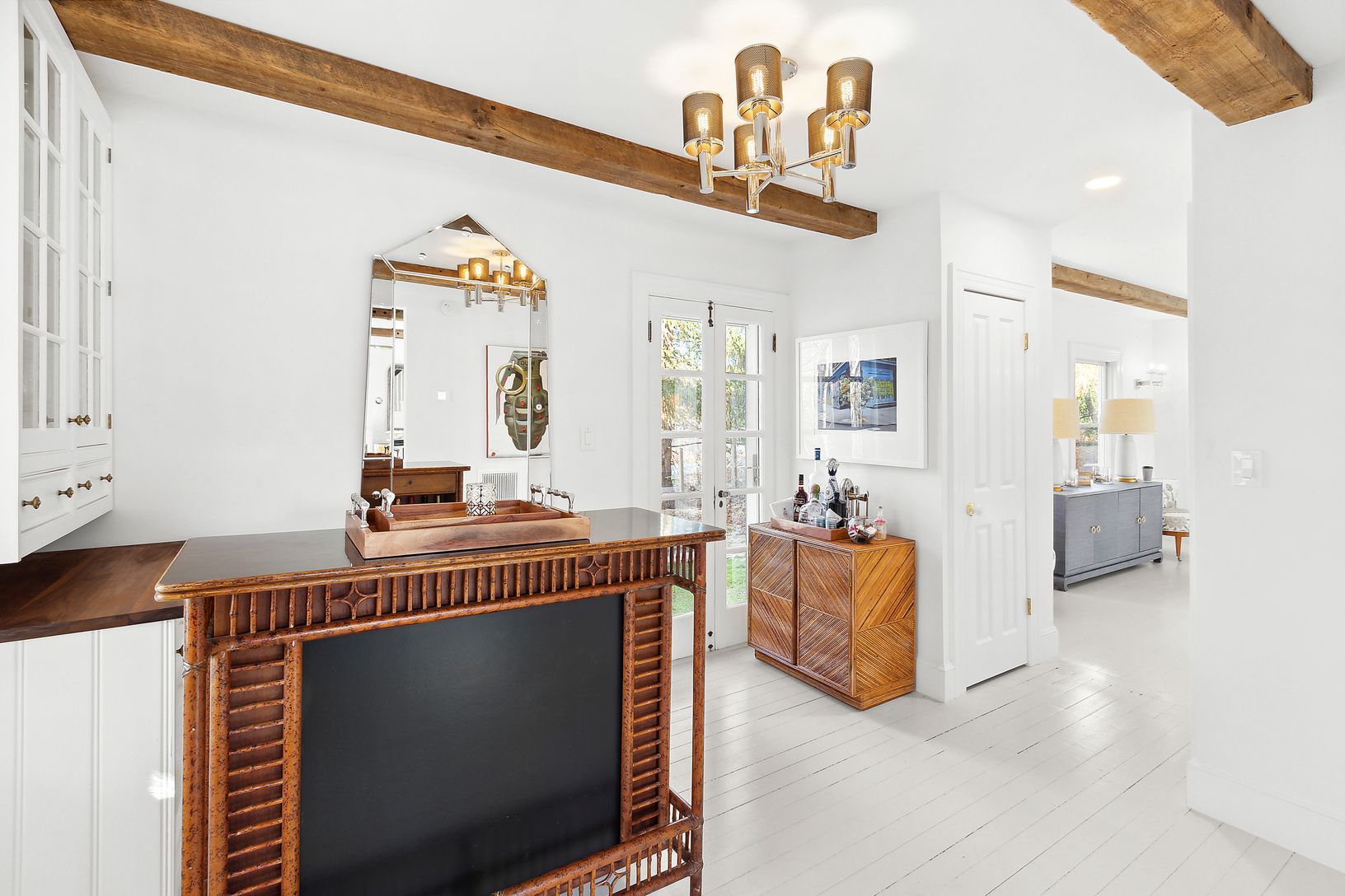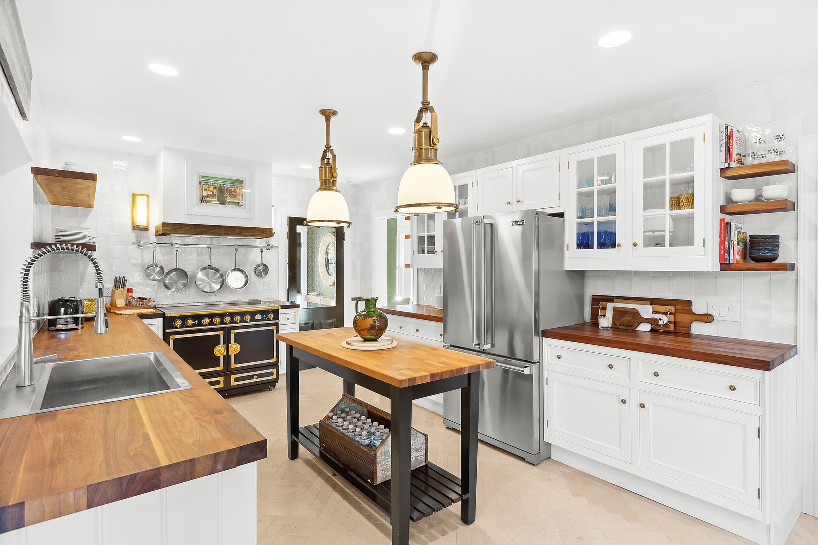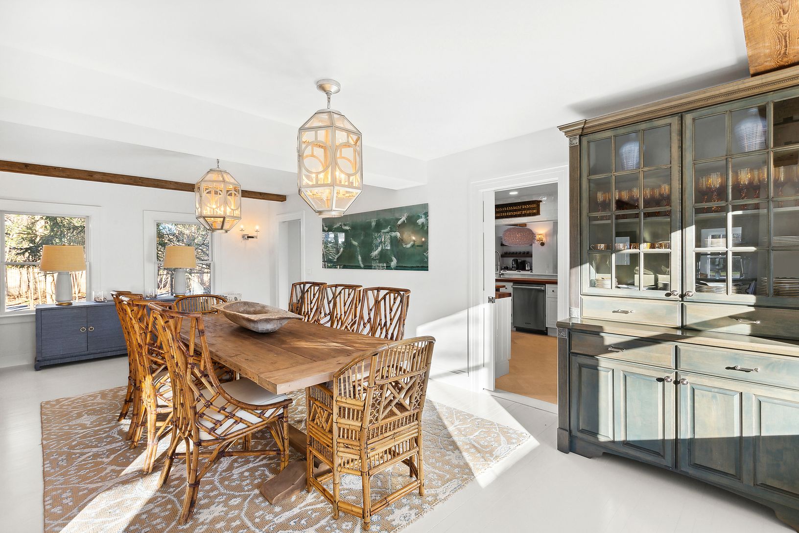 This stunning 7-bedroom, 7-full bath, and 3-half bath residence, underwent a full gut renovation in 2023. The home originated as a ship captain's shingle-style home in the early 1900s, and served as a bed and breakfast subsequently. It was recently transformed into a stylish barn-like home with a fully tree-enclosed backyard complete with pool, pool house and new cedar outdoor shower enclosure. The tile-laden chef's kitchen is reminiscent of o