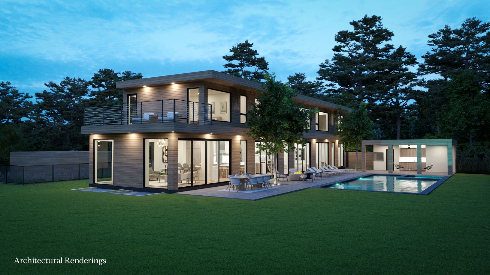 Pre-construction offering - Experience the ultimate in sustainable luxury in this brand new 7400 +/- sq. ft. modern residence, to be completed in 2022. Conceptualized by Modern NetZero, this cutting edge home is a seamless blend of sleek architecture, warm interiors, modern finishes and conscious living. The long crushed stone driveway leads you gracefully up to the contemporary facade composed of glass, mahogany rainscreen & stucco. The e