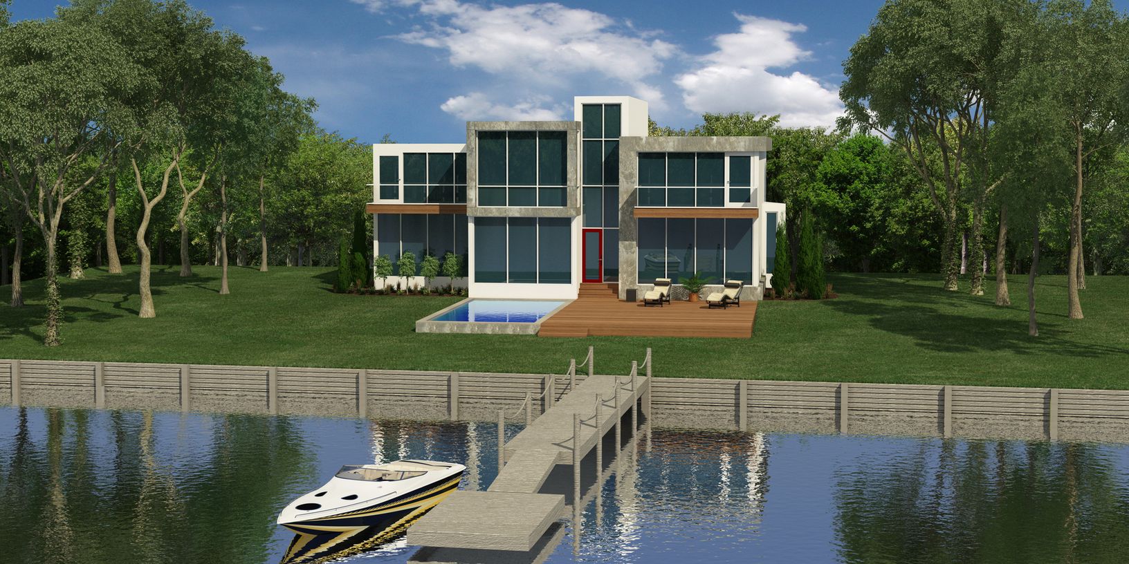 Waterfront Sunsets Over a Pool and a Dock- Sold