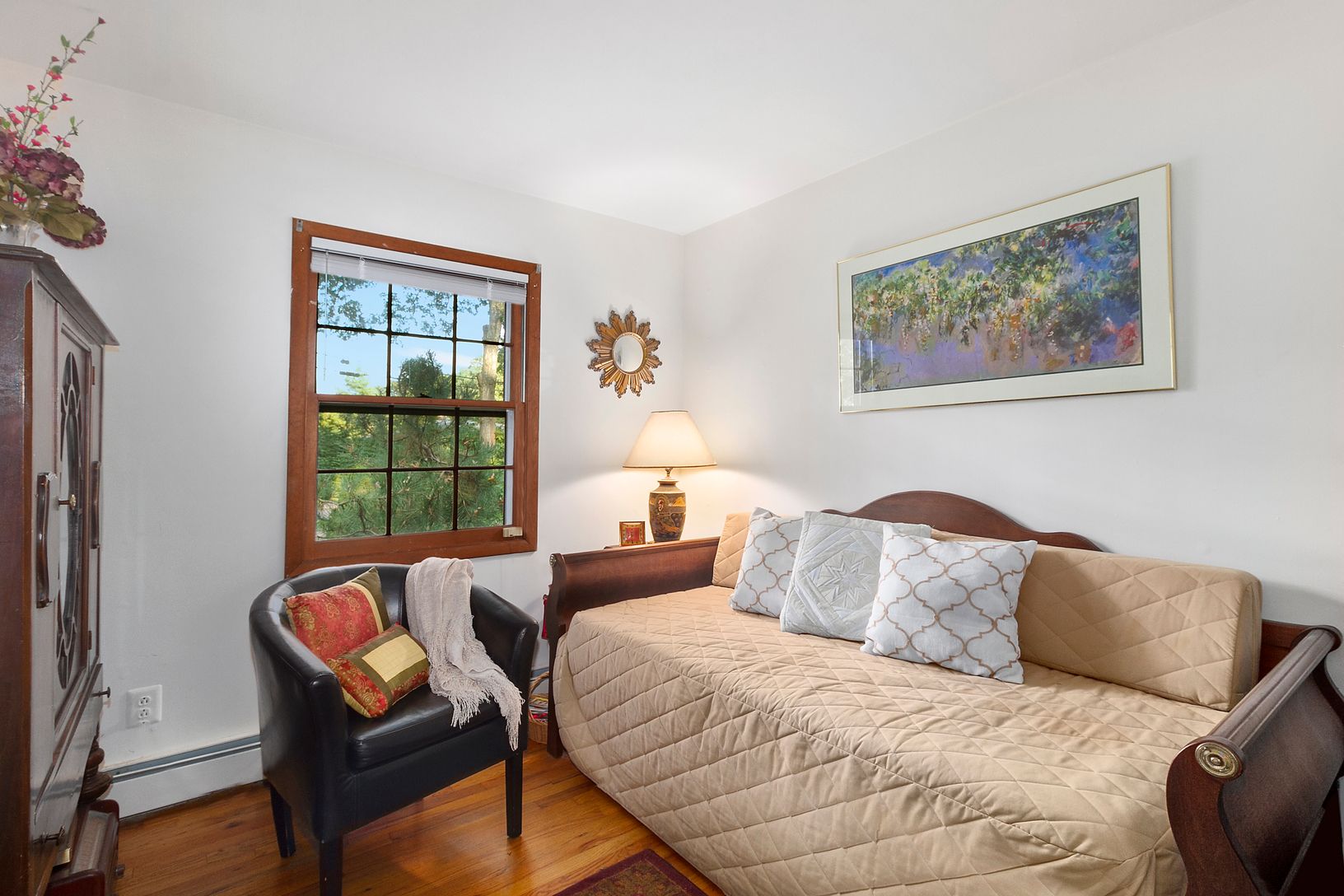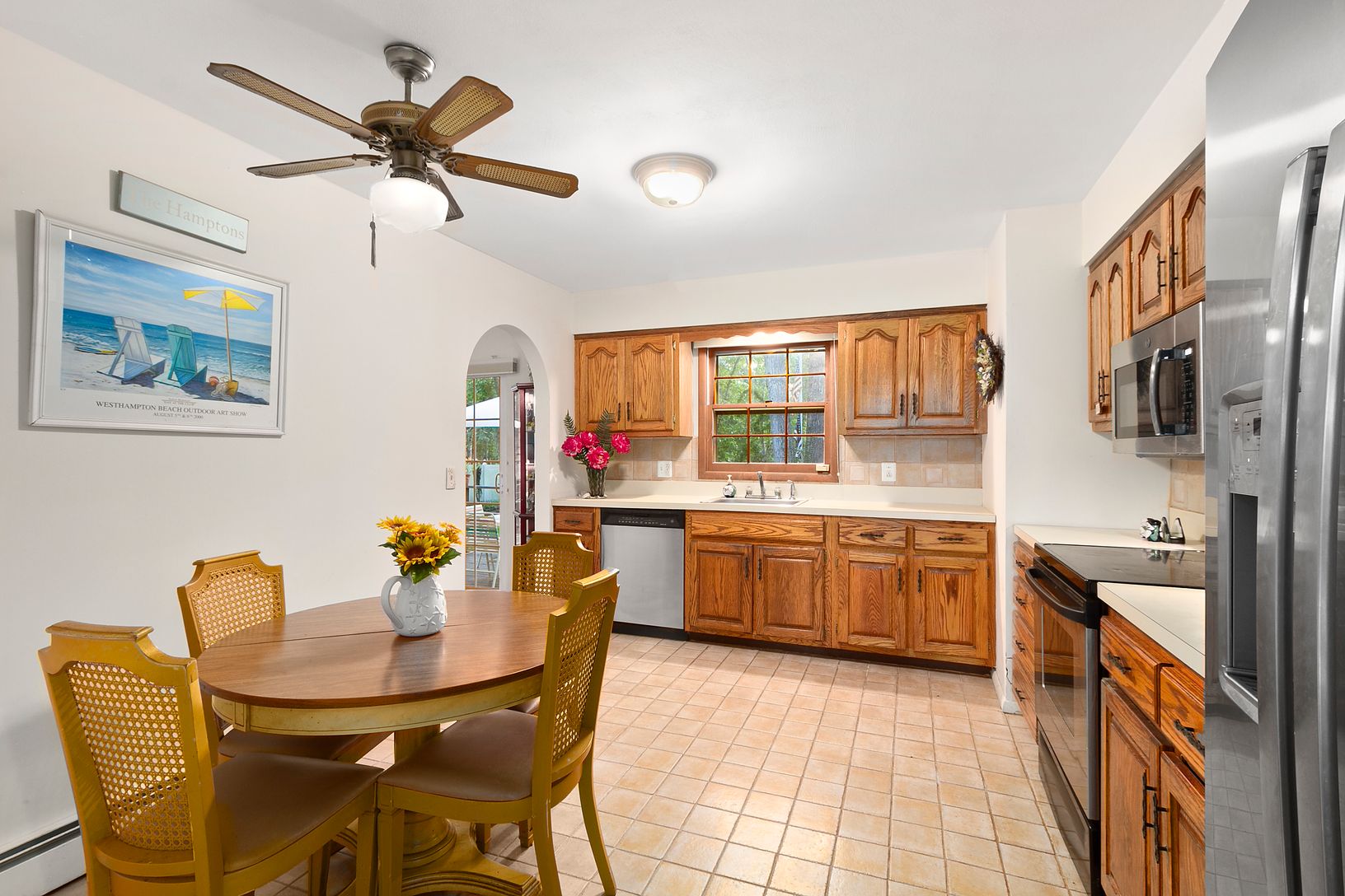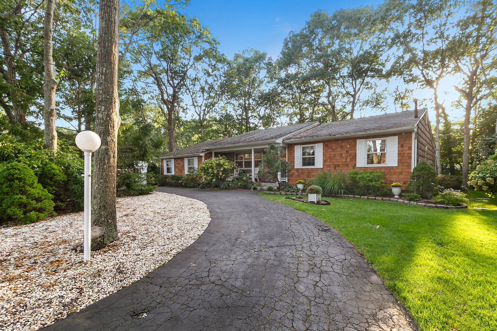 This charming cedar and brick-sided, 3 bedroom room, 2 bath ranch in East Quogue is now available. There are hardwood floors throughout, and an eat-in kitchen and formal dining room. There is a beautiful brick sunroom off the primary bedroom that connects to a deck running the span of the house in the back yard. A large den with a cathedral ceiling and glass sliders completes this home. The grounds are meticulously kept. It is .03 miles to a s