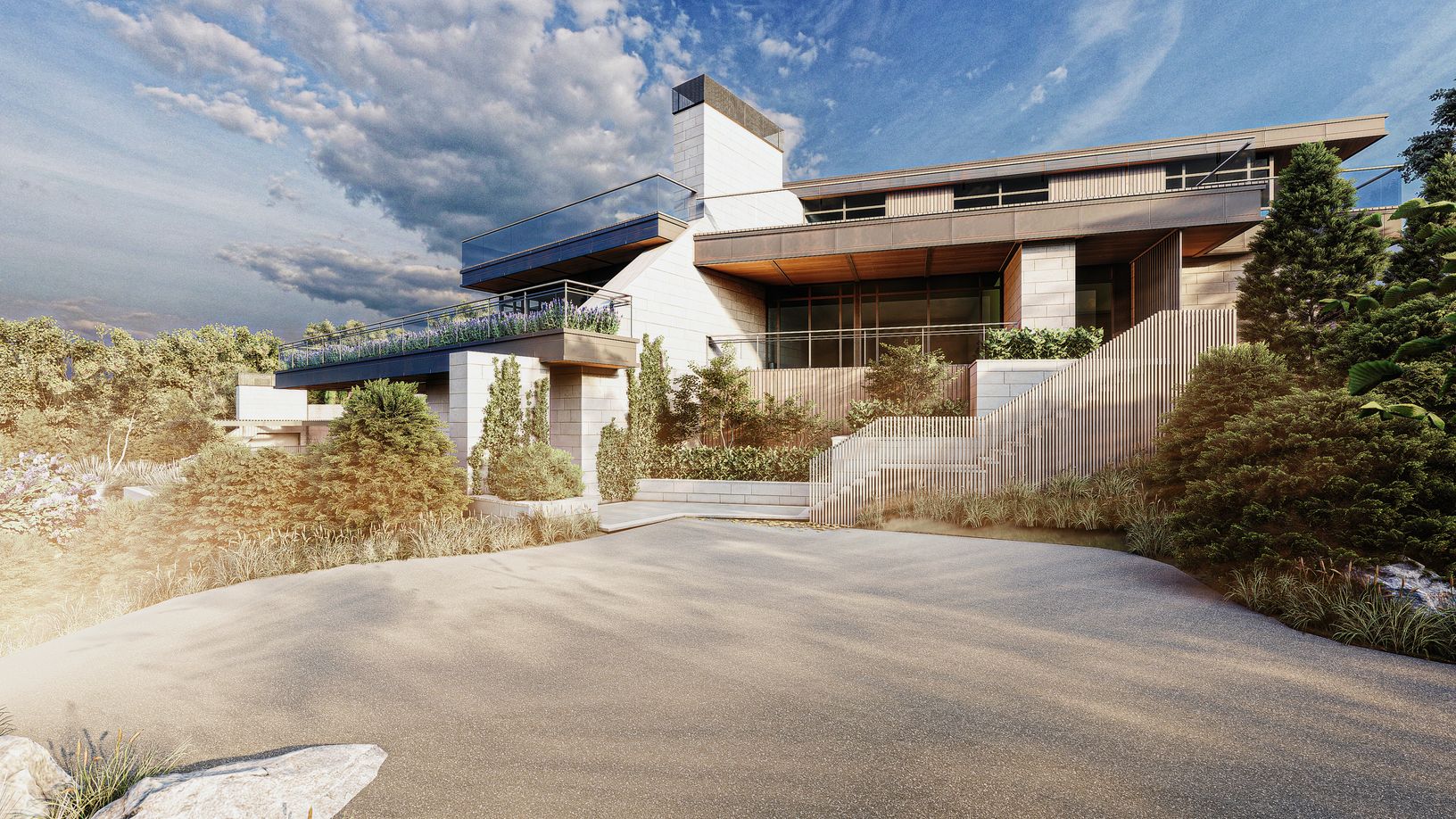 the current ranch style home offers three bedrooms, and two full bathrooms on two levels. The open living room, kitchen, den, and decking have vast, panoramic views of the Atlantic Ocean. The entry of the property has an old stone gate house and a wi