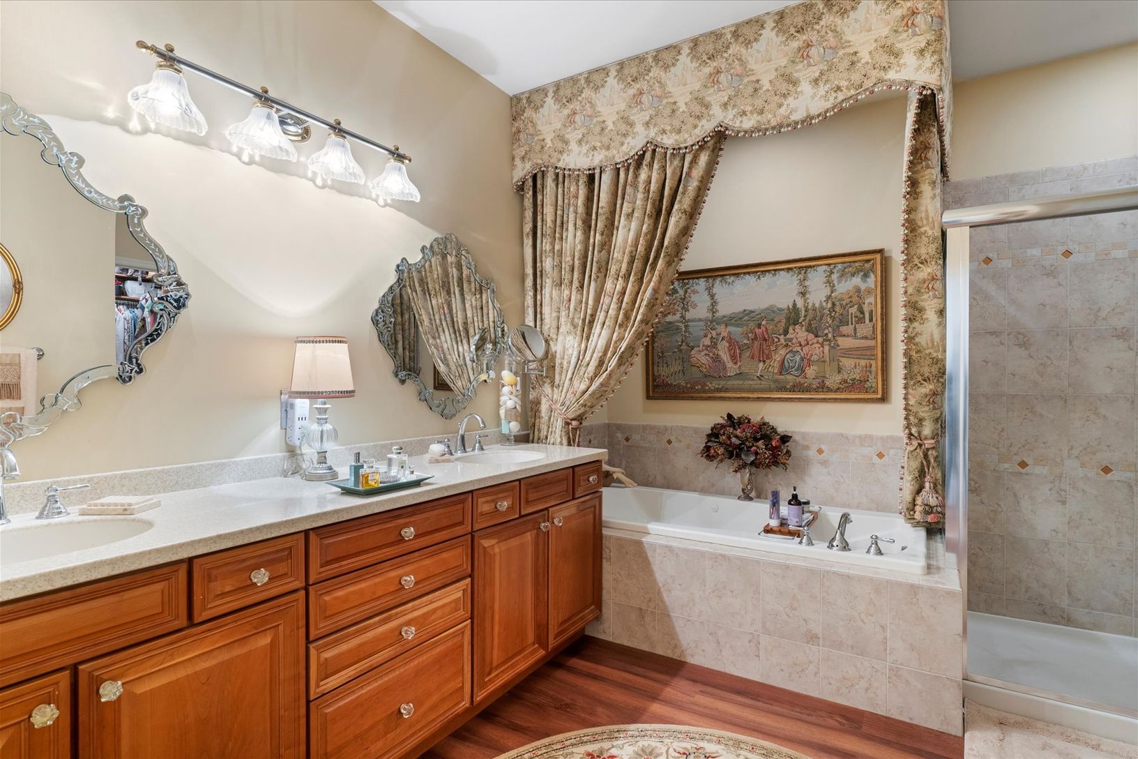 Welcome home to this highly desirable 2440 sq.ft. condo located in Westhampton Pines, a Luxury Lifestlyle 55+ Gated Community. The beautiful Amagansett Model features an Expansive Open Concept Floor Plan all on one level. This wonderful unit boasts a Gourmet Kitchen with Granite Counters, Top of the Line SS Appliances and a Large Breakfast Area. Off the kitchen is an Oversized patio with 2 Electric Awnings and ample lawn space. A Spacious Grea