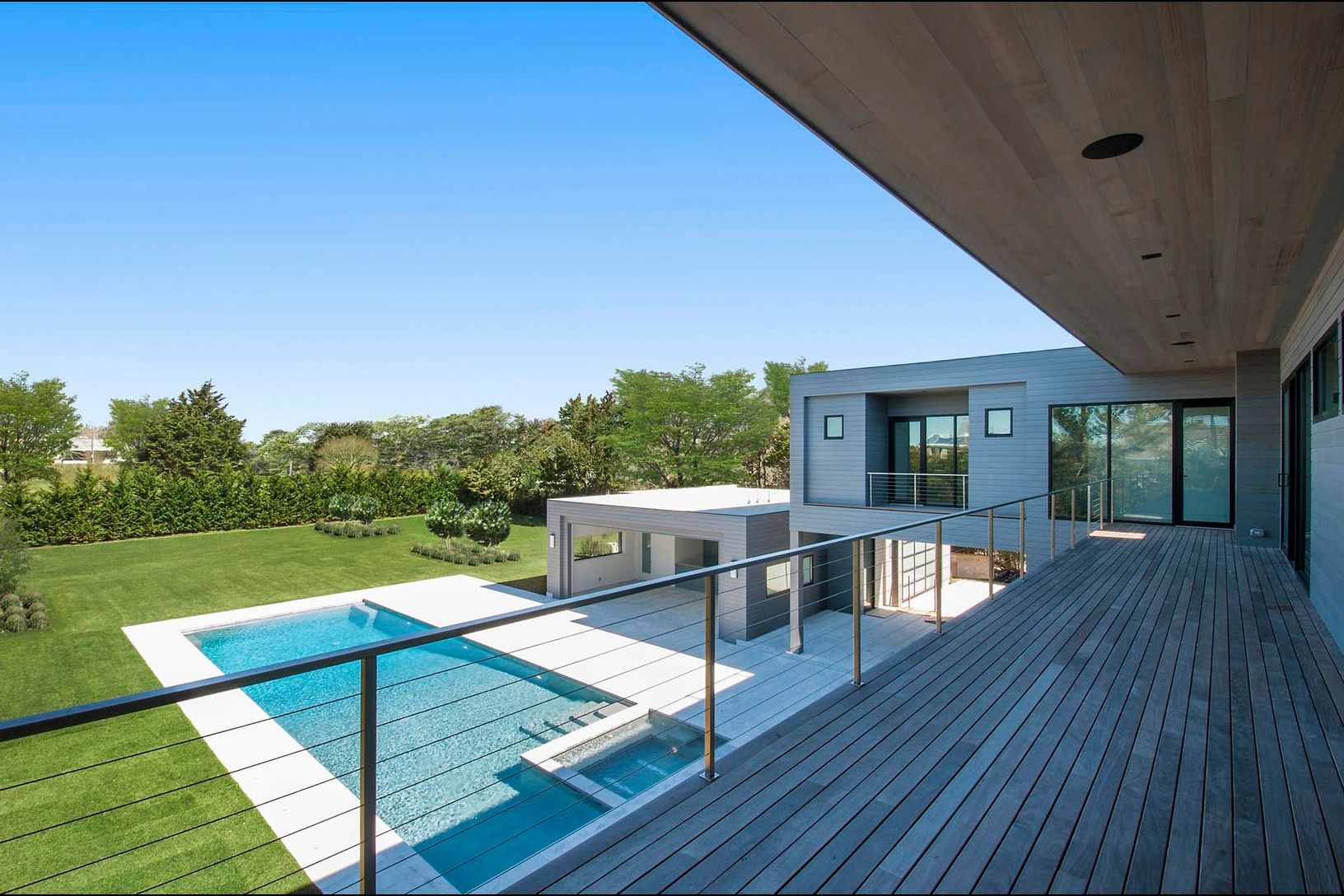 This newly constructed 11,000 SF+/- modern estate is set on over one acre and is less than half a mile from Bridgehampton's ocean beaches. This 8 bedroom, 10 full and 2 half bathroom house is characterized by a contemporary indoor/outdoor floorplan which expertly captures picturesque views of Sagg Pond and the Atlantic Ocean from the opulent master retreat, second level living space and