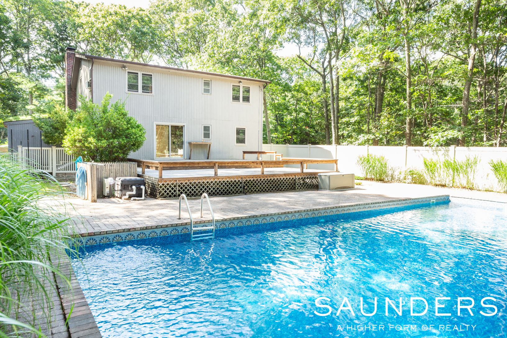 This 4 bedroom 2 bath house is situated an .89 of an acre. Open living room includes a brick wood burning fireplace. The eat-in kitchen offers maple cabinets and stainless steel appliances. Expansive back deck off the kitchen leads to a 20 x 40 heated pool. The house has recently been painted, floors sanded and totally renovated bathrooms.. Move in ready Only 10 minutes to the village and beaches.