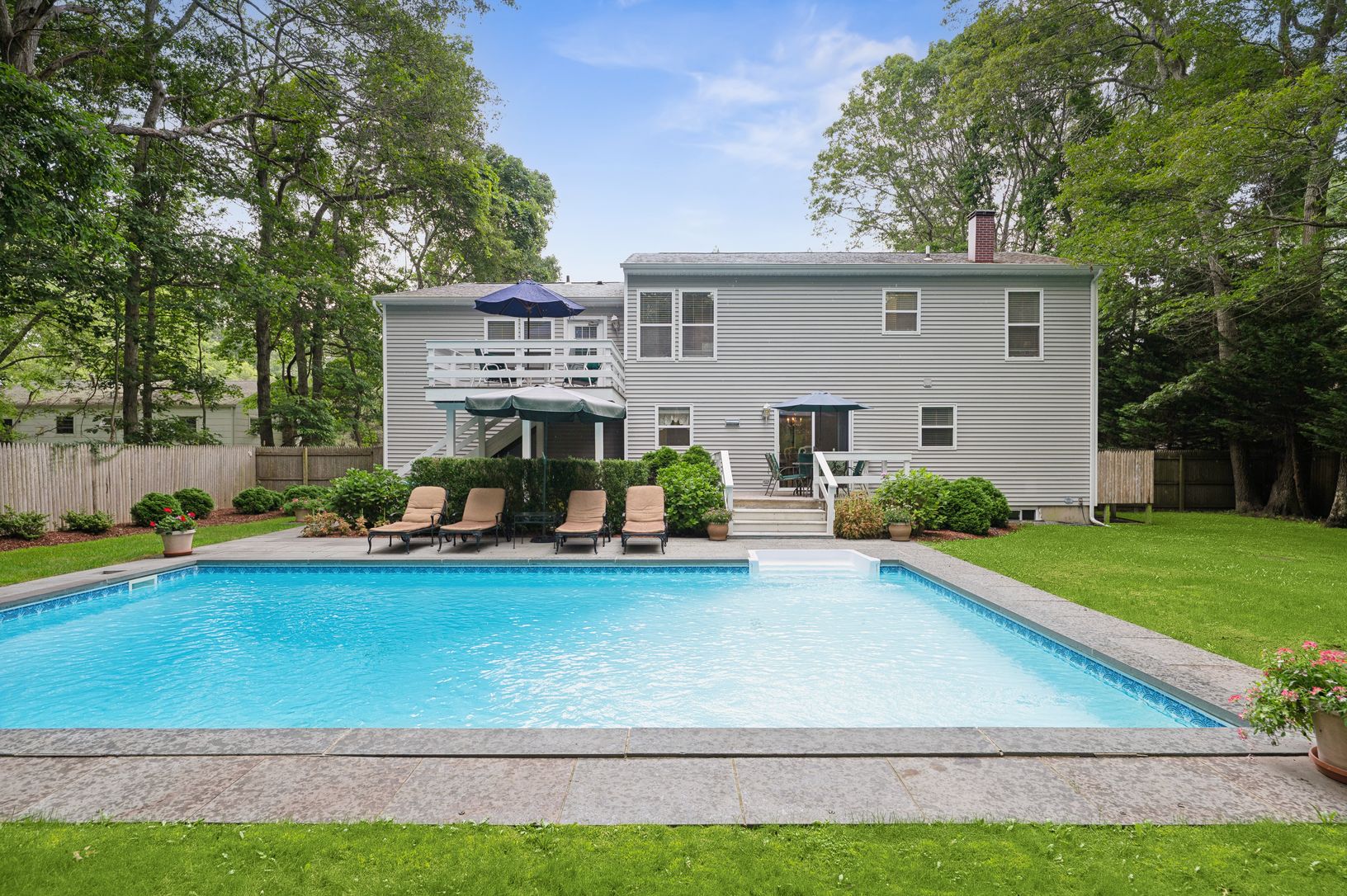 Four bedrooms three baths in beautiful Clear Water Beach in East Hampton! Sunny updated kitchen and generous dining area. Heated salt water pool. Outdoor shower. Clean, spacious, ready for occupancy. Use of Clearwater Beach. Small dog OK. [[Rental Registration # 24-380]]