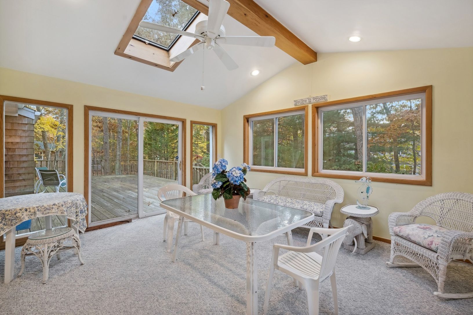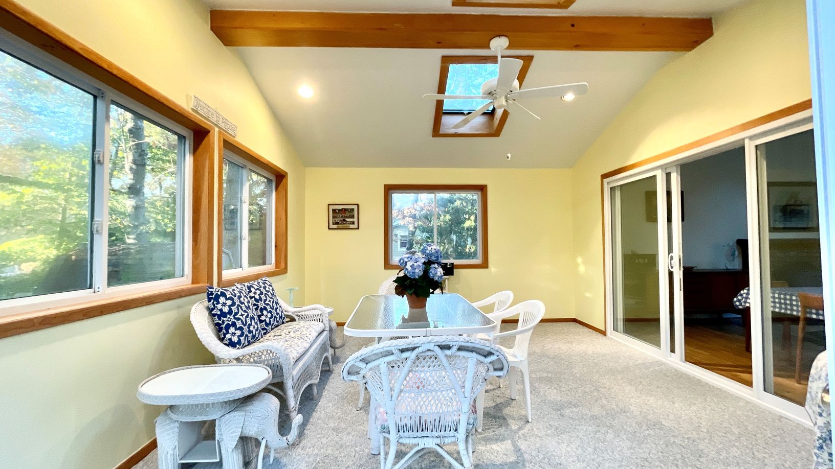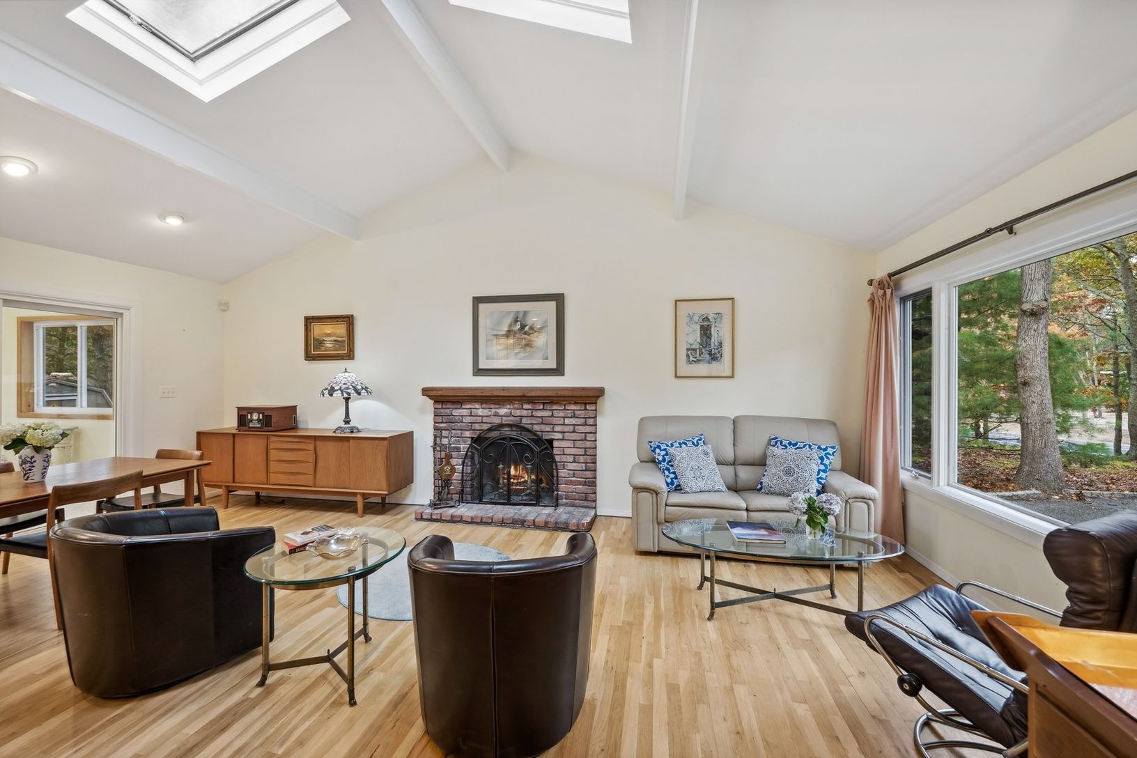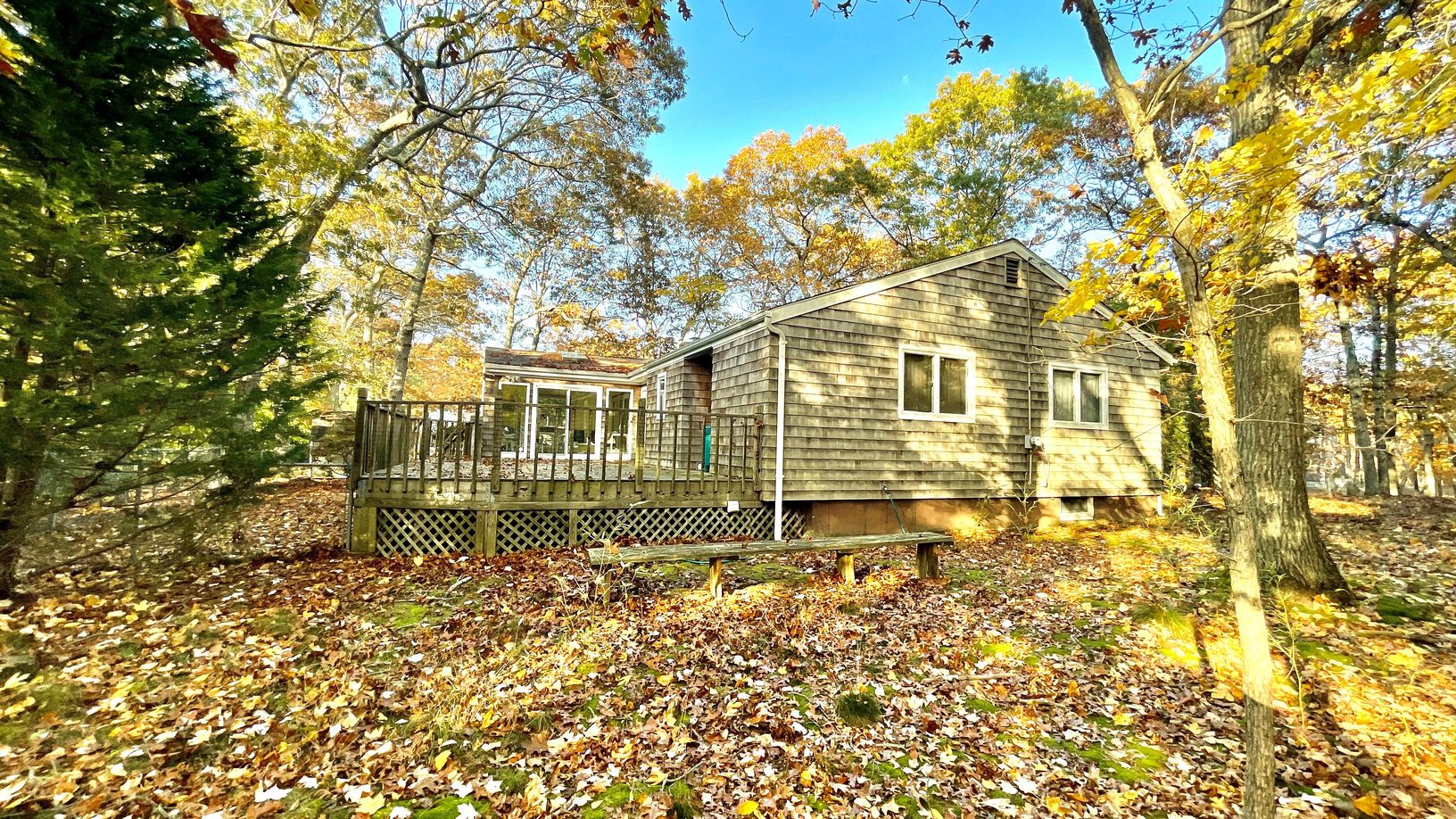Southampton charmer!! Super well-built cedar ranch with 3 bedrooms 2 baths and beautiful living room with vaulted ceiling and skylights. Warm up by the masonry fireplace or bright sunroom off with south and western exposure. There is a eat in kitchen, open living space and hardwood floors throughout.